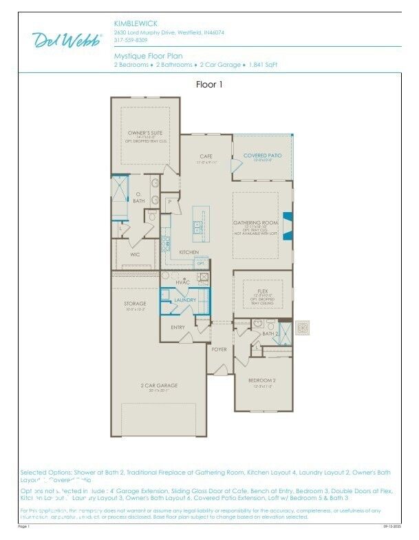 Discover the charm of the Mystique floorplan by Pulte Homes, available in the sought-after Kimblewick by Del Webb, a distinguished age-restricted community. This thoughtfully designed home offers a modern kitchen featuring Landen white cabinets, Sparkling White Quartz countertops, built-in gas appliances, and a spacious island perfect for cooking and gathering. The kitchen flows effortlessly into the gathering room with tray ceiling and fireplace and cafe dining area, creating an open and inviting space for daily living and entertaining. Step outside to the covered patio, ideal for outdoor relaxation or hosting guests. The luxurious owner's suite is a private retreat, complete with a tiled zero entry shower, double-sink vanity, and a generous walk-in closet. The main level also has an additional bathroom. Versatility is key with the flex room with doors situated just off the foyer, this space can easily be transformed into an extra bedroom, a quiet study, or a home office, catering to your specific needs. Luxury vinyl plank flooring spans the home, combining durability with timeless beauty. The HOA includes full cable and high-speed internet in the monthly dues, offering exceptional value and added convenience for residents in this community. The 13,000 sq. ft. clubhouse serves as the community's social and recreational hub, featuring both indoor and outdoor pools, patio lounge areas, and a range of fitness options including a state-of-the-art gym, tennis and pickleball courts, and a golf simulator. Outdoor enthusiasts will appreciate the trails, parks, and activity spaces that promote community connection and exploration. Conveniently located south of 151st Street, Kimblewick offers luxury living, nature's tranquility, and easy access to the neighborhood's amenities. Photos of similar model.