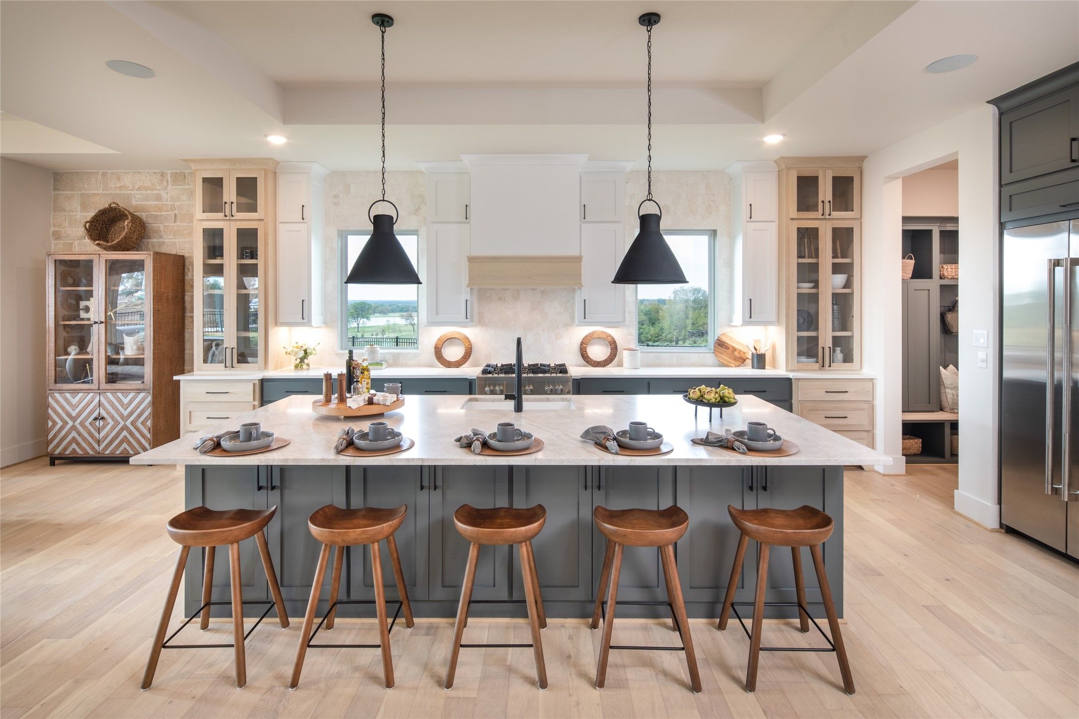 - Double Vanity, Entrance Foyer, Granite Counters, High Ceilings, Kitchen Island, Kitchen/Family Room Combo, Separate Shower, Tub Shower, Walk-In Pantry, Ceiling Fan(s), Kitchen/Dining Combo, Programmable Thermostat