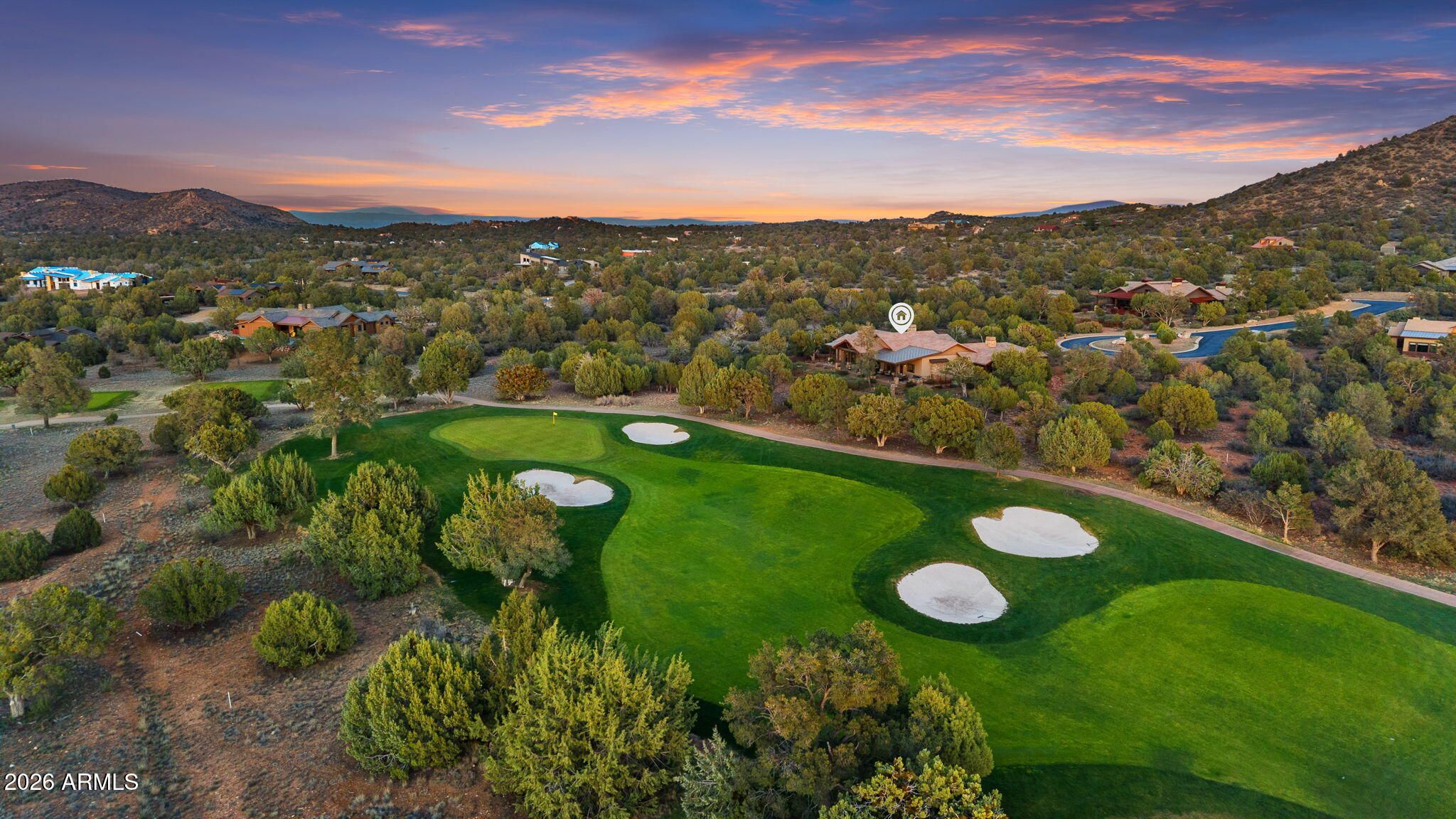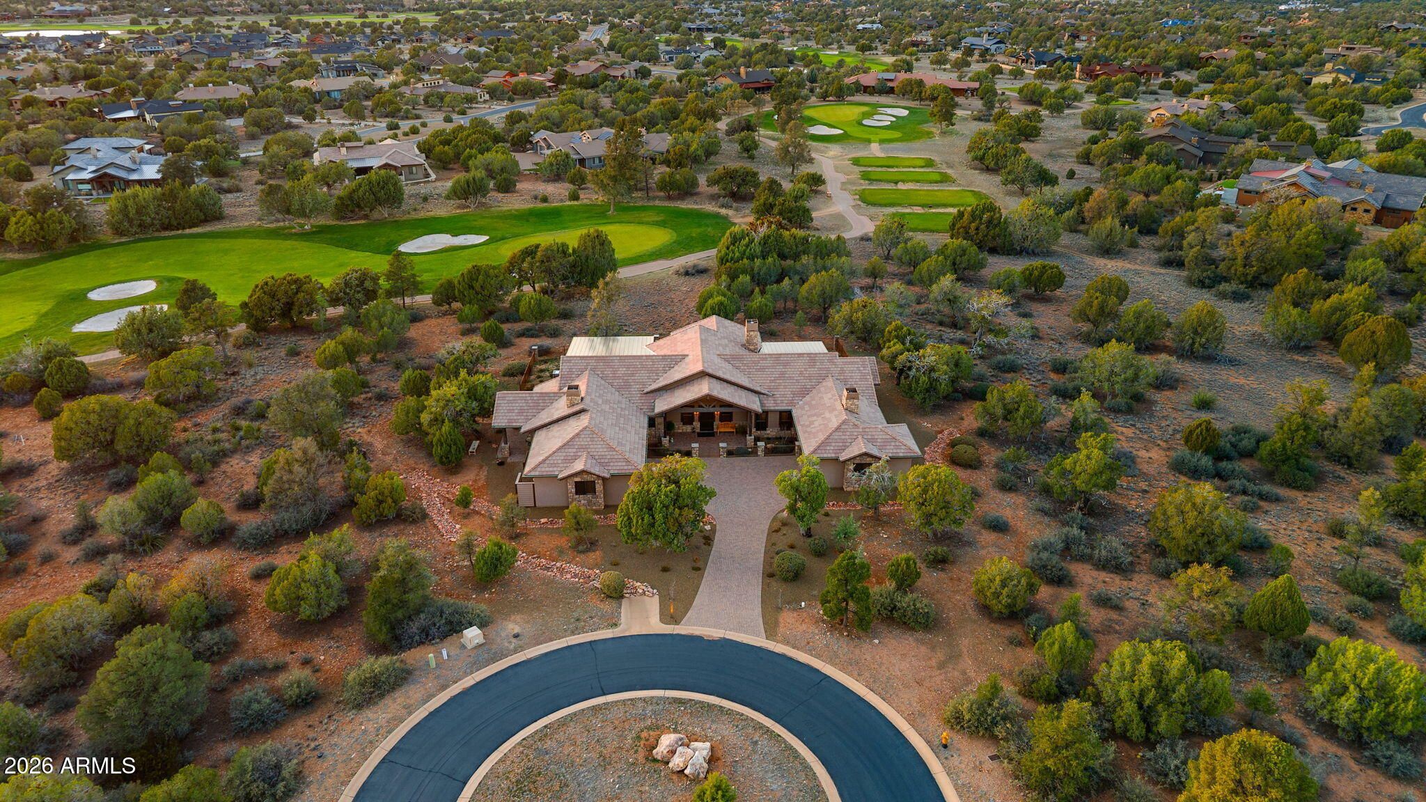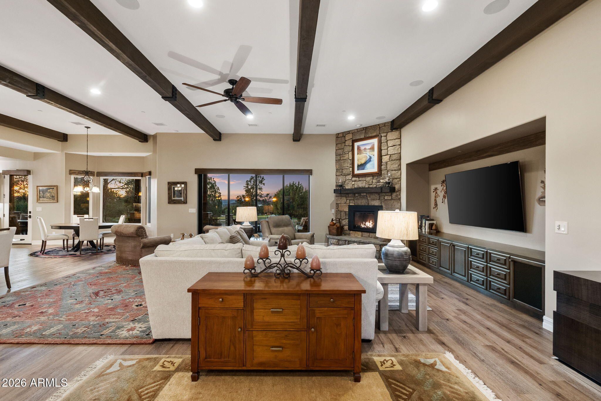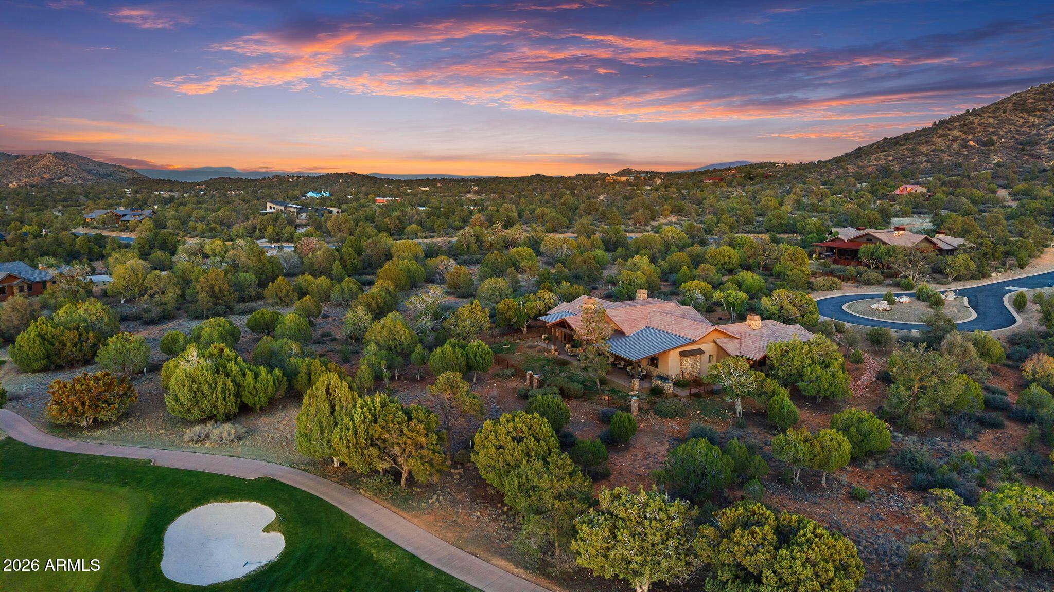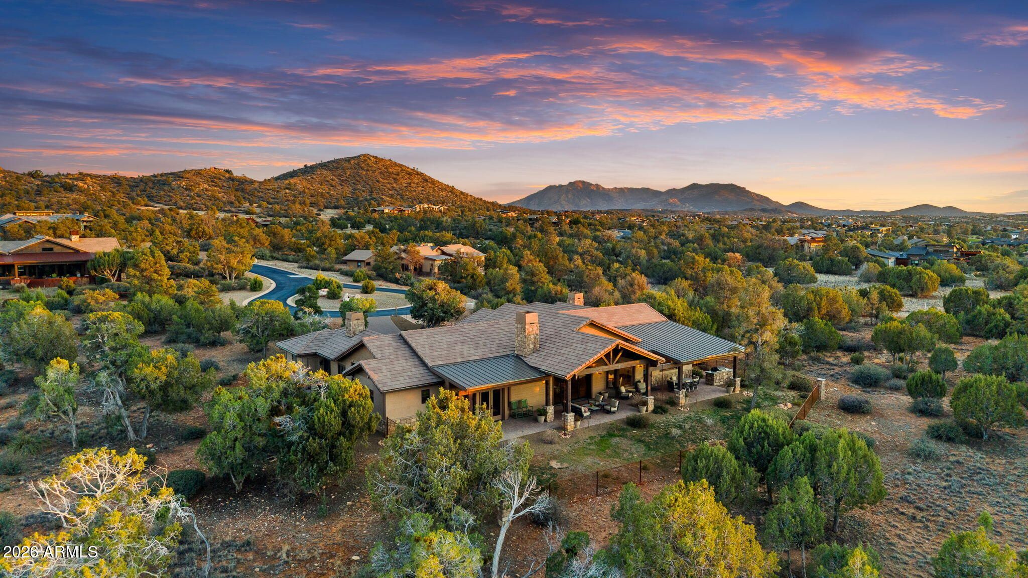 Positioned on the 6th green of Talking Rock Golf Course and bordered by HOA common space for enhanced privacy, this exceptional residence offers a refined blend of luxury, serenity, and panoramic golf course views. Thoughtfully designed and impeccably maintained, the home captures natural light throughout its expansive open-concept layout, anchored by a dramatic floor-to-ceiling stone fireplace and elevated designer finishes. The luxurious primary suite is a private retreat, featuring dual walk-in closets and a spa-inspired ambiance. At the heart of the home, the chef's kitchen is both sophisticated and functional, appointed with slab granite countertops, Blanco sinks, and a full suite of premium Wolf and Sub-Zero appliances, including a 36'' refrigerator and freezer, gas cooktop, double ovens, built-in coffee system, warming drawer, and an expansive butler's pantry designed for seamless entertaining. The dining space is enhanced by a custom built-in bar with wine refrigeration, creating an ideal setting for intimate gatherings. Outdoor living is equally impressive, with a covered patio, built-in BBQ, and a fully fenced backyard--perfectly positioned to capture the surrounding beauty and tranquility. Completing the property is an oversized three-car garage with deep bays, epoxy-finished floors, and extensive custom built-ins, offering both functionality and sophistication. A rare opportunity to experience elevated golf course living in one of Prescott's most sought-after communities. Talking Rock is an exclusive private golf community offering members and their guests an unmatched blend of hospitality, comfort, and western elegance. Amenities include an award-winning Jay Morrish-designed golf course, a state-of-the-art Fitness Barn, the Ranch House Restaurant and Bar, Coop's Coffee House, a Members Lounge, racquet sport courts, a dog park, a community garden, and over 14 miles of scenic hiking and biking trails. Enjoy a mild four-season climate that allows for year-round golf and outdoor recreation in a truly exceptional setting.