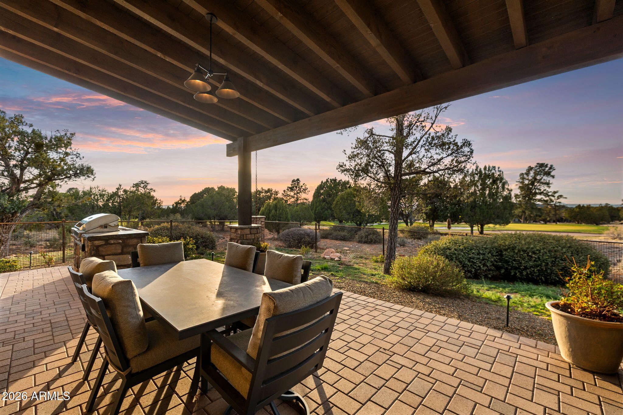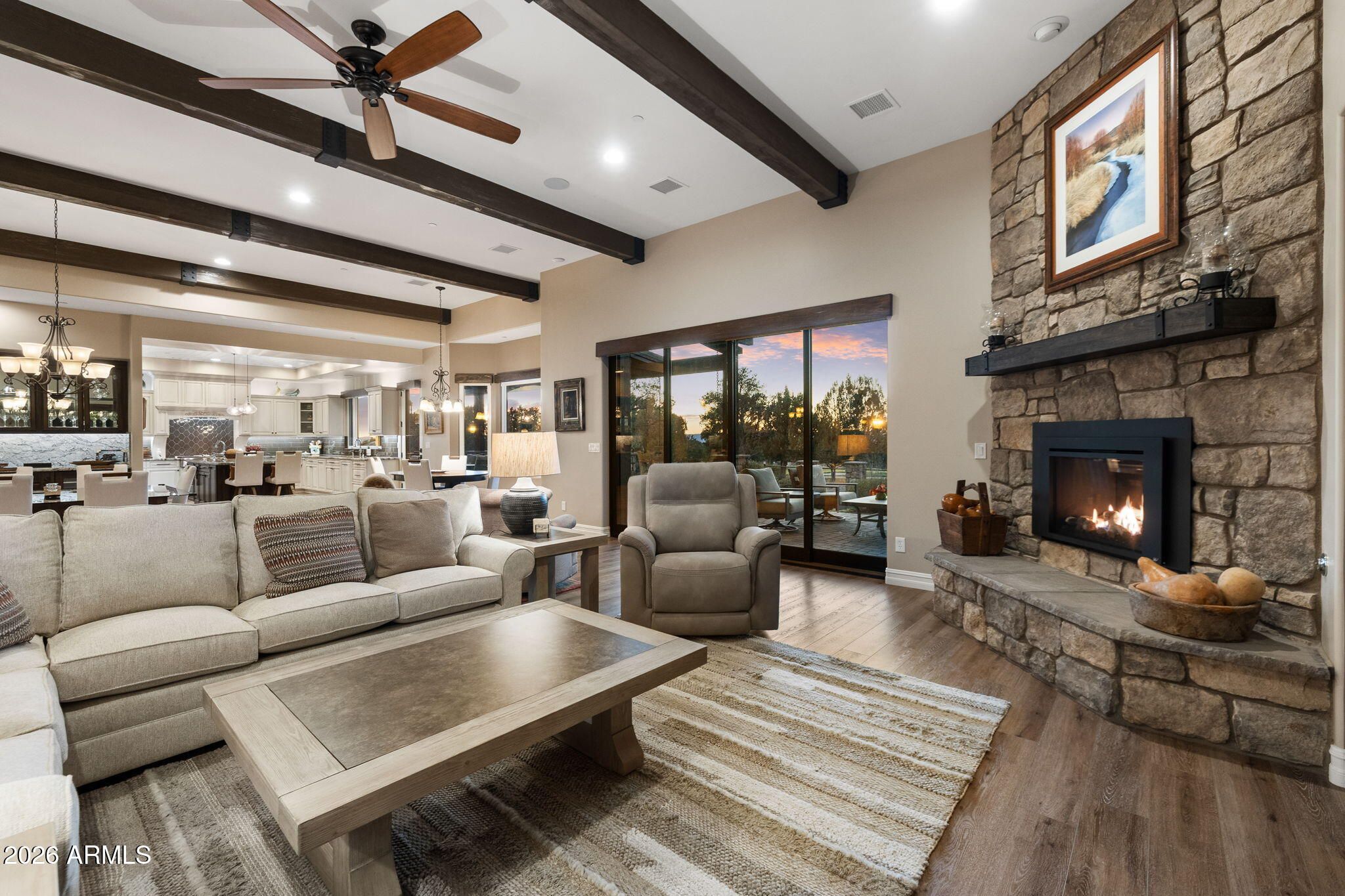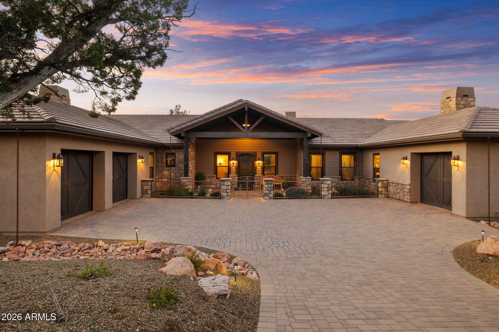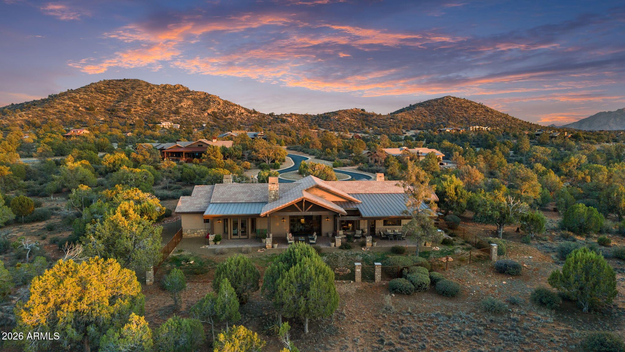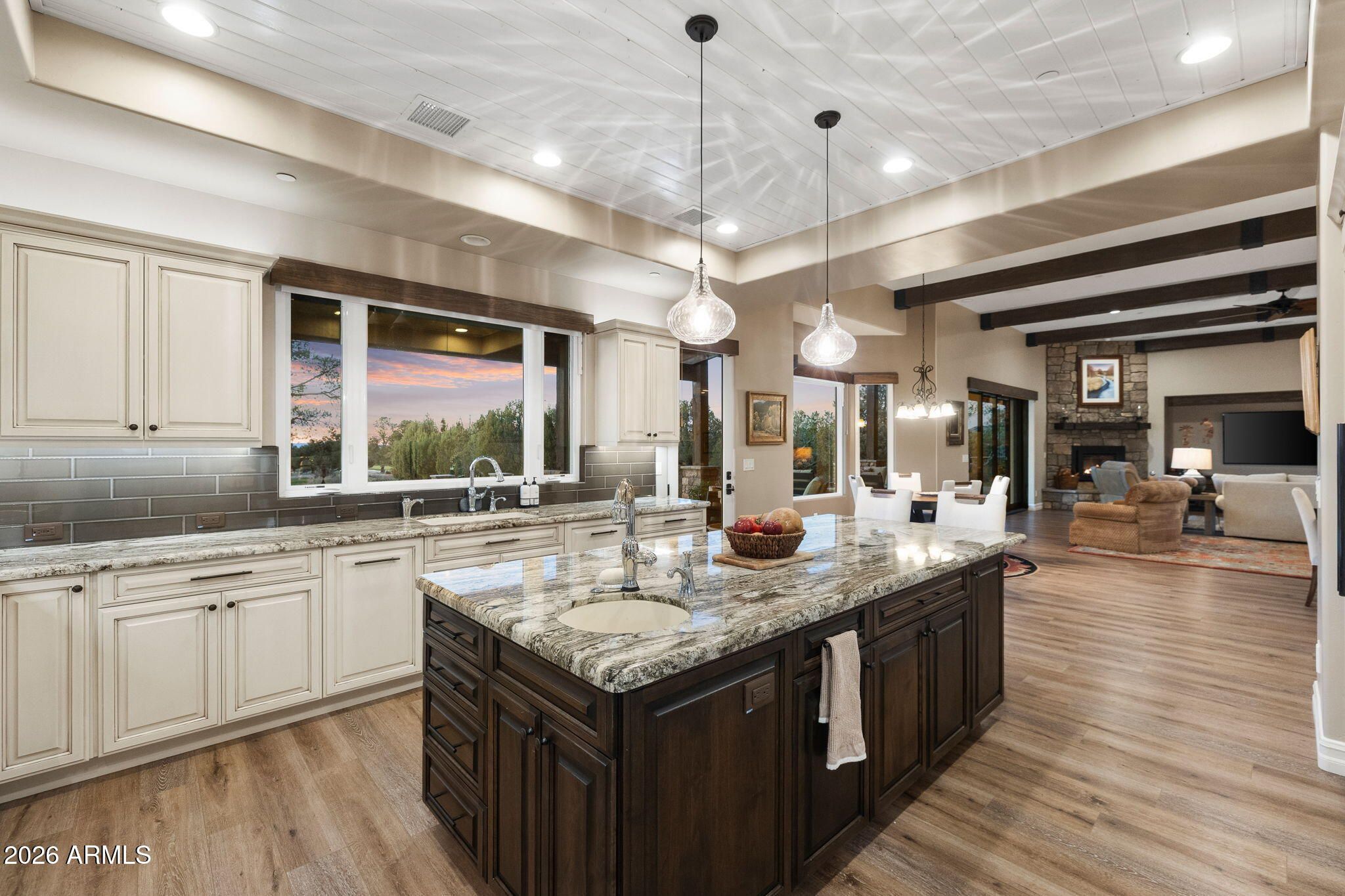 Positioned on the 6th green of Talking Rock Golf Course and bordered by HOA common space for enhanced privacy, this exceptional residence offers a refined blend of luxury, serenity, and panoramic golf course views. Thoughtfully designed and impeccably maintained, the home captures natural light throughout its expansive open-concept layout, anchored by a dramatic floor-to-ceiling stone fireplace and elevated designer finishes. The luxurious primary suite is a private retreat, featuring dual walk-in closets and a spa-inspired ambiance. At the heart of the home, the chef's kitchen is both sophisticated and functional, appointed with slab granite countertops, Blanco sinks, and a full suite of premium Wolf and Sub-Zero appliances, including a 36'' refrigerator and freezer, gas cooktop, double ovens, built-in coffee system, warming drawer, and an expansive butler's pantry designed for seamless entertaining. The dining space is enhanced by a custom built-in bar with wine refrigeration, creating an ideal setting for intimate gatherings. Outdoor living is equally impressive, with a covered patio, built-in BBQ, and a fully fenced backyard--perfectly positioned to capture the surrounding beauty and tranquility. Completing the property is an oversized three-car garage with deep bays, epoxy-finished floors, and extensive custom built-ins, offering both functionality and sophistication. A rare opportunity to experience elevated golf course living in one of Prescott's most sought-after communities. Talking Rock is an exclusive private golf community offering members and their guests an unmatched blend of hospitality, comfort, and western elegance. Amenities include an award-winning Jay Morrish-designed golf course, a state-of-the-art Fitness Barn, the Ranch House Restaurant and Bar, Coop's Coffee House, a Members Lounge, racquet sport courts, a dog park, a community garden, and over 14 miles of scenic hiking and biking trails. Enjoy a mild four-season climate that allows for year-round golf and outdoor recreation in a truly exceptional setting.