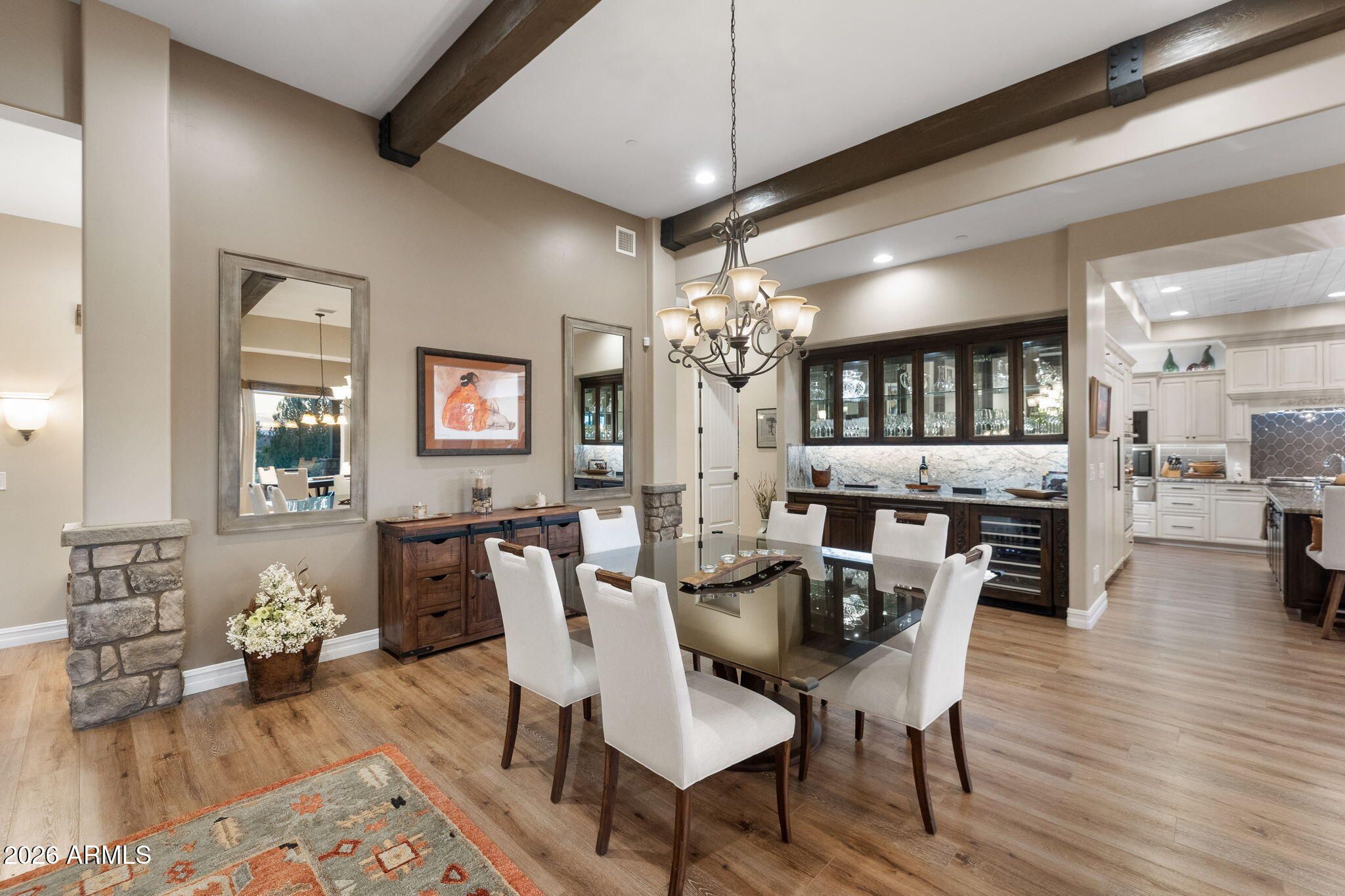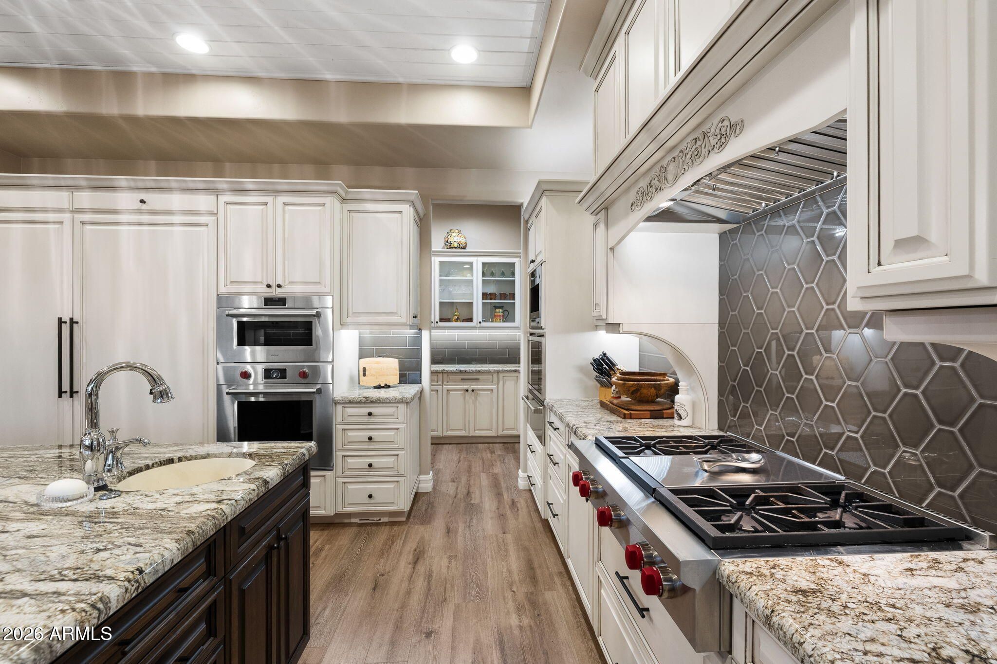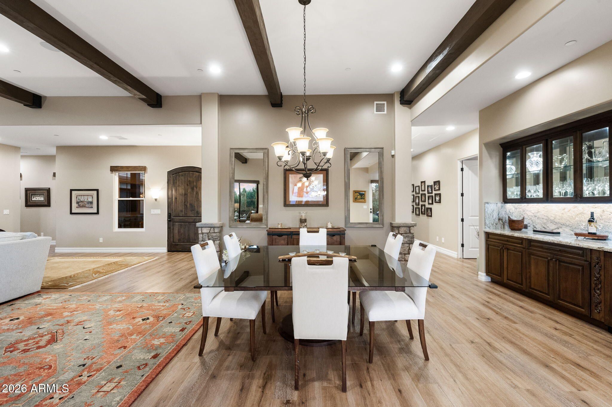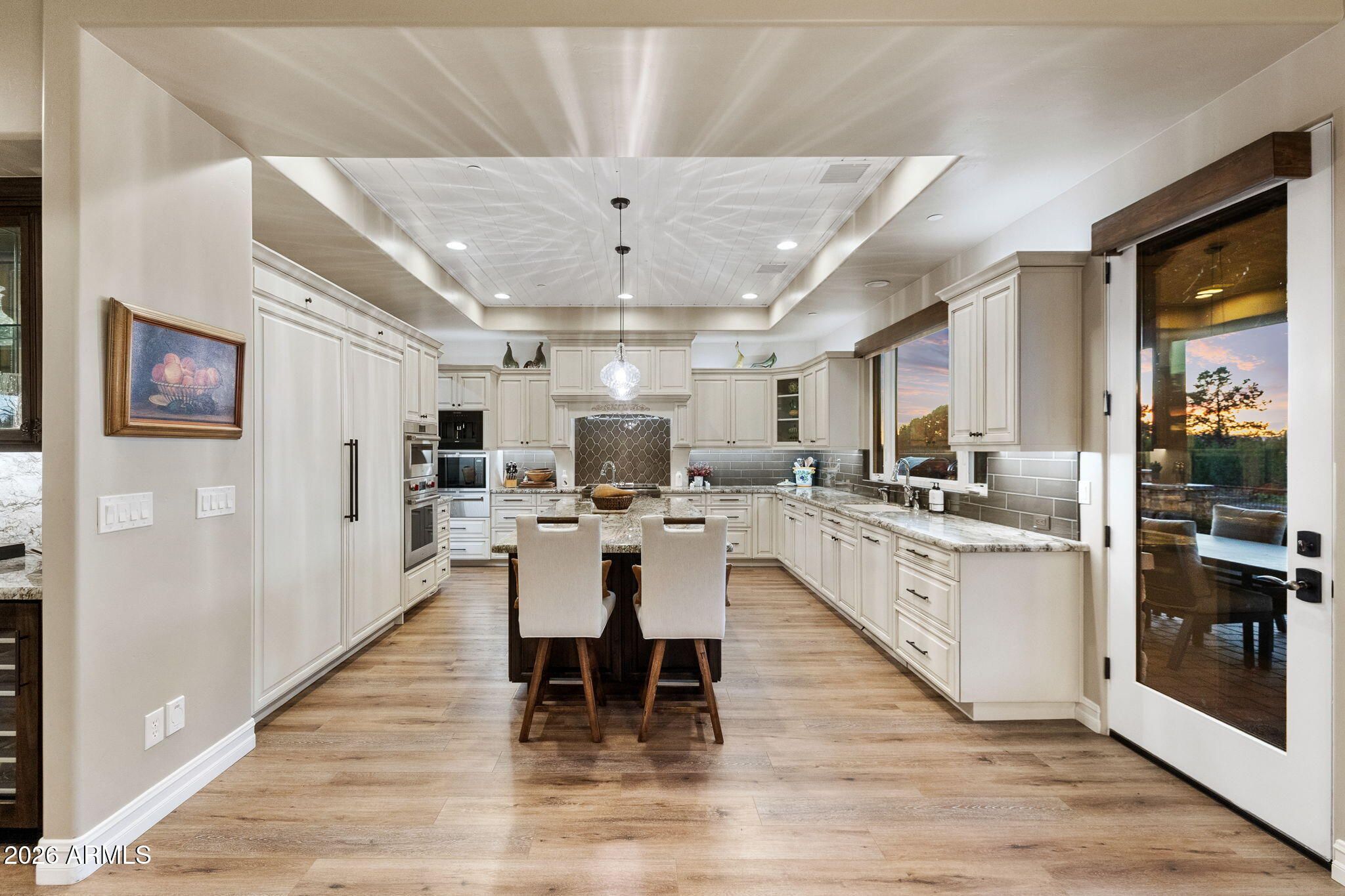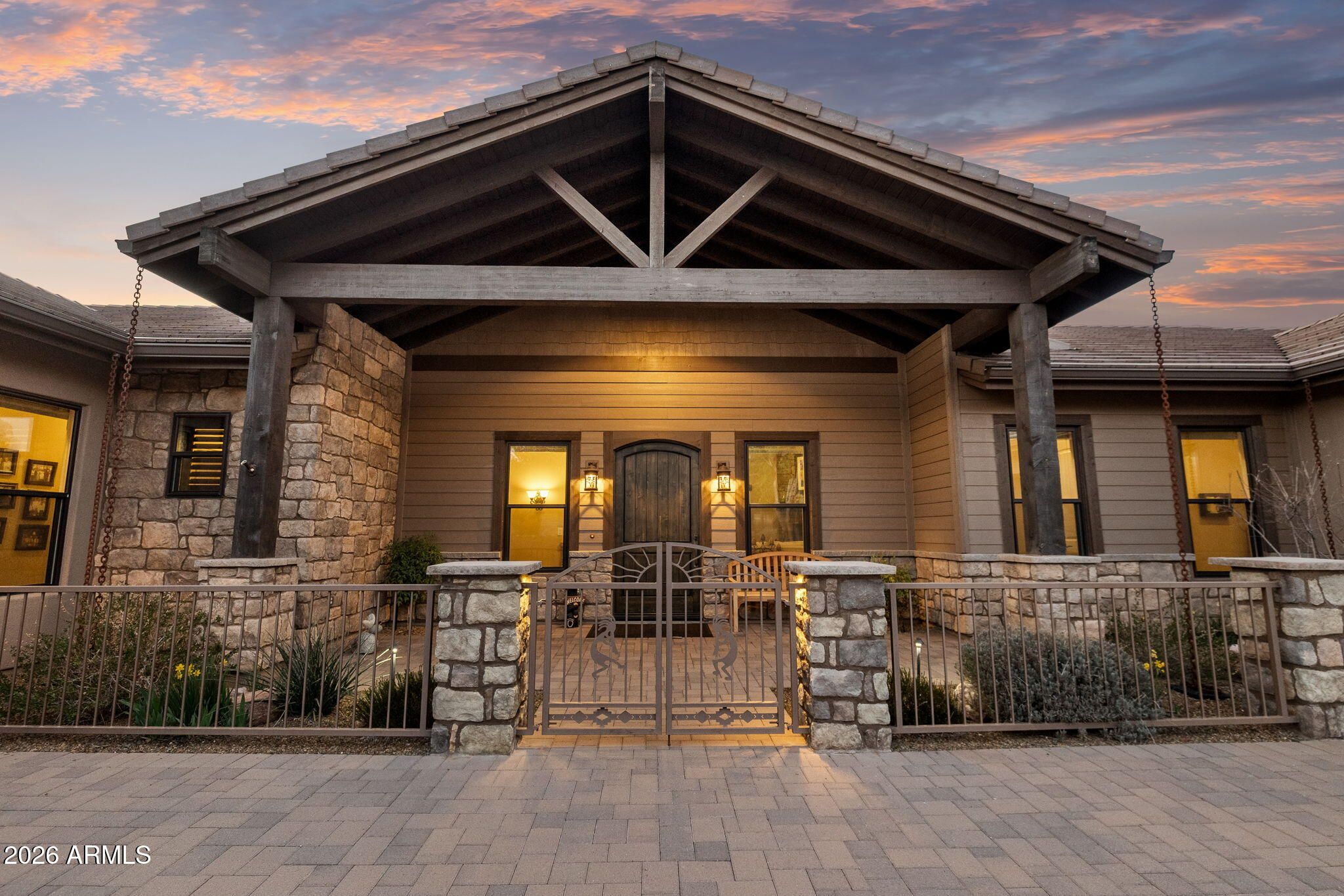 Positioned on the 6th green of Talking Rock Golf Course and bordered by HOA common space for enhanced privacy, this exceptional residence offers a refined blend of luxury, serenity, and panoramic golf course views. Thoughtfully designed and impeccably maintained, the home captures natural light throughout its expansive open-concept layout, anchored by a dramatic floor-to-ceiling stone fireplace and elevated designer finishes. The luxurious primary suite is a private retreat, featuring dual walk-in closets and a spa-inspired ambiance. At the heart of the home, the chef's kitchen is both sophisticated and functional, appointed with slab granite countertops, Blanco sinks, and a full suite of premium Wolf and Sub-Zero appliances, including a 36'' refrigerator and freezer, gas cooktop, double ovens, built-in coffee system, warming drawer, and an expansive butler's pantry designed for seamless entertaining. The dining space is enhanced by a custom built-in bar with wine refrigeration, creating an ideal setting for intimate gatherings. Outdoor living is equally impressive, with a covered patio, built-in BBQ, and a fully fenced backyard--perfectly positioned to capture the surrounding beauty and tranquility. Completing the property is an oversized three-car garage with deep bays, epoxy-finished floors, and extensive custom built-ins, offering both functionality and sophistication. A rare opportunity to experience elevated golf course living in one of Prescott's most sought-after communities. Talking Rock is an exclusive private golf community offering members and their guests an unmatched blend of hospitality, comfort, and western elegance. Amenities include an award-winning Jay Morrish-designed golf course, a state-of-the-art Fitness Barn, the Ranch House Restaurant and Bar, Coop's Coffee House, a Members Lounge, racquet sport courts, a dog park, a community garden, and over 14 miles of scenic hiking and biking trails. Enjoy a mild four-season climate that allows for year-round golf and outdoor recreation in a truly exceptional setting.