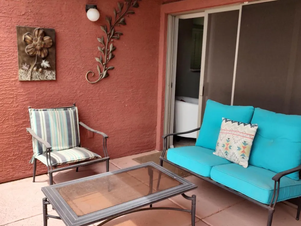 This unit is located on the ground floor and a corner unit. New furnace and A/C. Fully Furnished and two bedrooms split with two separate Bathrooms. Kitchen has been upgraded with all new stainless steel appliance's plantation shutters and also a new washer dryer that is accessible off the kitchen. White cabinets and white blinds make this a bright area and unit that offers an easy lock and leave and little to no maintenance Close to all the amenities and walk directly to your parking spot. Moments away. This unit boasts two suites with separate baths and showers. Front room and formal dining outside the kitchen nook. walk out onto a Patio that offers you a lounge area to grill and enjoy the AZ warmth. This building offers access to all of the facilities and Golf in Grand unit is espe