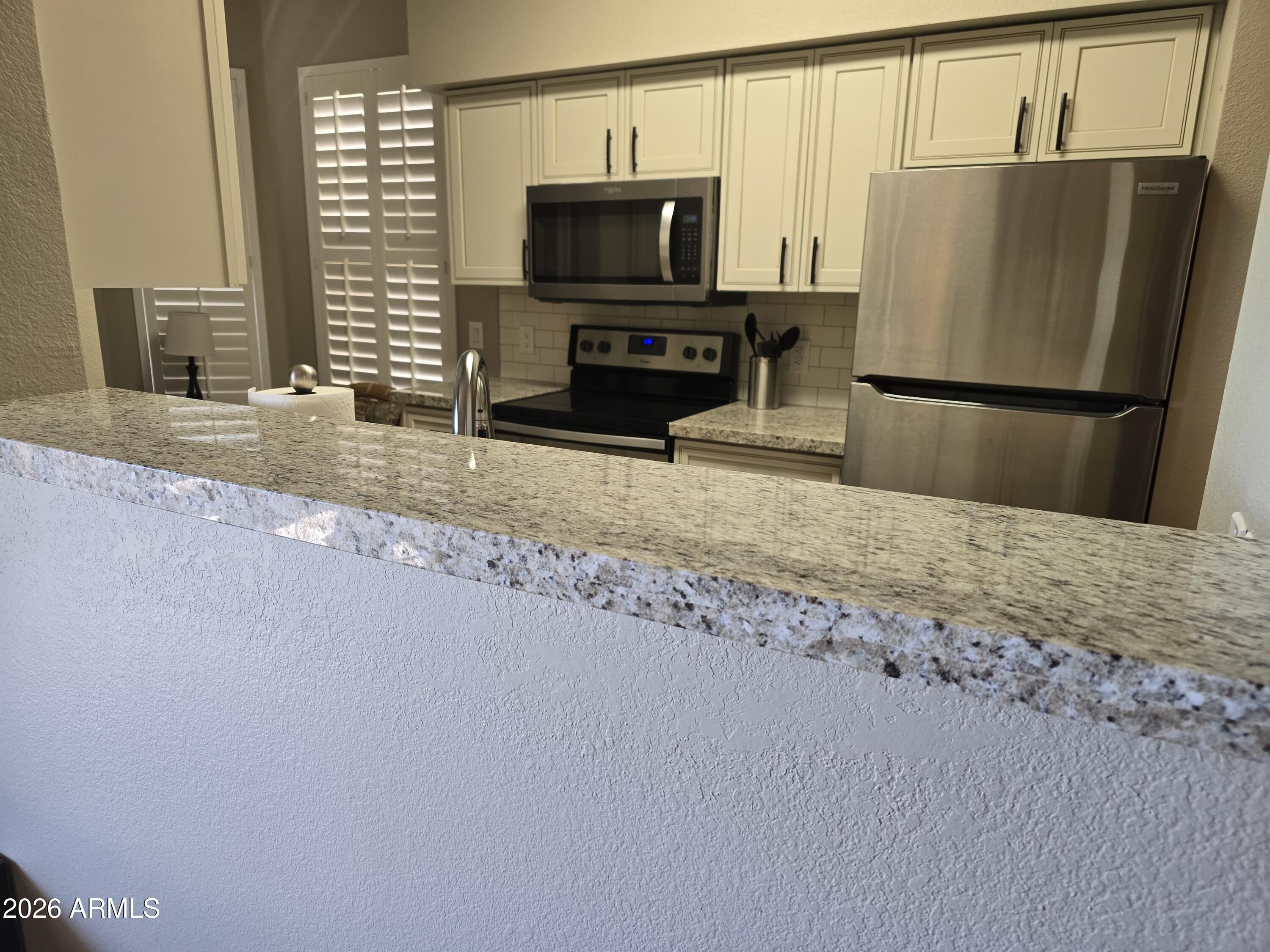 - Dryer Included, Washer, Refrigerator, Built-in Microwave, Dishwasher, Disposal, Electric Range