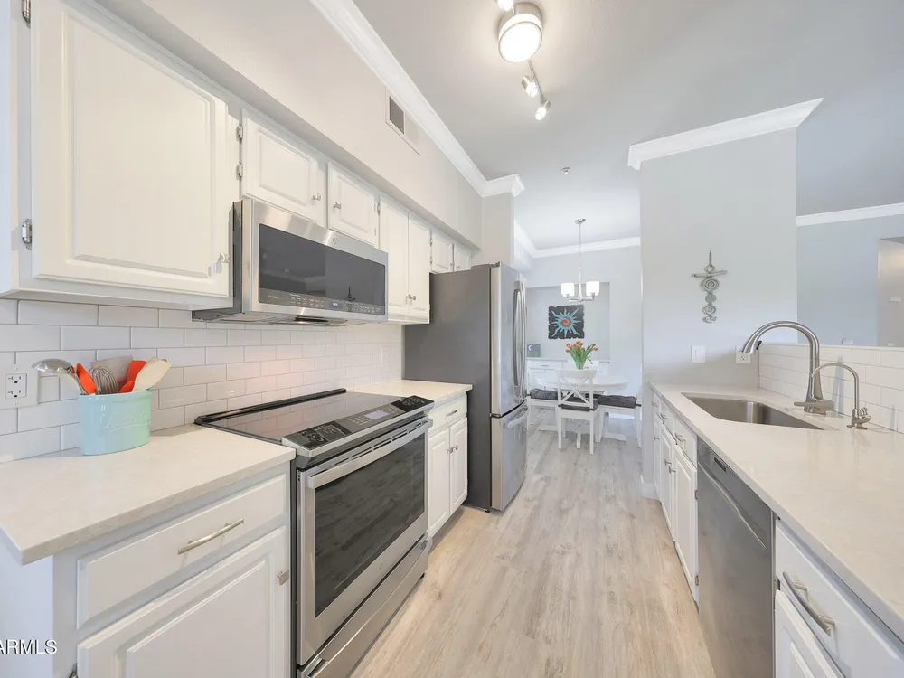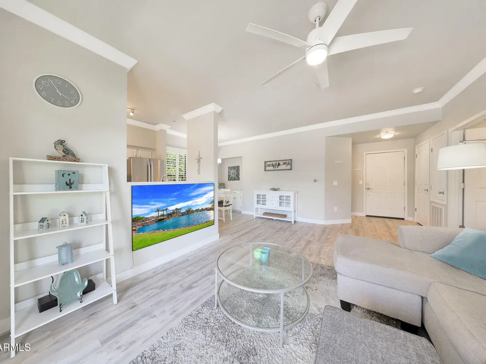 Highly Upgraded and Move In Ready Grande. 2 Full Bedrooms and 2 Baths. This Condo Features : New Luxury Plank Vinyl throughout. New Crown Molding & Baseboards, New Light Fixtures and Ceiling Fans, New Quartz Counter Tops, Back Splash, New GE Profile Appliance Package, Painted Cabinets,, Faucets, Outlets, Water Softener, Tankless Water Heater, HVAC Heat Pump 2021, Reverse Osmosis 2022, Stacked LG Washer&Dryer. Nest /doorbell & thermostat. MOST OF ALL GOLF CART COVERED PARKING WITH LIGHTING. Visible From Your Kitchen Nook Window. Don't Miss Fabulous Condo priced to sell!