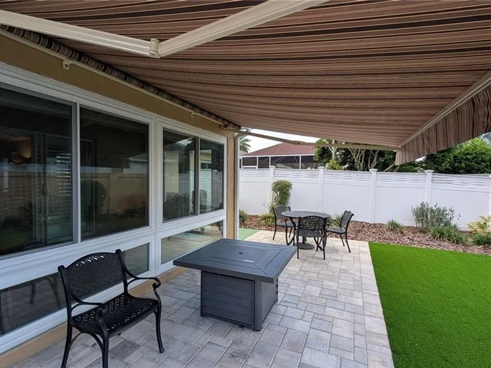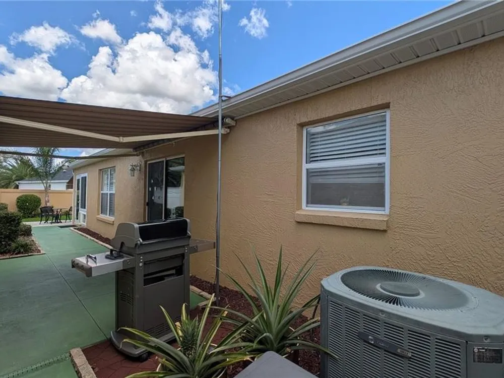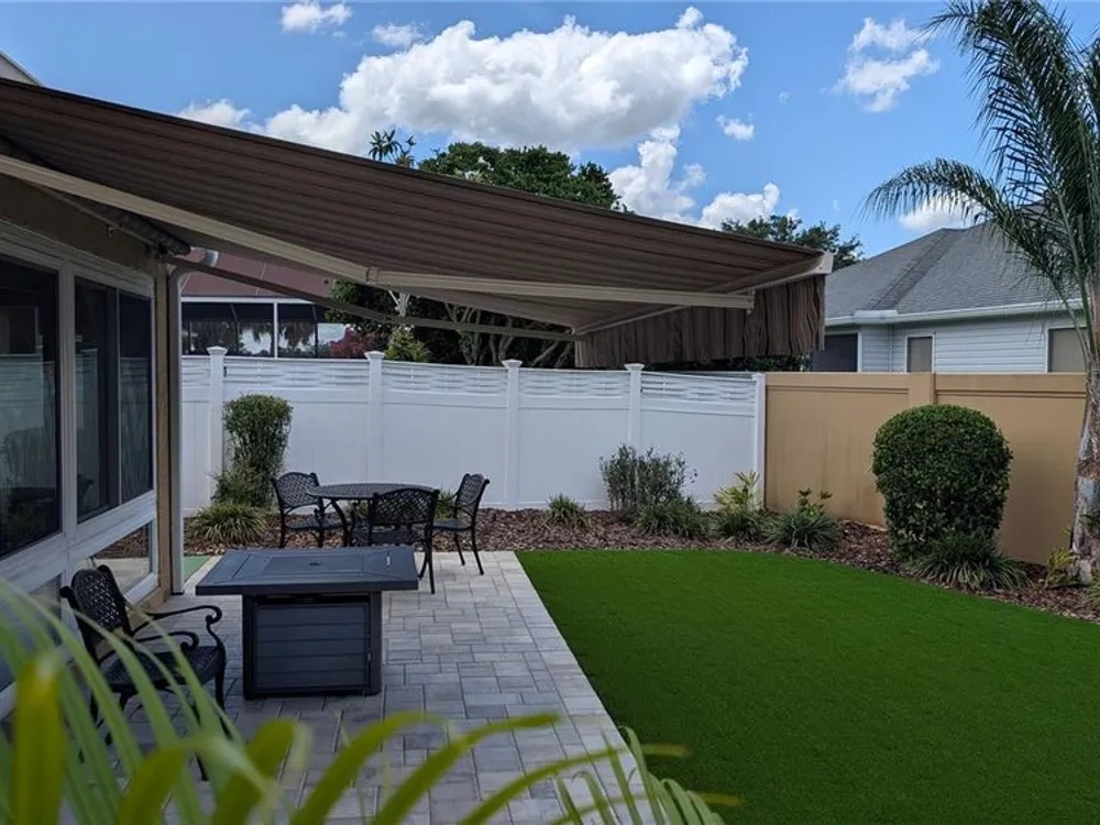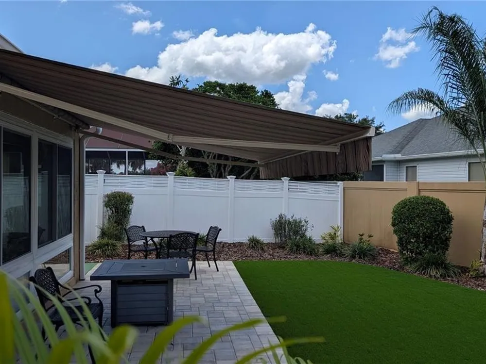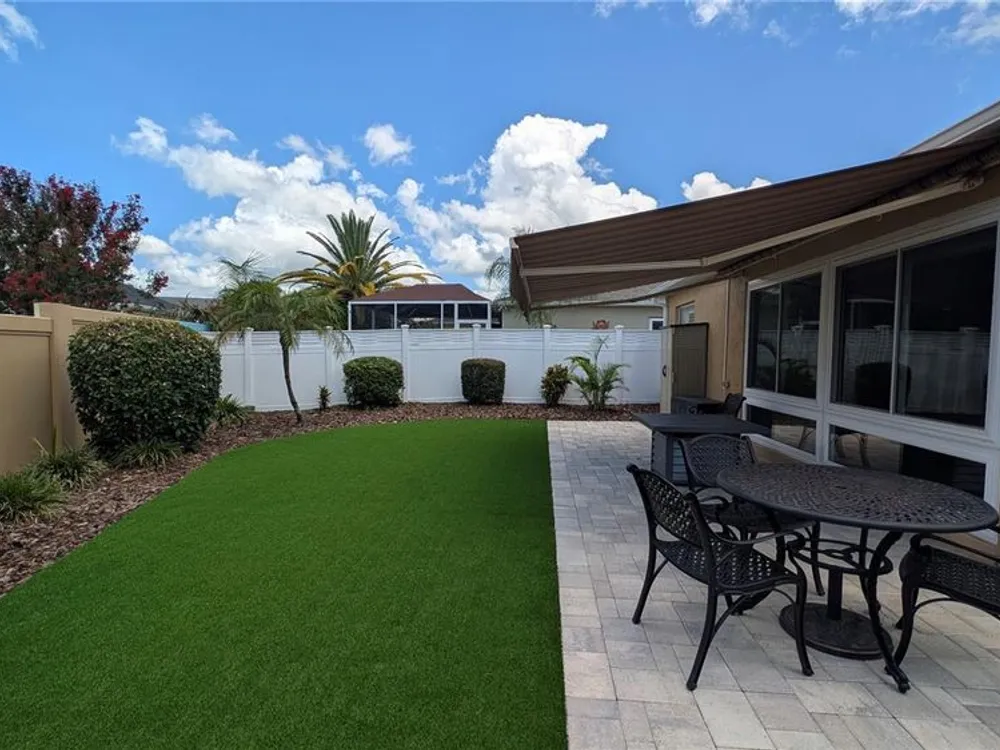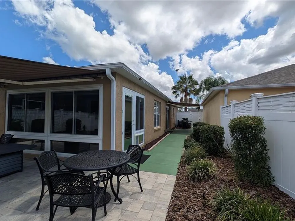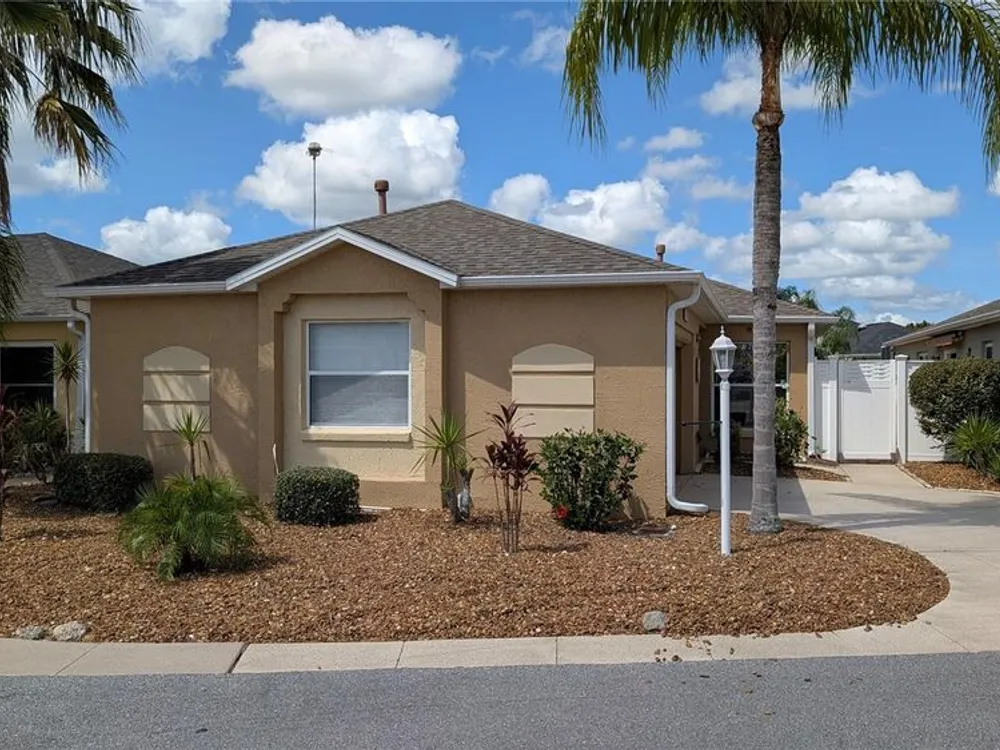 This charming 2-bedroom, 2-bathroom courtyard villa offers 1,132 sq ft of beautifully designed living space. With bond paid, and being offered TURNKEY, Including 2year old electric golf cart. This home is move-in ready and packed with upgrades! Step inside to find natural maple cabinetry, granite countertops, and a Bosch dishwasher in the kitchen. The main living areas feature ceramic tile flooring, plantation shutters, and volume ceilings, adding elegance and comfort. Both bathrooms have been outfitted with solar tubes. A new roof was installed in 2020, along with a Nuvo water filtration system, gas utilities, and granite in both bathrooms as well as the kitchen, ensures modern convenience. Outside, enjoy manicured landscaping, a tiled entry, Turf and pavers in the backyard, and an electric garage screen for added curb appeal. Nestled in a low-noise neighborhood, this home offers a peaceful retreat while being close to all the amenities The Villages has to offer. Don't miss your chance to own this slice of paradise! Schedule your showing today.