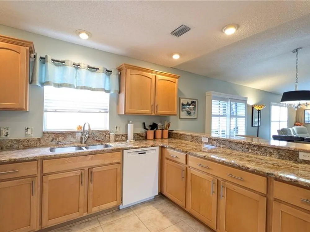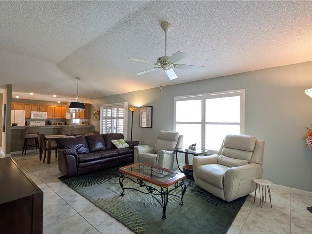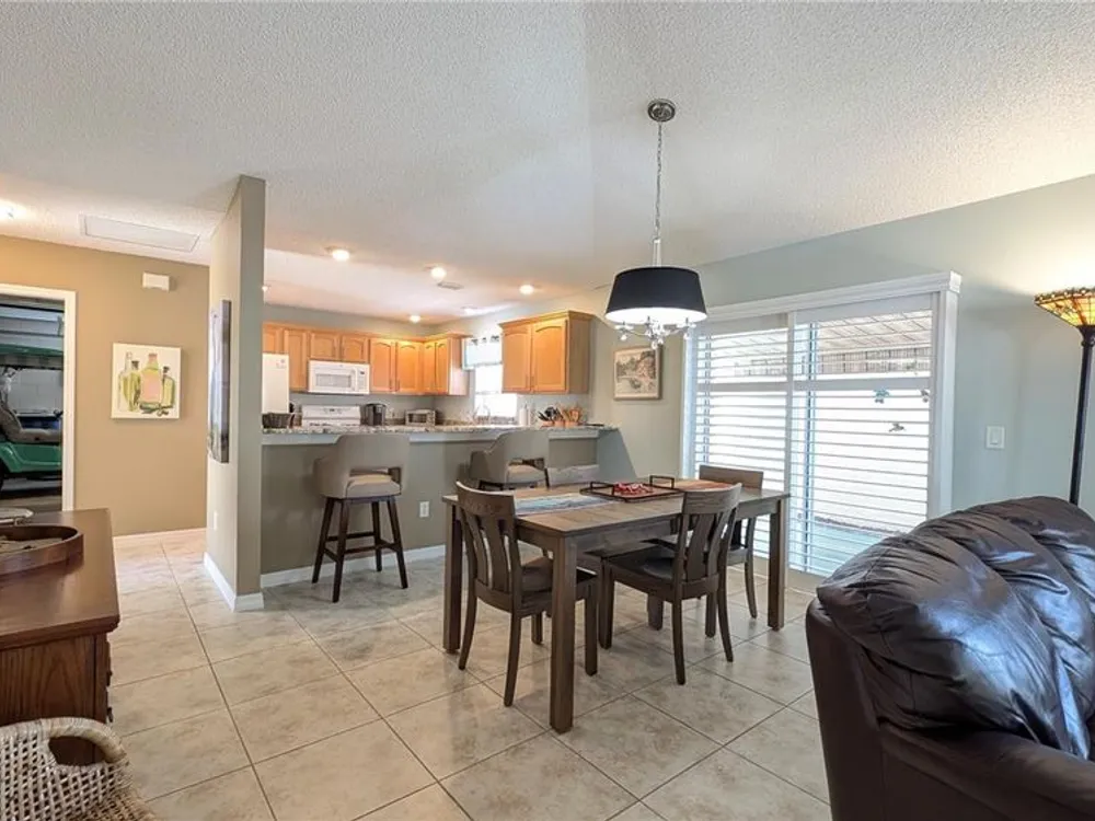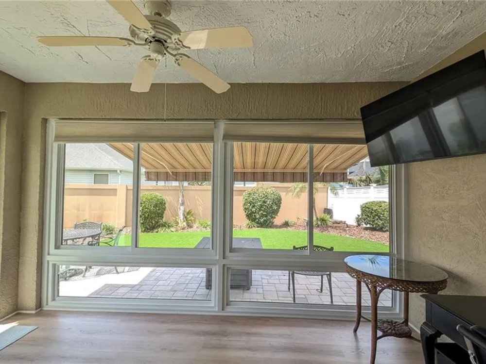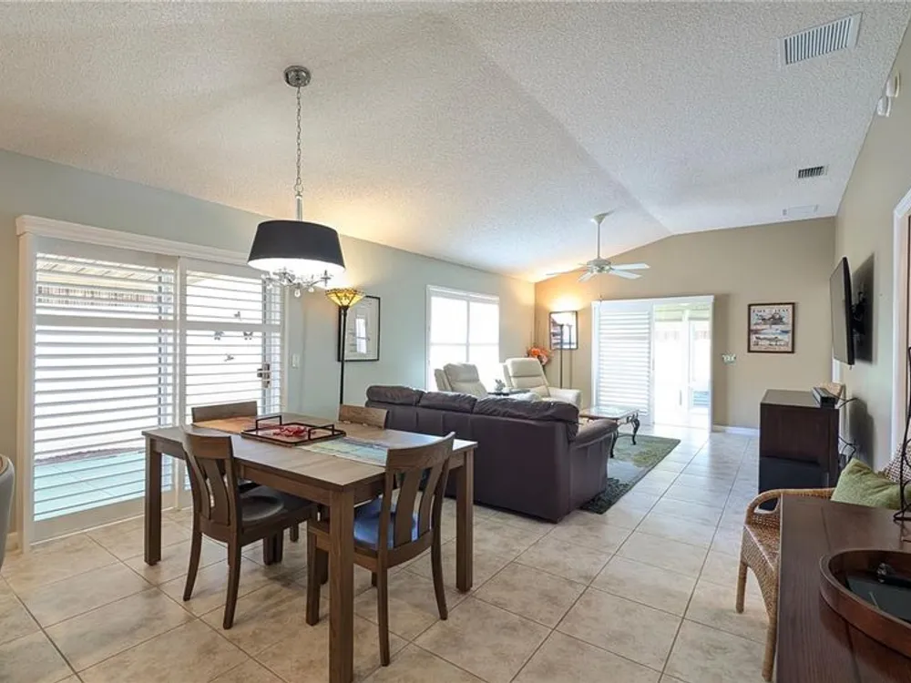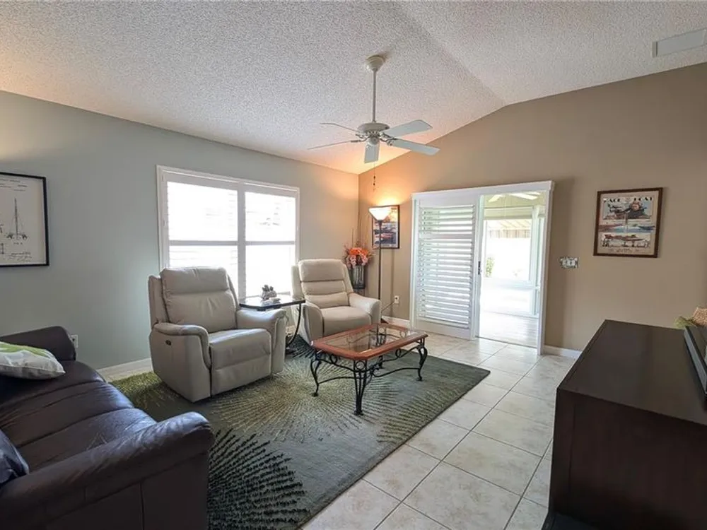 This charming 2-bedroom, 2-bathroom courtyard villa offers 1,132 sq ft of beautifully designed living space. With bond paid, and being offered TURNKEY, Including 2year old electric golf cart. This home is move-in ready and packed with upgrades! Step inside to find natural maple cabinetry, granite countertops, and a Bosch dishwasher in the kitchen. The main living areas feature ceramic tile flooring, plantation shutters, and volume ceilings, adding elegance and comfort. Both bathrooms have been outfitted with solar tubes. A new roof was installed in 2020, along with a Nuvo water filtration system, gas utilities, and granite in both bathrooms as well as the kitchen, ensures modern convenience. Outside, enjoy manicured landscaping, a tiled entry, Turf and pavers in the backyard, and an electric garage screen for added curb appeal. Nestled in a low-noise neighborhood, this home offers a peaceful retreat while being close to all the amenities The Villages has to offer. Don't miss your chance to own this slice of paradise! Schedule your showing today.