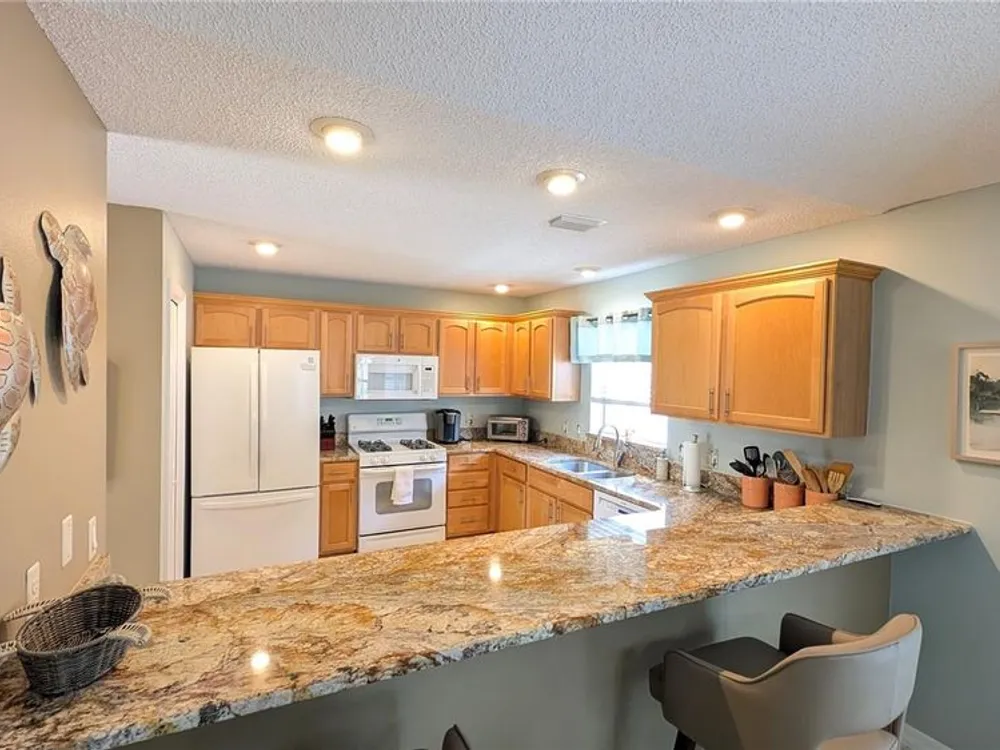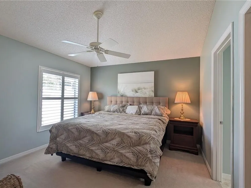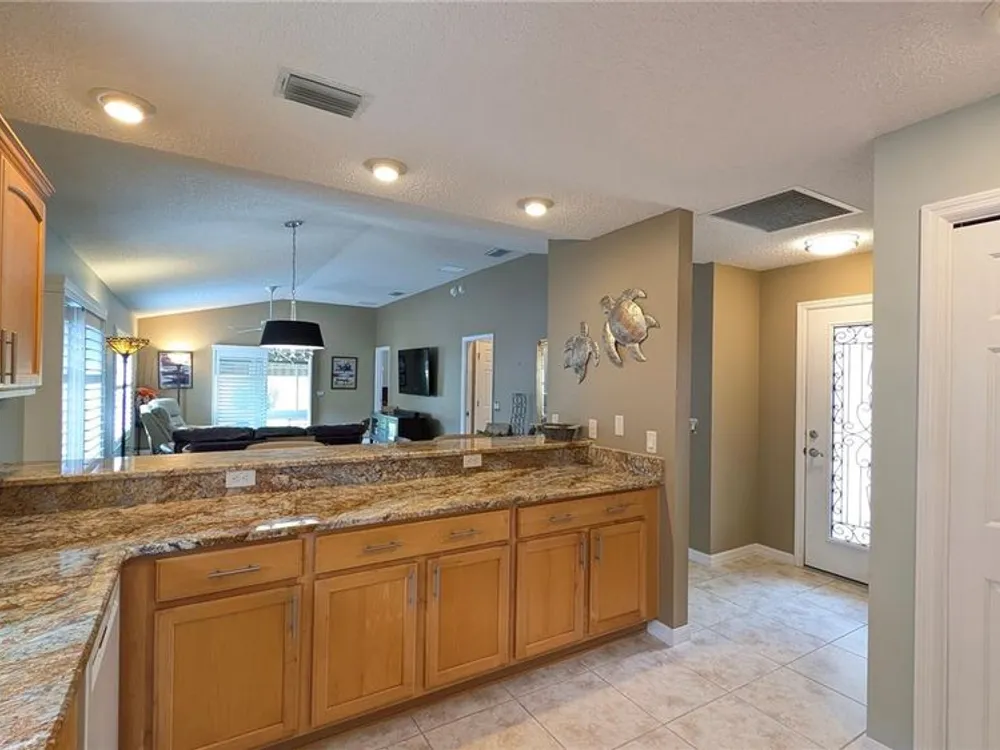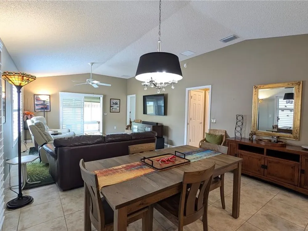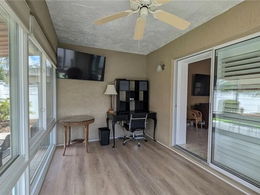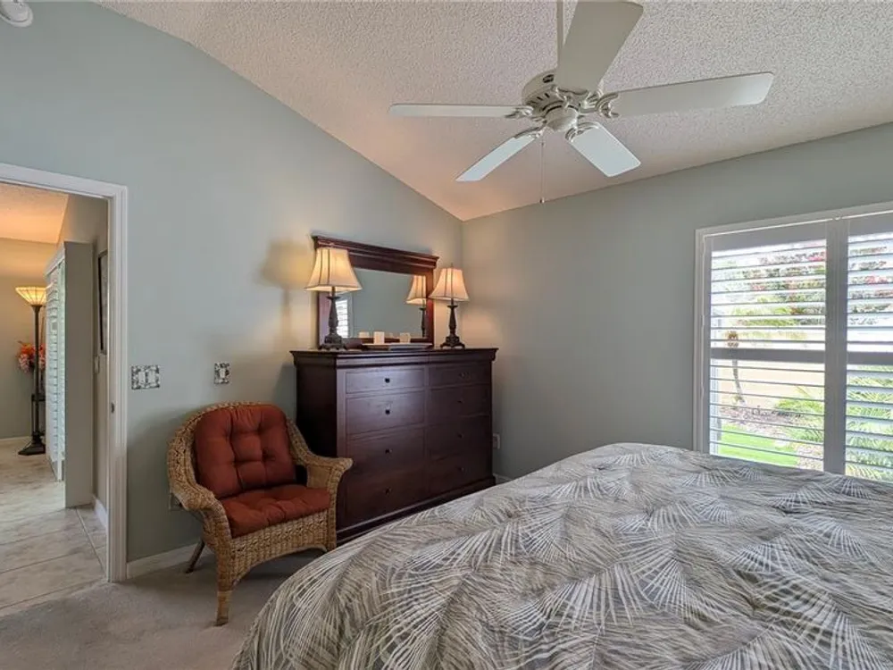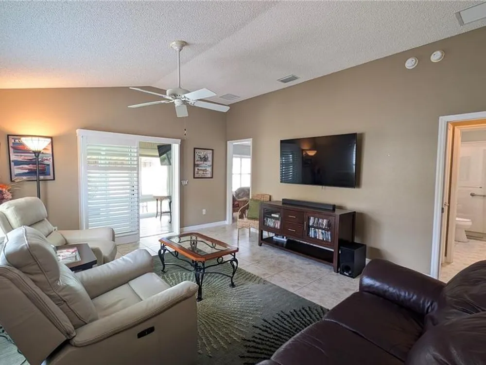 This charming 2-bedroom, 2-bathroom courtyard villa offers 1,132 sq ft of beautifully designed living space. With bond paid, and being offered TURNKEY, Including 2year old electric golf cart. This home is move-in ready and packed with upgrades! Step inside to find natural maple cabinetry, granite countertops, and a Bosch dishwasher in the kitchen. The main living areas feature ceramic tile flooring, plantation shutters, and volume ceilings, adding elegance and comfort. Both bathrooms have been outfitted with solar tubes. A new roof was installed in 2020, along with a Nuvo water filtration system, gas utilities, and granite in both bathrooms as well as the kitchen, ensures modern convenience. Outside, enjoy manicured landscaping, a tiled entry, Turf and pavers in the backyard, and an electric garage screen for added curb appeal. Nestled in a low-noise neighborhood, this home offers a peaceful retreat while being close to all the amenities The Villages has to offer. Don't miss your chance to own this slice of paradise! Schedule your showing today.