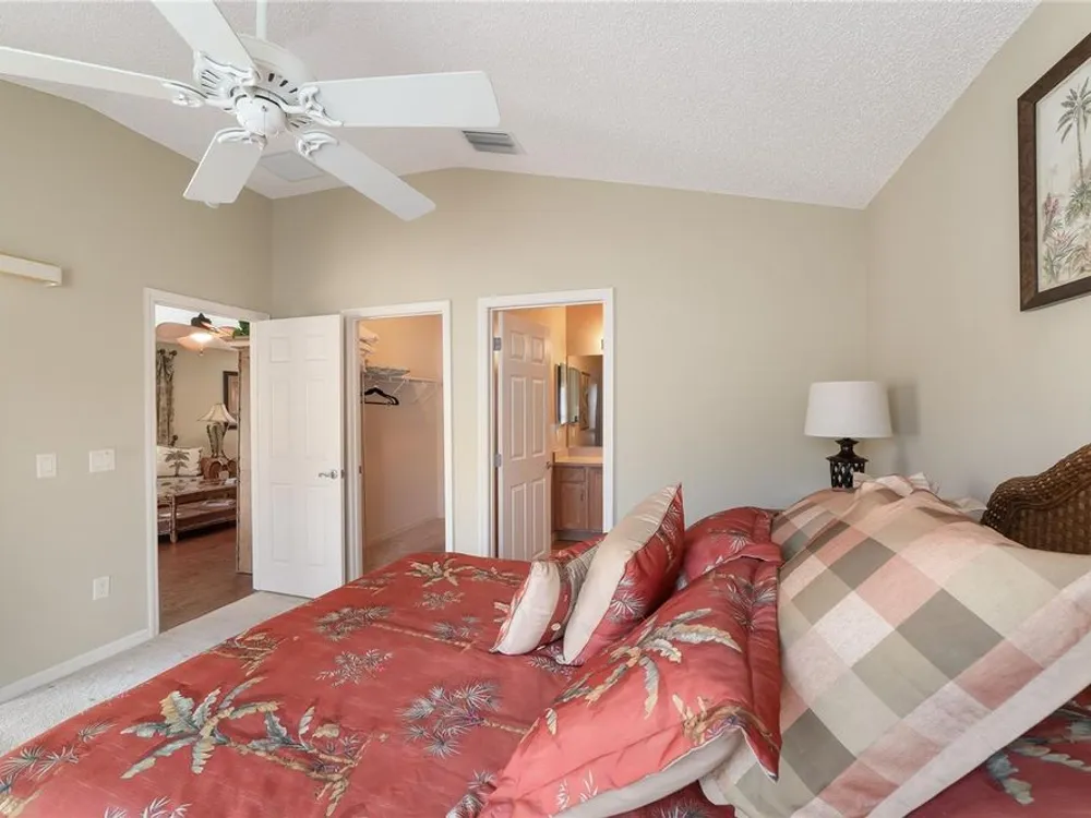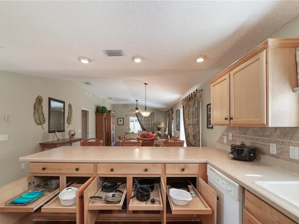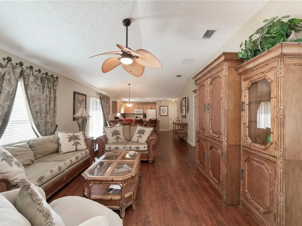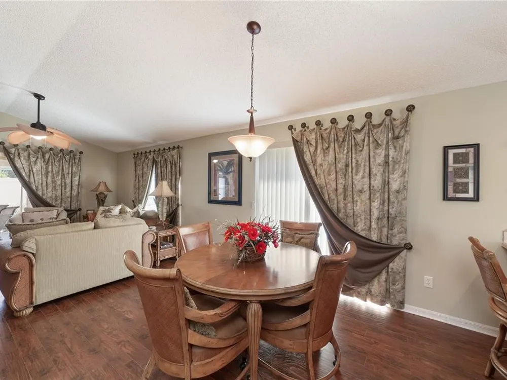 - Ceiling Fan(s), High Ceilings, L-Shaped Dining Room, Open Floorplan, Main Level Primary, Solid-Wood Cabinets, Split Bedrooms, Thermostat, Walk-In Closet(s), Window Treatments