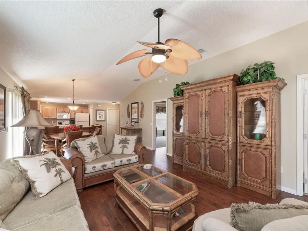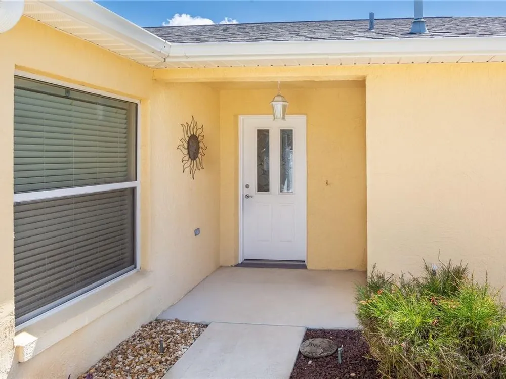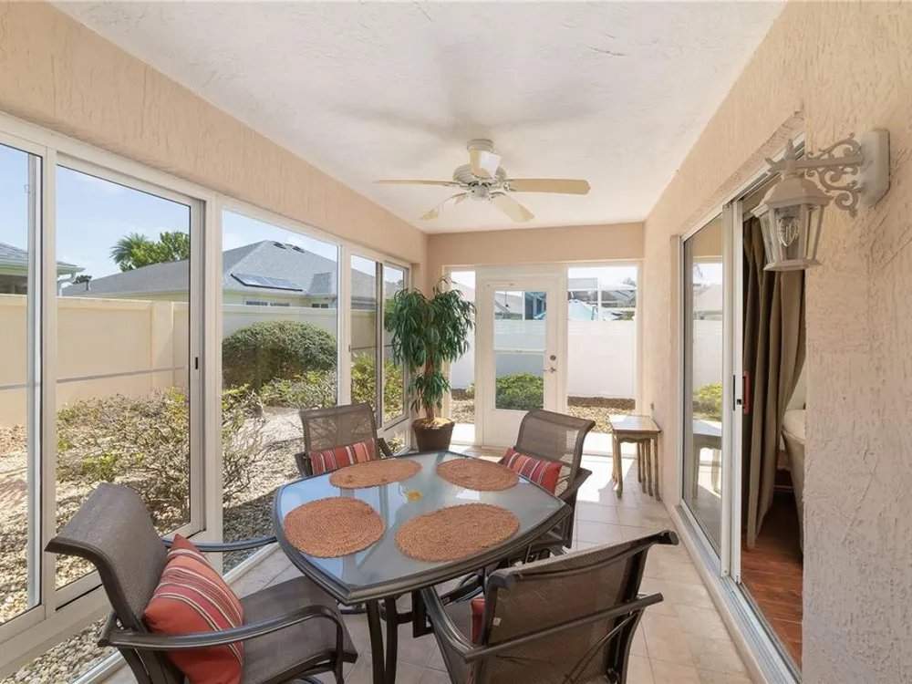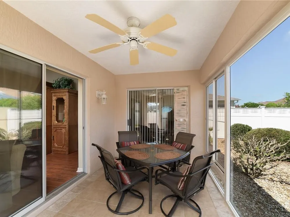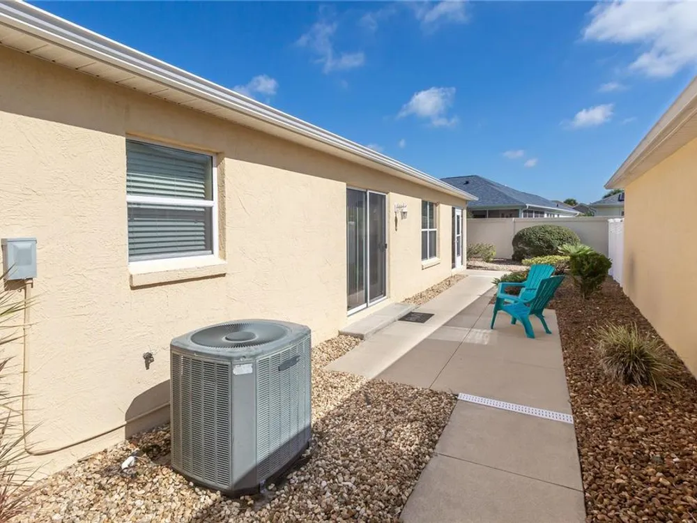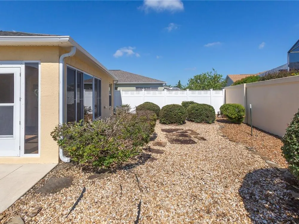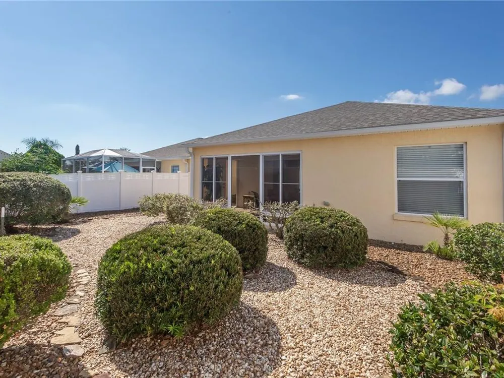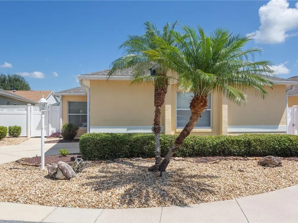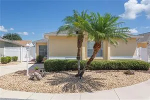 PRICE REDUCTION! BOND PAID NEW ROOF AWESOME LOCATION between Lake Sumter Landing and Brownwood Paddock Square! Welcome to this charming two-bedroom two bath STUCCO COURTYARD villa, completely fenced in for your pets and or private outdoor living, also with a low maintenance yard! Well maintained home with an enclosed lanai which adds more space. Turnkey and ready for you to move right in. The enclosed lanai is accessible from both the living area and the main bedroom via sliding glass doors. This home is a fantastic opportunity for both investors and homeowners looking to enjoy the vibrant lifestyle here! Roommate floor plan with a pocket door off the hall for the guest bedroom which allows your guest privacy. The guest bath has a shower tub combination. Main bedroom has a walk-in closet and glass enclosed shower. Kitchen has a tile backsplash along with a pantry, gas cooking and a breakfast bar that can seat three to four guests. Kitchen drawers have pull-outs for kitchen organization. There is a one car garage with room for a golf cart. Washer and dryer located in the garage. Your mail center and pool are located just around the corner along with your closest recreation center. Numerous golf courses in the area as well. We have nightly entertainment at each square and there are over 100 pools here for your enjoyment. This villa is not far from shopping, dining, banking etc.