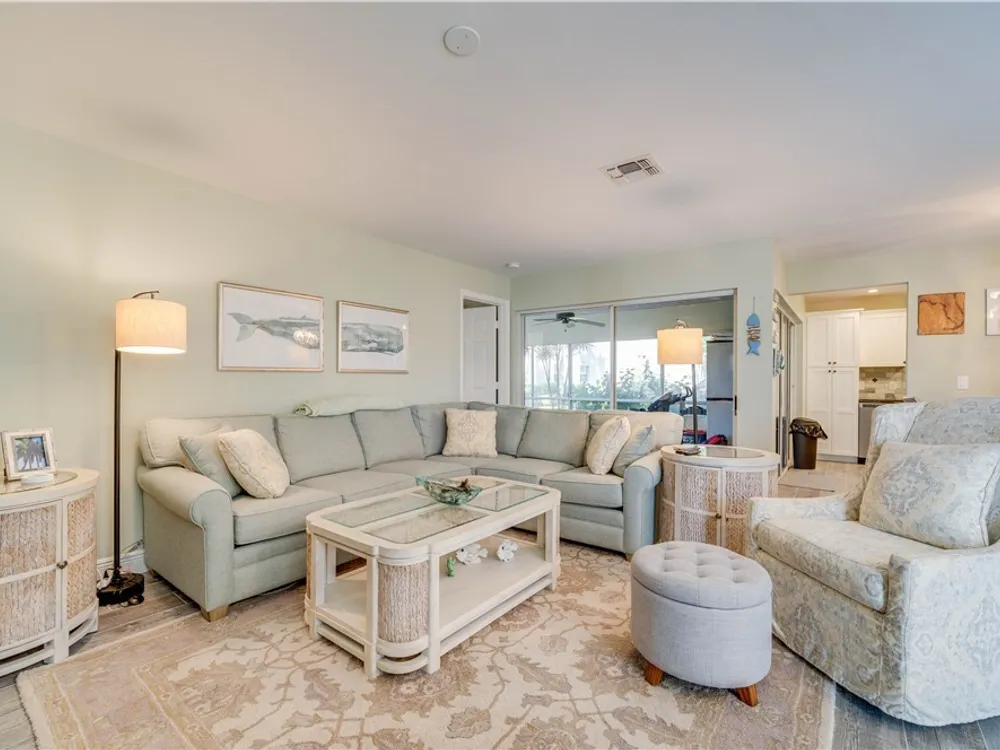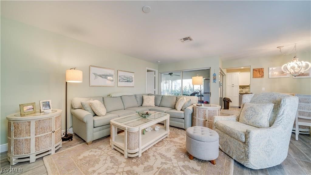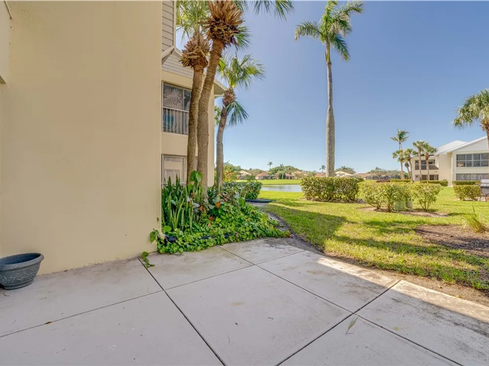 This first floor, 3 bedroom condo has been beautifully updated and is being sold with new, high quality furnishings. Relax in the tastefully decorated living room, enjoy morning coffee on the screened in lanai with a view of the lake, and meet your neighbors at the community pool. This condo has been TOTALLY updated! New wood plank look tile and new plush carpet in the bedrooms. The kitchen has new white cabinets with soft close doors and drawers and granite countertops. The AC is less than 2 years old and the hot water tank was replaced last year. The stackable washer and dryer are also new. This is a lovely community where you can enjoy walking and bike riding. Golf and social memberships are available. For the boaters, there are docks available for purchase or lease and a marina. Enjoy going to the beach? This is only a 7 mile ride to Fort Myers Beach and 14 miles to Sanibel. Downtown Fort Myers is 10 miles down McGregor Blvd. So many restaurants and shopping options even closer! And, just 15 miles from the Southwest Florida International airport!