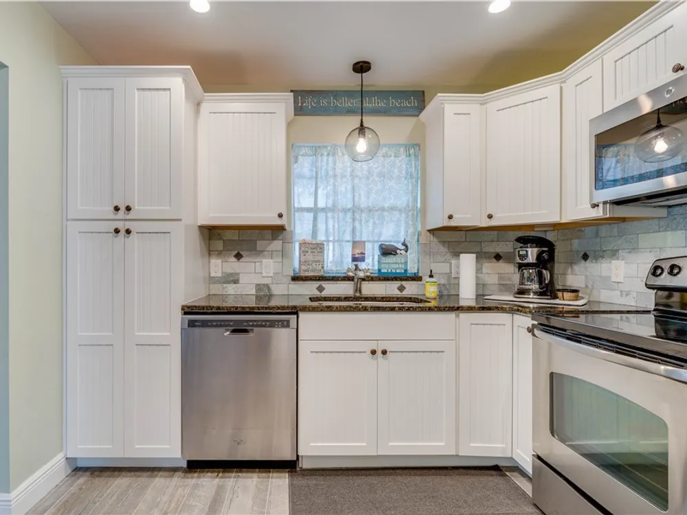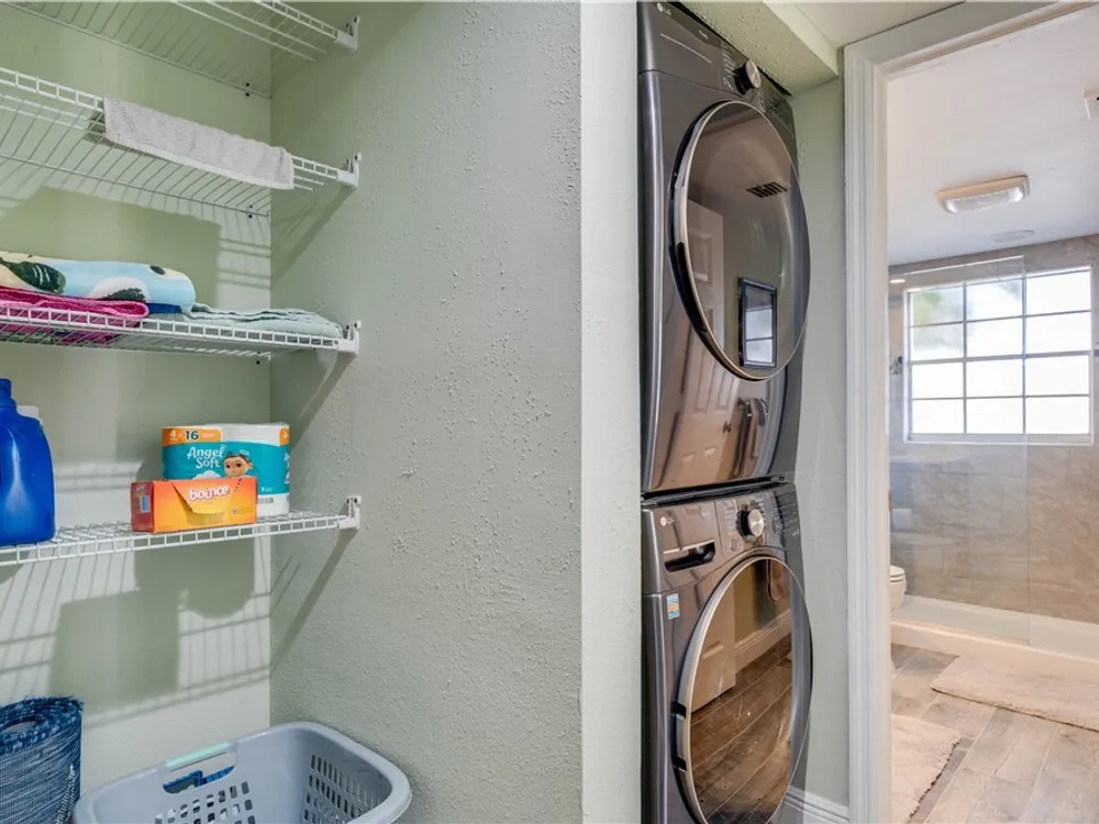 - Dryer, Dishwasher, Disposal, Microwave, Range, Self Cleaning Oven, Washer