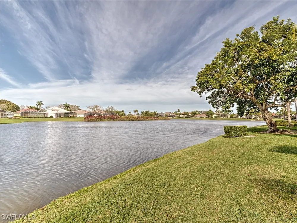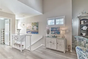 Charming 3-bedroom 2 bath condo located in Rivers Edge at Gulf Harbour offering a western exposure with lake and golf course views. The vaulted ceilings and open concept design allow this unit a much greater volume providing a spacious and relaxing retreat. The recently remodeled kitchen, master bath, and new flooring provide for that brand new feeling. Primary bedroom offers a walk-in closet, comfort height vanity, and a walk-in shower. Second and third bedrooms share a recently updated bathroom with a shower/tub combo. Third bedroom provides built in shelving and desk with a Murphy Bed. The two large sliders provide an effortless transition from indoor to out while enjoying amazing sunsets from the patio. Newer HVAC, 2022.