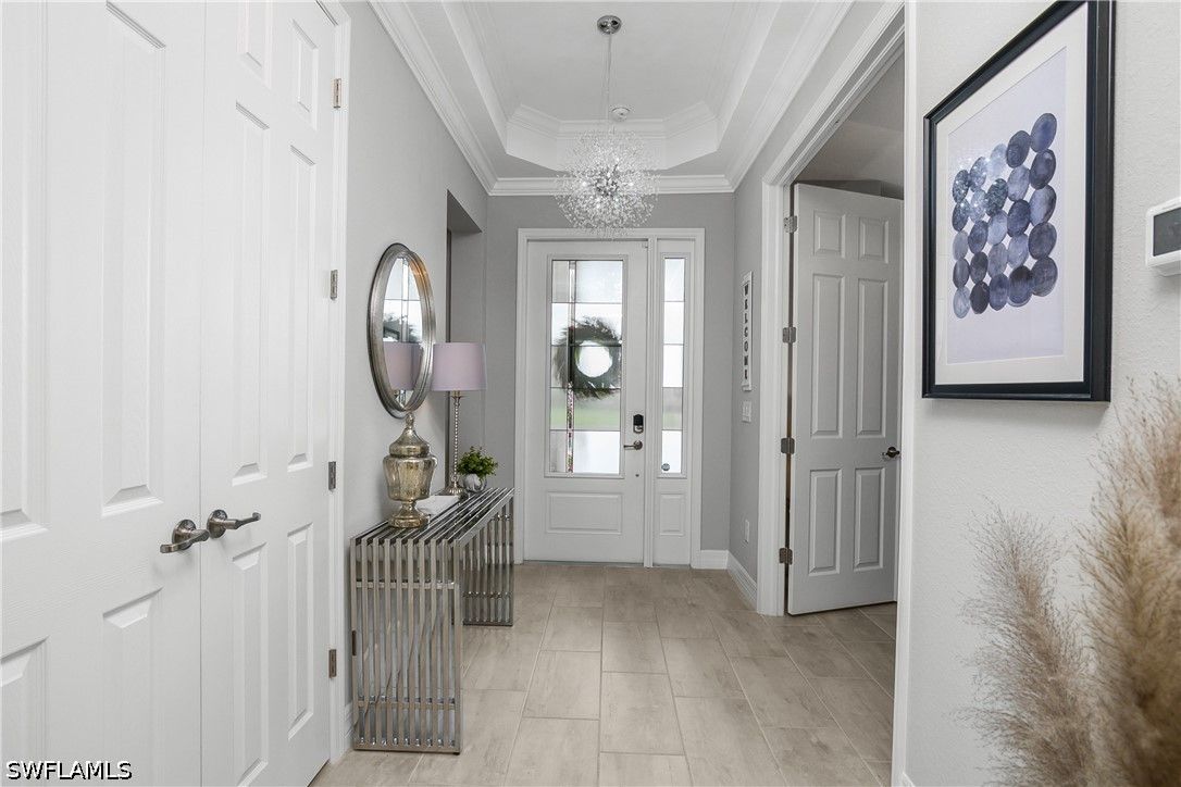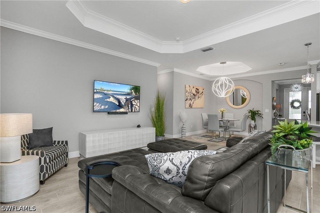 Welcome to 14985 Blue Bay Circle, this RARELY AVAILABLE VICTORIA floorpan, TURNKEY furnished single-family pool home in Vista WildBlue, located in the Fort Myers and Estero area of Southwest Florida. This 2 bedroom plus den residence offers nearly 1,900 square feet of living space (2,343 total) and is ideally positioned on a quiet, private preserve homesite with coveted western exposure, delivering breathtaking sunset views. This Vista WildBlue home showcases a light-filled open concept design where the great room, kitchen, and dining area flow seamlessly together and extend to the OVERSIZED outdoor living space. Impact-resistant sliding glass doors open to your covered lanai, creating the indoor-outdoor lifestyle buyers are searching for. The outdoor space features a custom pool and spa with sun shelf, spillover spa, natural gas heater, and panoramic screen enclosure that frames peaceful preserve views with no rooftops in sight. A convenient pool bath enhances functionality, making this an ideal home for entertaining or relaxing. The kitchen is designed to impress, with an oversized island, natural gas cooktop, pantry, and upgraded cabinetry with pull-out drawers. The owner’s suite is a private retreat with lanai access, dual closets, and a spacious bath with dual vanities, soaking tub, walk-in shower, and private water closet. The split-bedroom layout offers privacy for guests, with a guest bedroom and full bath on the opposite side of the home. The den with French door entry is ideal for a home office or more space for guests. Additional features include tile flooring throughout, crown molding, tray ceilings, designer lighting, tankless water heater, whole-home surge protection, smart home features, epoxy garage flooring, and a side-entry garage. Offered turnkey furnished, this home is move-in ready. Located within Vista WildBlue, residents enjoy resort-style amenities including a resort-style pool, lap pool, fitness center, indoor and outdoor dining, pickleball, tennis, bocce, basketball, and a lakeside beach. Boating enthusiasts appreciate access to freshwater lakes with community docks available for lease. Golfers have plenty of nearby options including potential Grandezza membership and a number of public golf courses. This Vista WildBlue home offers a rare combination of privacy, preserve views, sunset exposure, and resort-style living in one of the most desirable communities in Fort Myers and Estero.