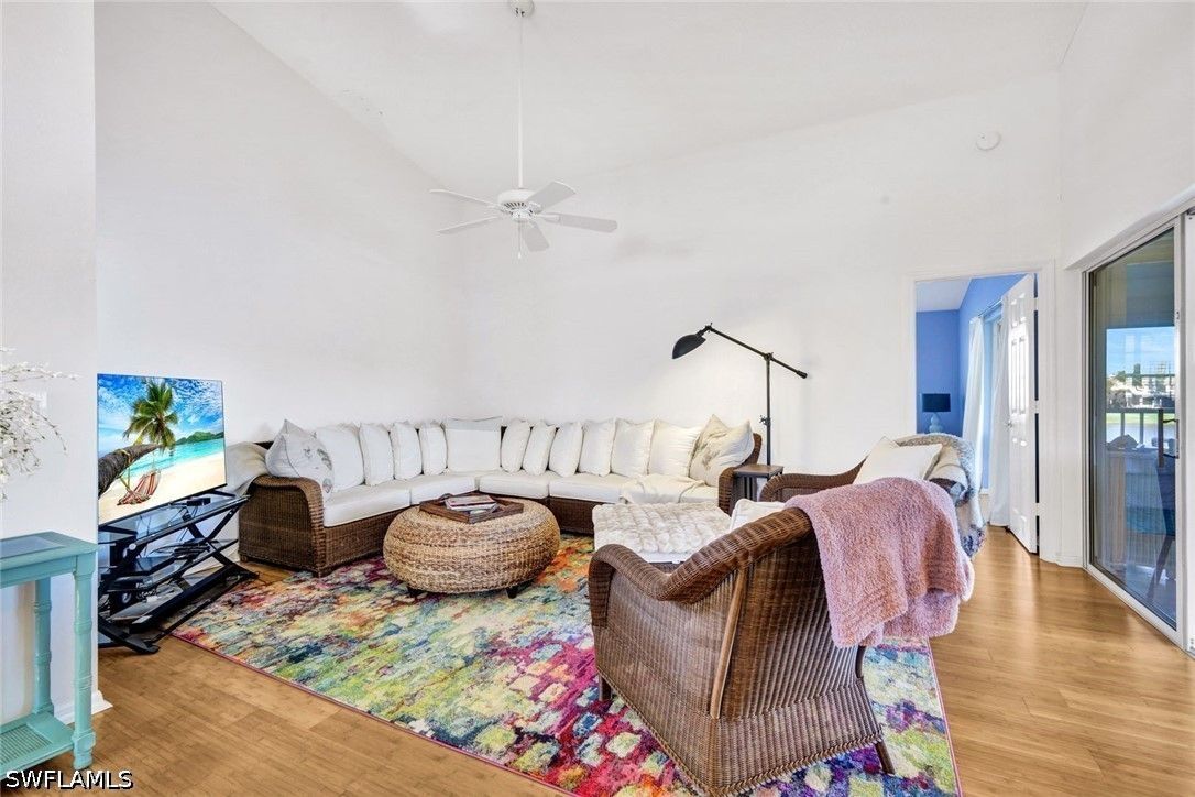Located within the gated community of Gulf Harbour Yacht & Country Club, this furnished 2nd-floor corner condo offers peaceful water and golf course views from the large screened lanai, where pelicans and other native birds are often seen. The 3-bedroom, 2-bath residence features bamboo and tile flooring, vaulted ceilings in the living room, dining area, kitchen, and primary bedroom, and an updated kitchen with quartz countertops, backsplash, and newer appliances. The tiled lanai with acrylic sliders adds comfortable year-round living space. Situated on a quiet cul-de-sac in the Rivers Edge neighborhood, with reserved covered parking just outside the door and the Rivers Edge community pool and mailboxes a short walk away or enjoy the private Gulf Harbour Eagle Perch Island. Surrounded by shopping and restaurants. Additional amenities of golf, tennis, fitness center and two restaurants require an optional membership, now available at a surprisingly low fee. Conveniently located near beaches, boating, Red Sox and Twins baseball stadiums, restaurants, grocery stores, and everyday services. Easy to get to SWFL International or Punta Gorda Airports. Optional golf, sport, or social memberships at Gulf Harbour Yacht & Country Club are available through a separate application and approval process. Seller financing available.