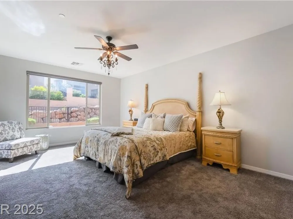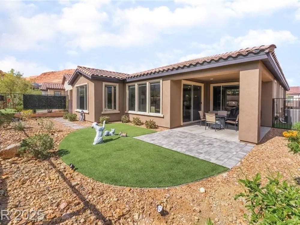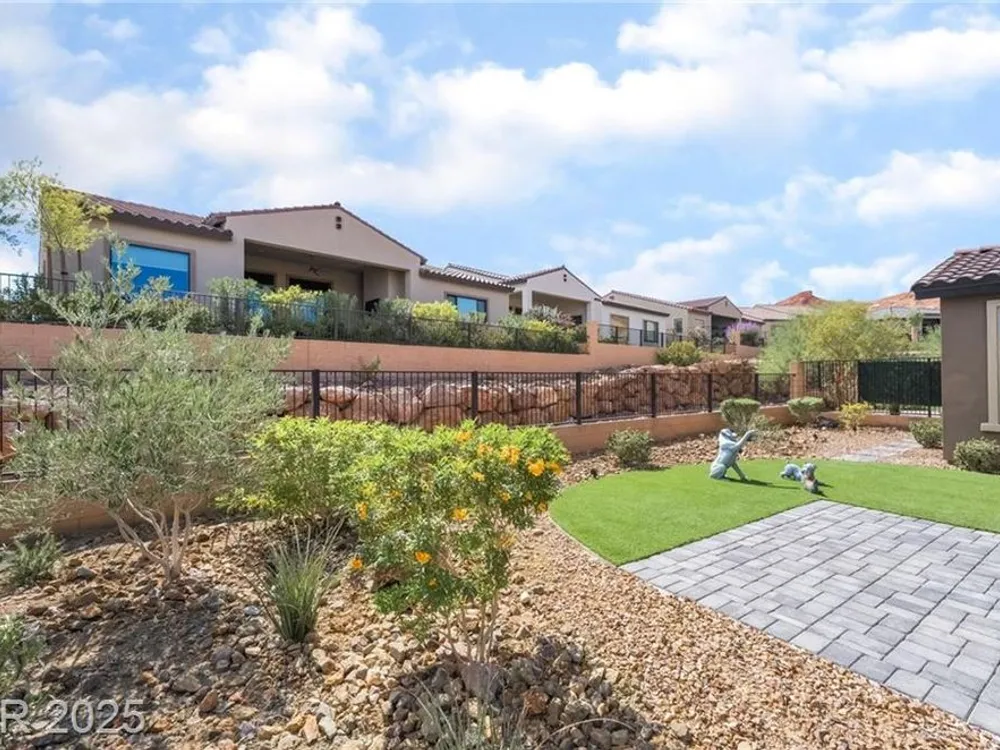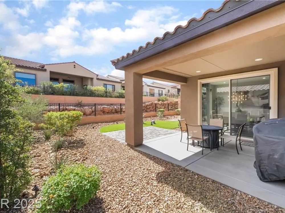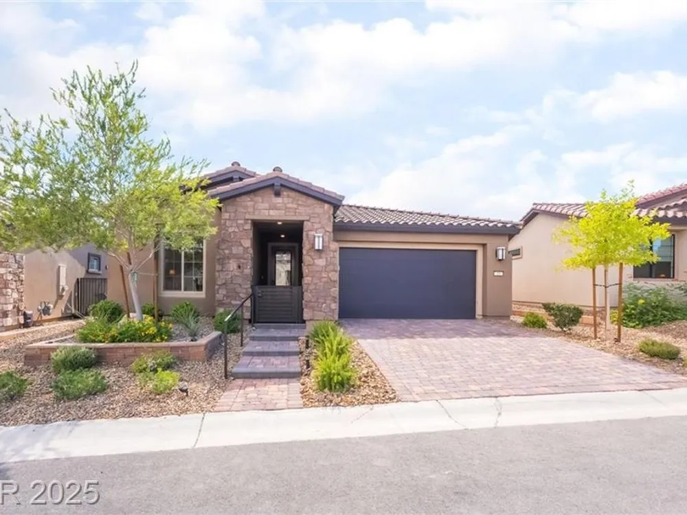 In a gated 55+ community in Lake Las Vegas. Inviting you to this attractive stone façade and meticulously landscaped front yard and backyard welcome you as the new owner. Features 2 spacious bedrooms and 2.5 bathrooms. You are greeted by a bright and airy living area, drawing in natural light through large windows. The kitchen, equipped with upgraded appliances and an impressive island, serves as the social hub. Adjacent to the kitchen, the dining area provides a perfect setting for enjoying meals and hosting gatherings. The bedrooms offer serene retreats, while the bathrooms feature contemporary fixtures and finishes, enhancing the overall aesthetic of comfort and luxury. This community offers a range of amenities that promote an active and engaged lifestyle. From beautifully maintained outdoor spaces to community social activities, opportunities for recreation and connection abound.