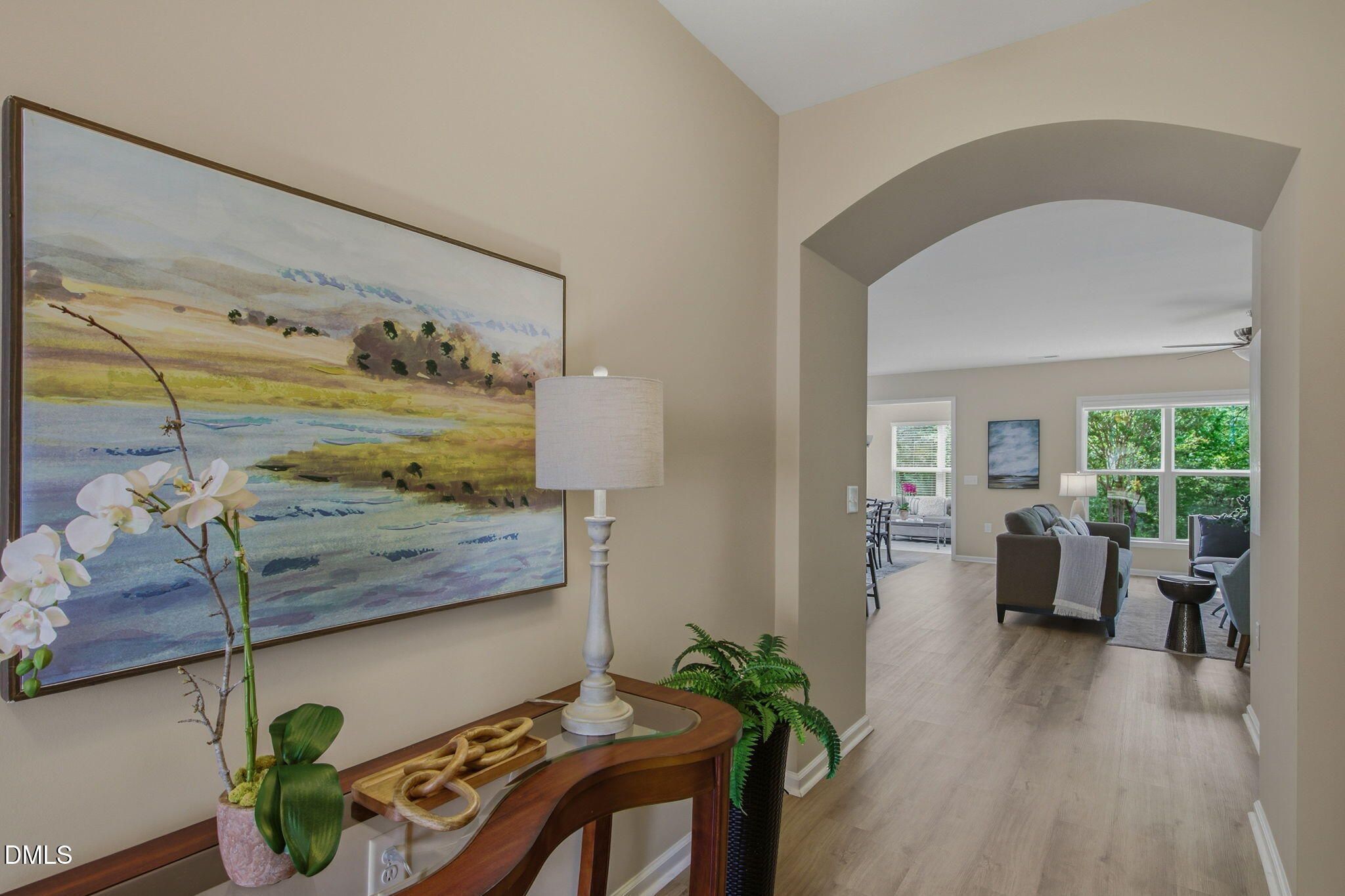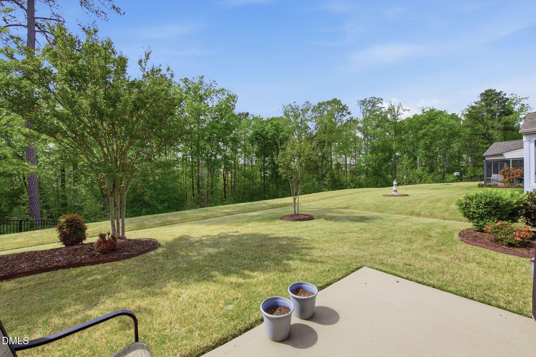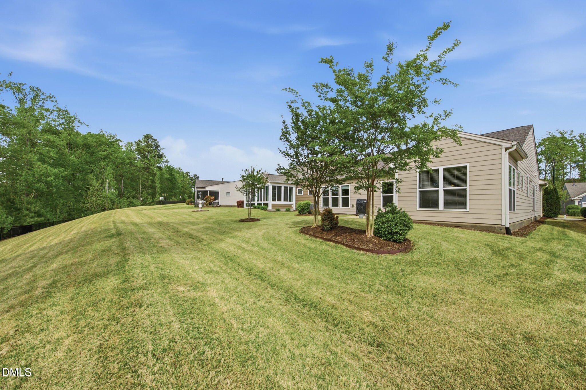 Located in the highly desirable Del Webb Carolina Arbors 55+ community, 15 Currituck Lane offers easy single-level living with thoughtful upgrades throughout. This 3-bedroom, 2-bath home features over 1,800 square feet, all on one level, with a layout designed for both comfort and everyday ease. The open living spaces are anchored by a well-appointed kitchen with stainless steel appliances, granite countertops, cherry cabinetry, and a raised dishwasher for added convenience. LVP flooring adds a modern, low-maintenance touch, while the heated and cooled sunroom extends the living space and overlooks a private, wooded view. The primary suite includes an oversized zero-entry shower with grab bars and bench sitting, supporting long-term accessibility without sacrificing style. Additional highlights include a gas hookup for grilling, walk-up attic storage, and a 2-car garage. Enjoy resort-style living with access to Carolina Arbors' extensive amenities, including pools, fitness center, pickleball, tennis, walking trails, and a full calendar of social activities--all within a vibrant, active adult community.