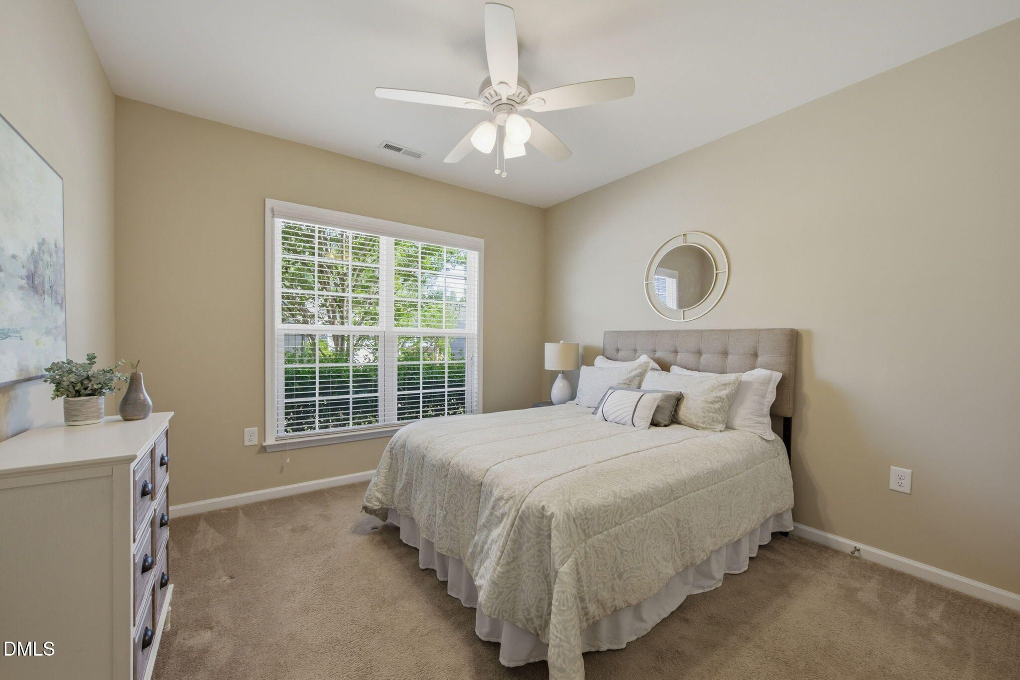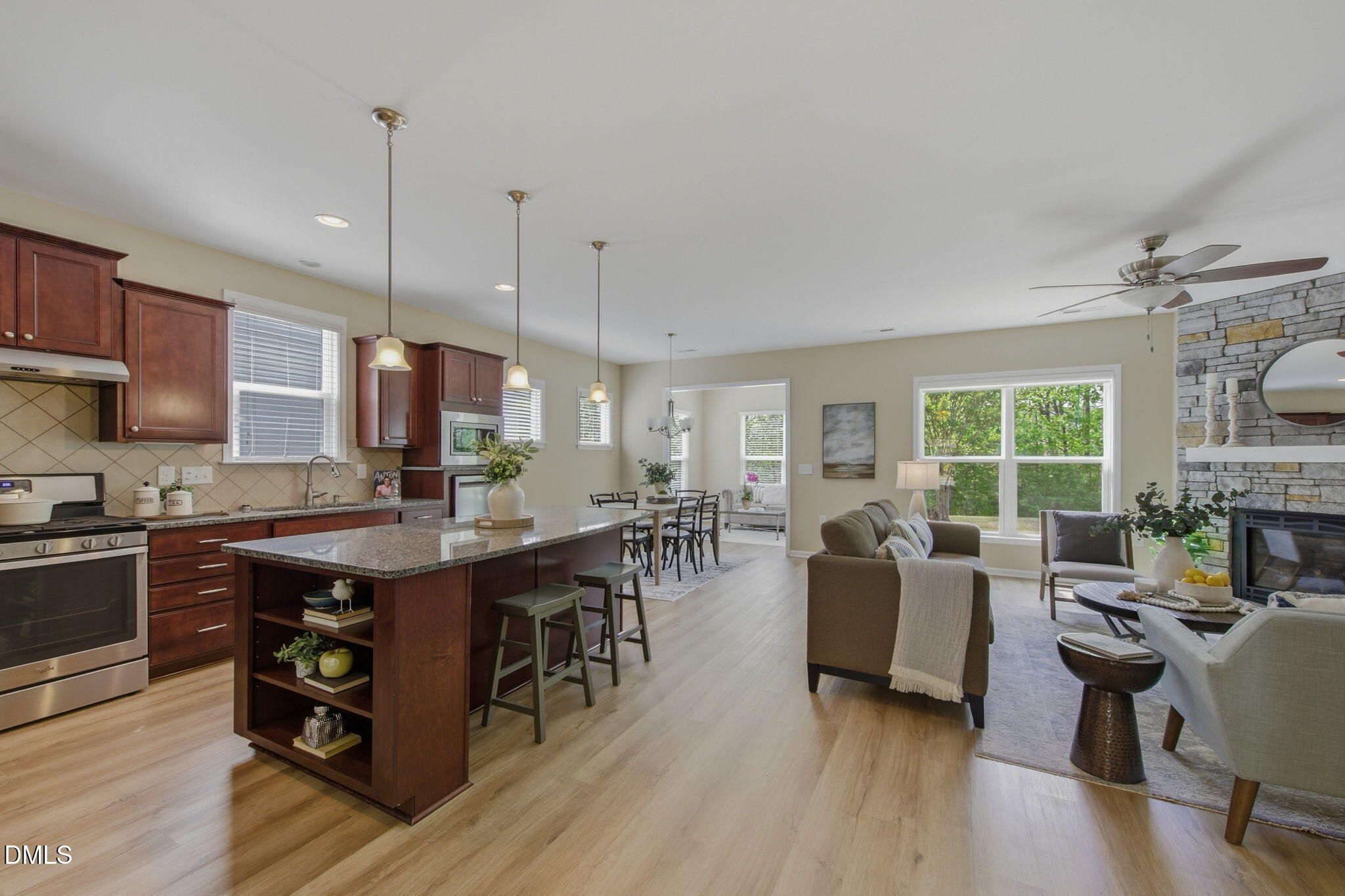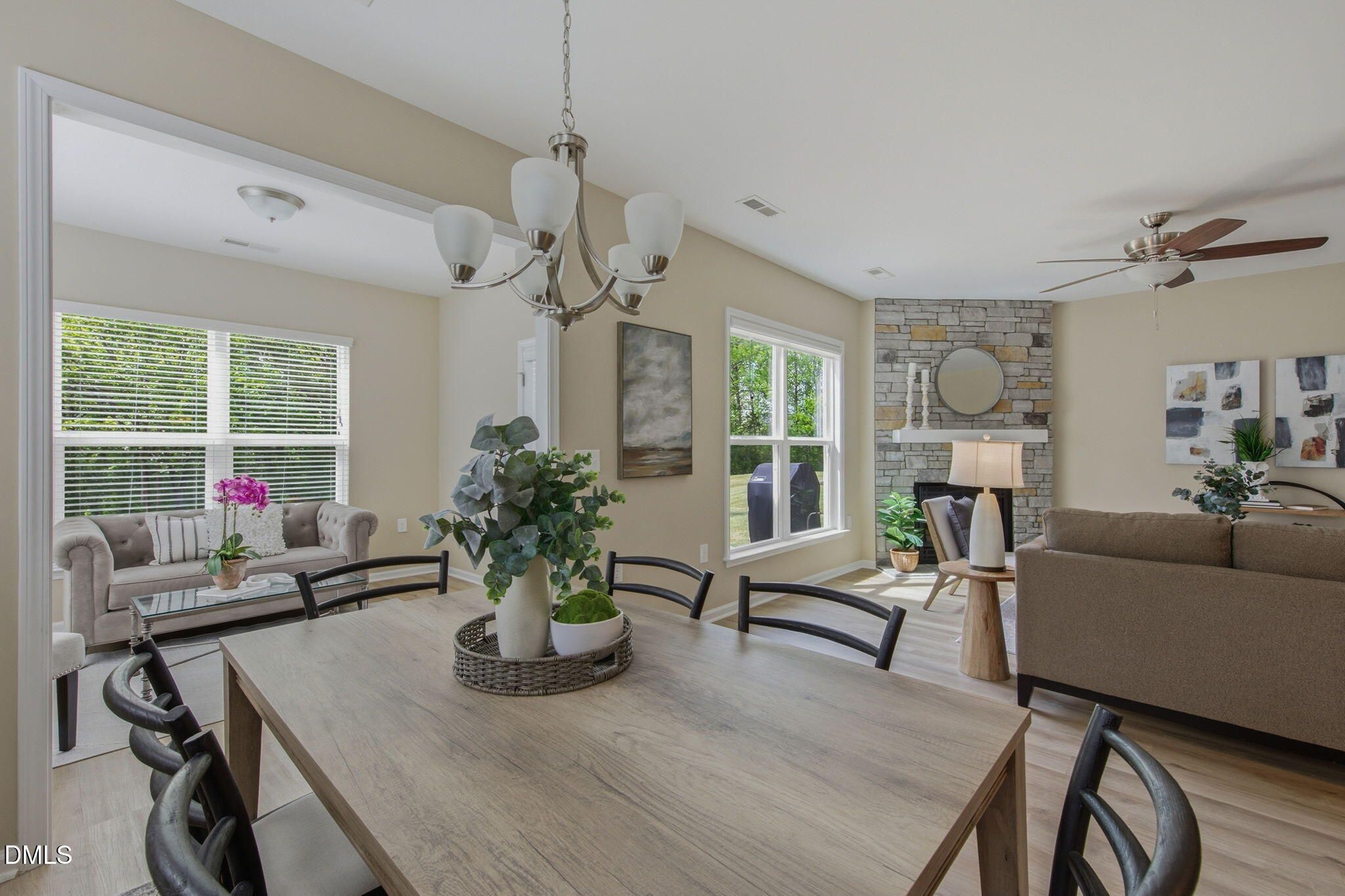 Located in the highly desirable Del Webb Carolina Arbors 55+ community, 15 Currituck Lane offers easy single-level living with thoughtful upgrades throughout. This 3-bedroom, 2-bath home features over 1,800 square feet, all on one level, with a layout designed for both comfort and everyday ease. The open living spaces are anchored by a well-appointed kitchen with stainless steel appliances, granite countertops, cherry cabinetry, and a raised dishwasher for added convenience. LVP flooring adds a modern, low-maintenance touch, while the heated and cooled sunroom extends the living space and overlooks a private, wooded view. The primary suite includes an oversized zero-entry shower with grab bars and bench sitting, supporting long-term accessibility without sacrificing style. Additional highlights include a gas hookup for grilling, walk-up attic storage, and a 2-car garage. Enjoy resort-style living with access to Carolina Arbors' extensive amenities, including pools, fitness center, pickleball, tennis, walking trails, and a full calendar of social activities--all within a vibrant, active adult community.