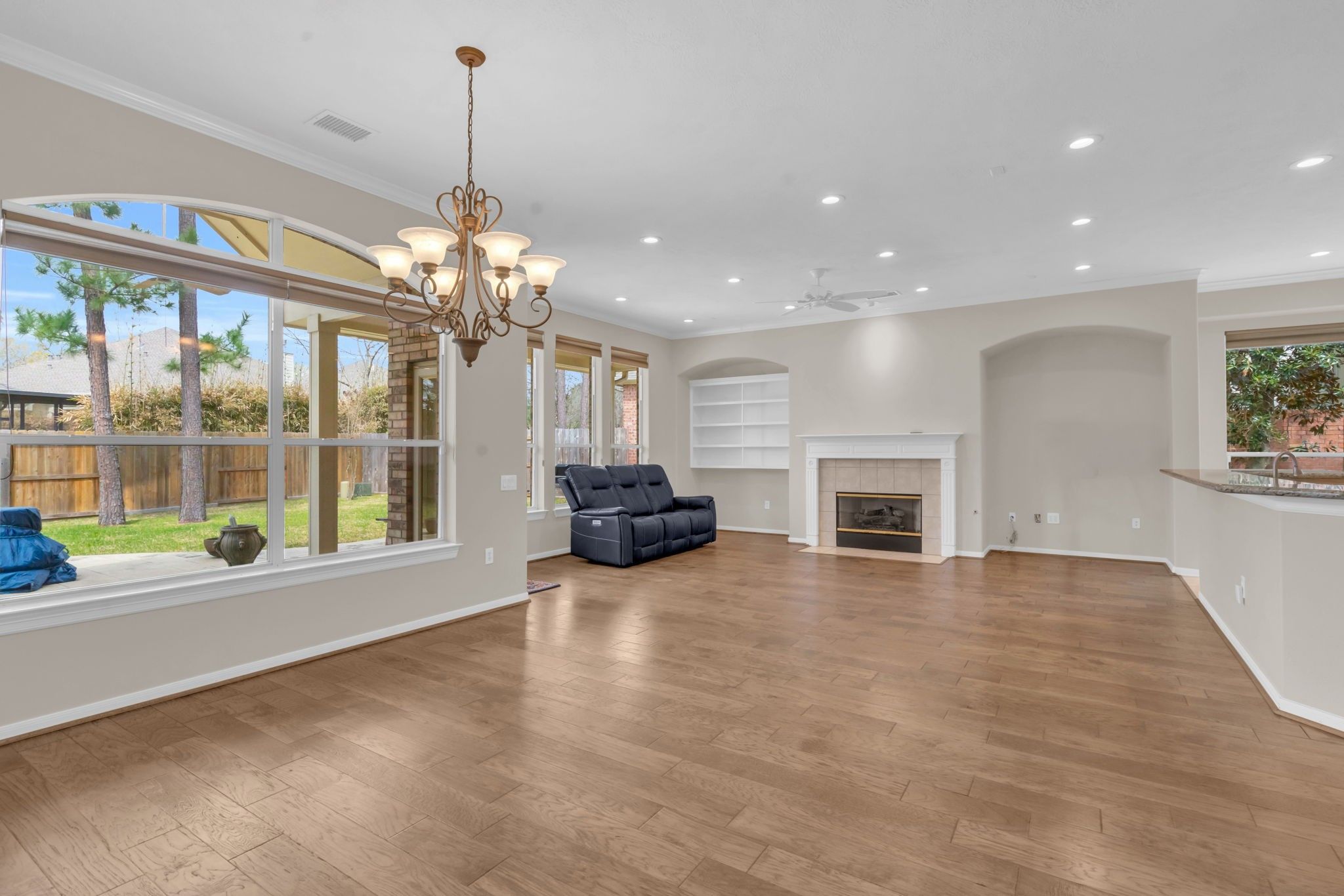 Here is a wonderful opportunity to own a beautiful home situated on a premium corner lot in the sought-after 55+ community of Windsor Lakes. This popular open floor plan features abundant natural light, neutral finishes, and a spacious kitchen with granite countertops that flows seamlessly into the breakfast area and family room—ideal for everyday living and entertaining. The primary suite offers a large bedroom, well-appointed bath, and generous closet space. Recent updates include a new HVAC system and new kitchen appliances. The refrigerator, washer, and dryer are included. A whole-house generator, approximately six years old and regularly maintained, provides added peace of mind. Enjoy slate accents at the front porch and covered patio, custom built-ins, added storage, and mature landscaping. Community amenities include a clubhouse, fitness center, pool, and walking trails.