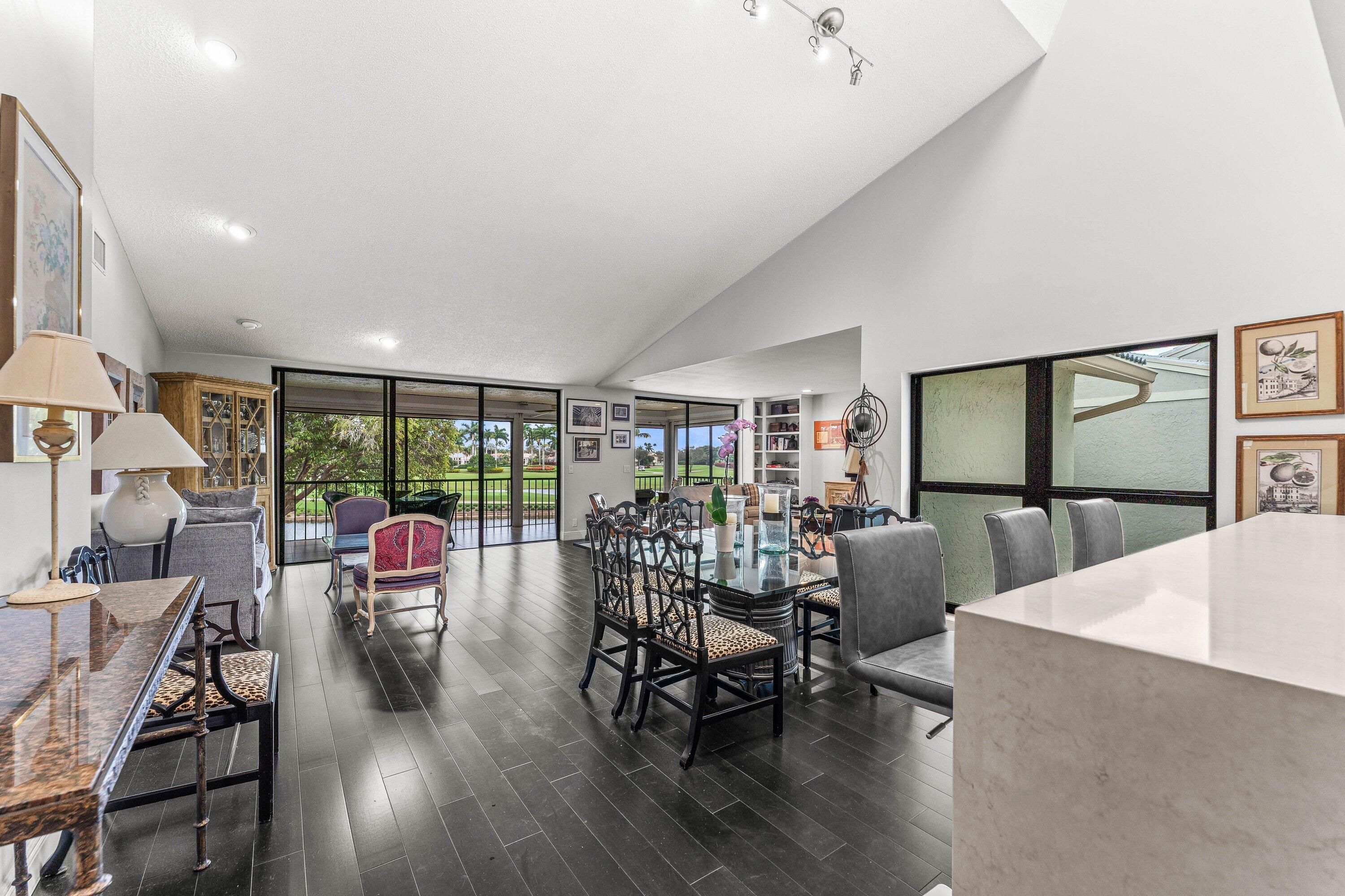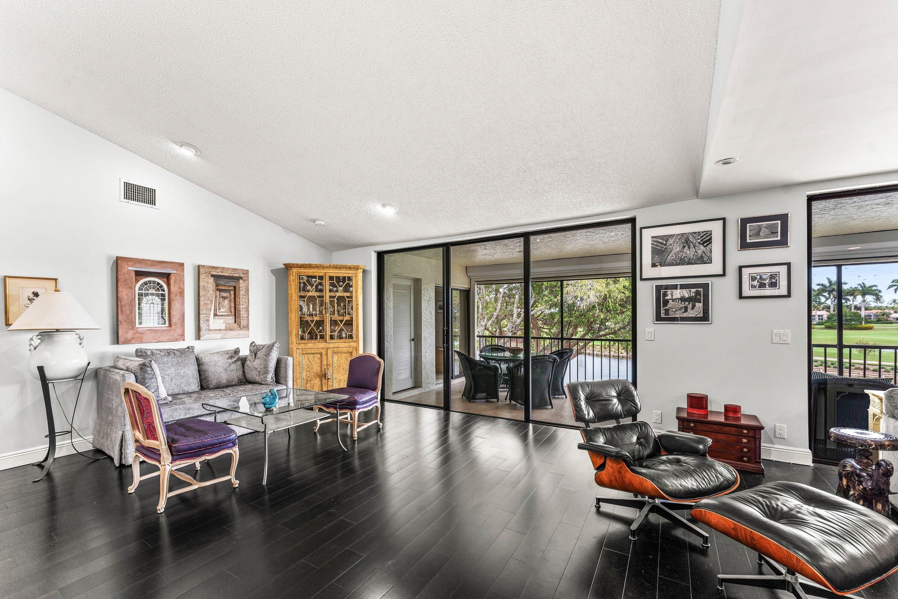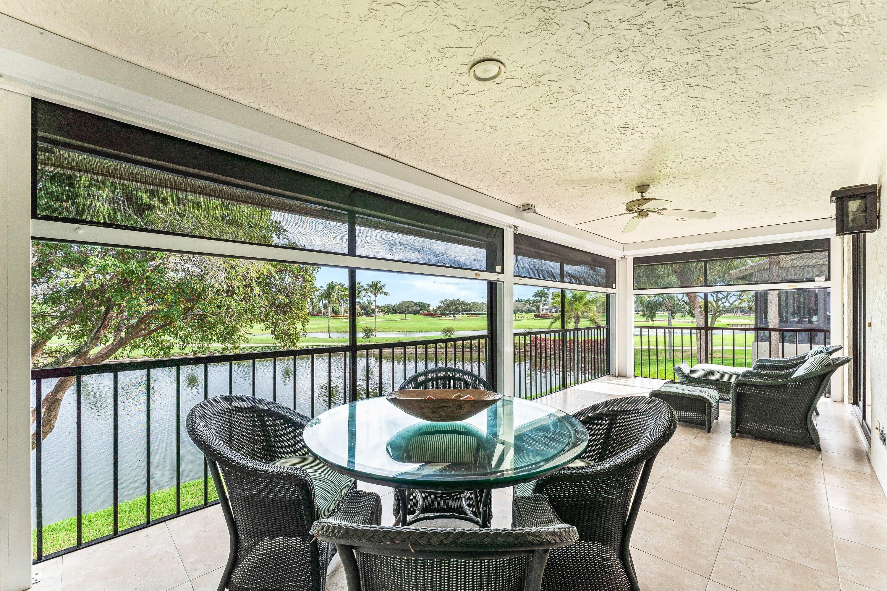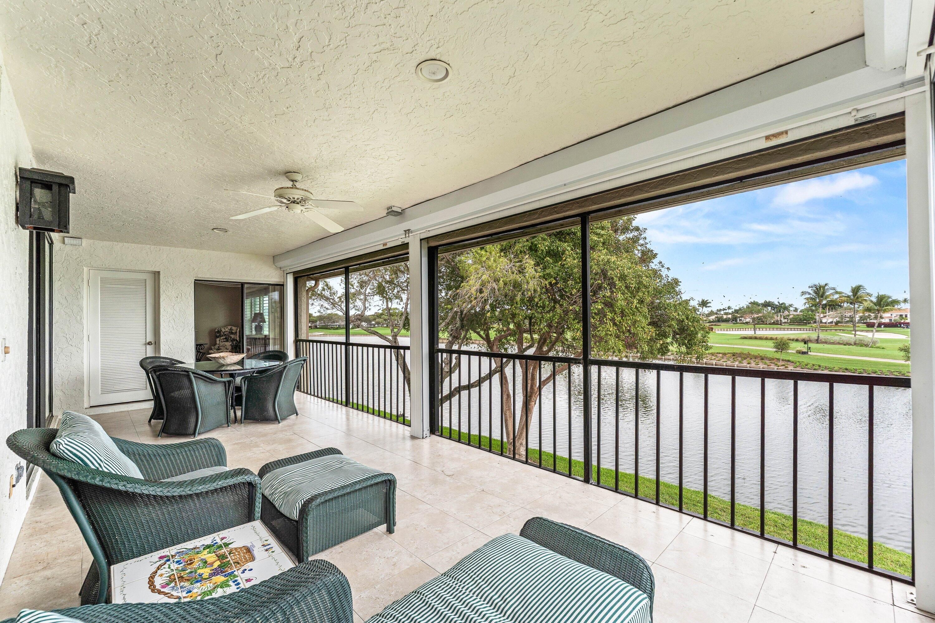 Enter and view this amazing renovated expansive upper floor unit with breathtaking views of newly renovated east course and vast lake views. High end appliances in open floor plan with bamboo flooring. New impact windows throughout, Storm Smarts on screened lanai and updated bathrooms. An unusual home with newer AC and shared lift. Hunters Run has everything to make this country club living at its' best.
