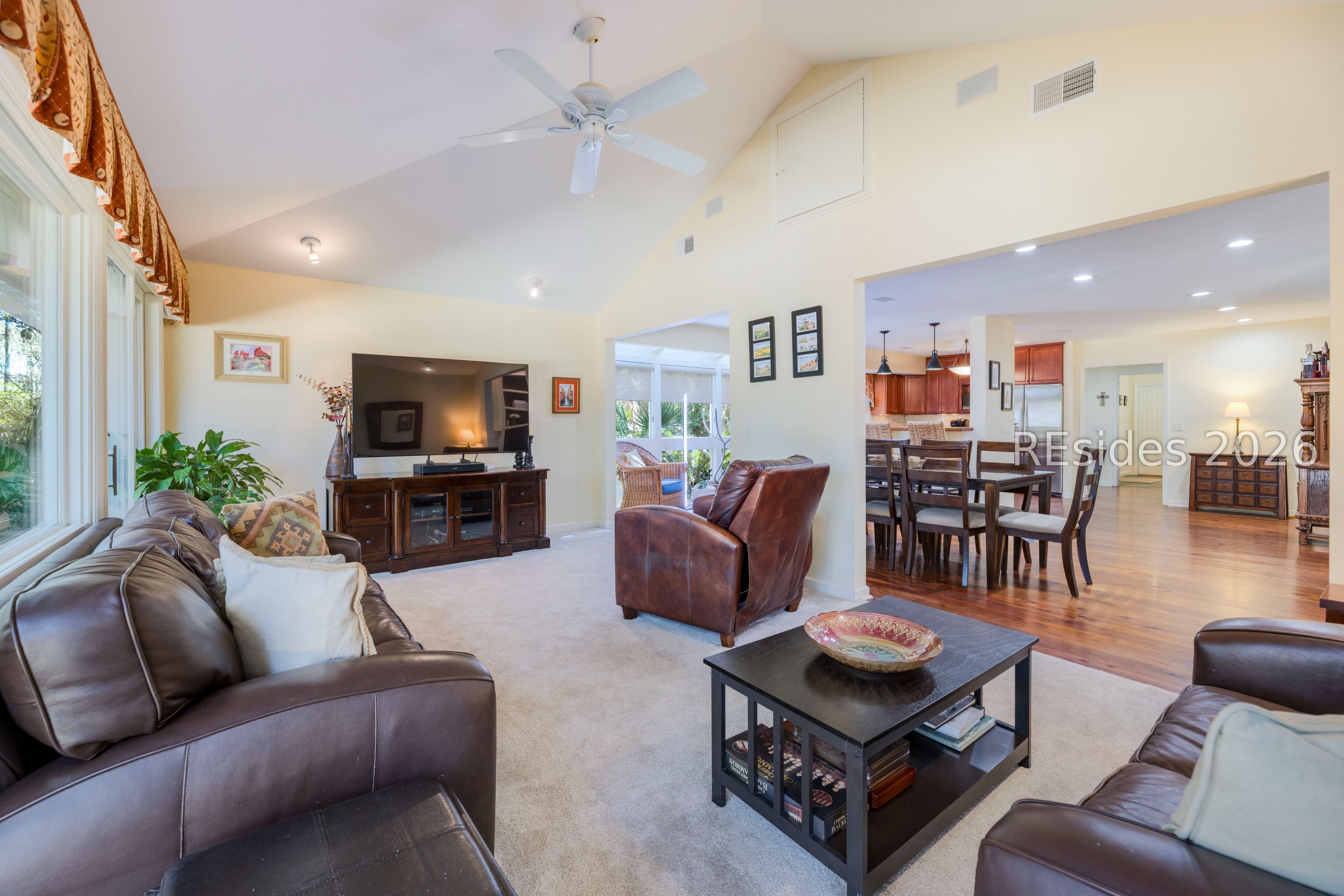 Situated on a private corner homesite with no neighbors on either side, this 3-bedroom, 2.5-bath home is located along the 12th fairway of Oyster Reef Golf Club on Hilton Head Island. The open floor plan features Heart Pine floors, a vaulted great room with wood-burning fireplace, granite countertops, slate floors, a wet bar, and flexible bonus space with storage, inc. a service area ideal for hobbies or entertaining support. Recent updates incl. a new roof and carpet (2025), and newer HVAC (2021), and irrigation. An outdoor shower is ideal after a beach day at nearby Dolphin Head Beach, while ext. storage is great for beach and golf gear. Mature landscaping provides year-round blooms, and the oversized two-car garage offers add'l storage above. Enjoy world class amenities with a low POA fee.
