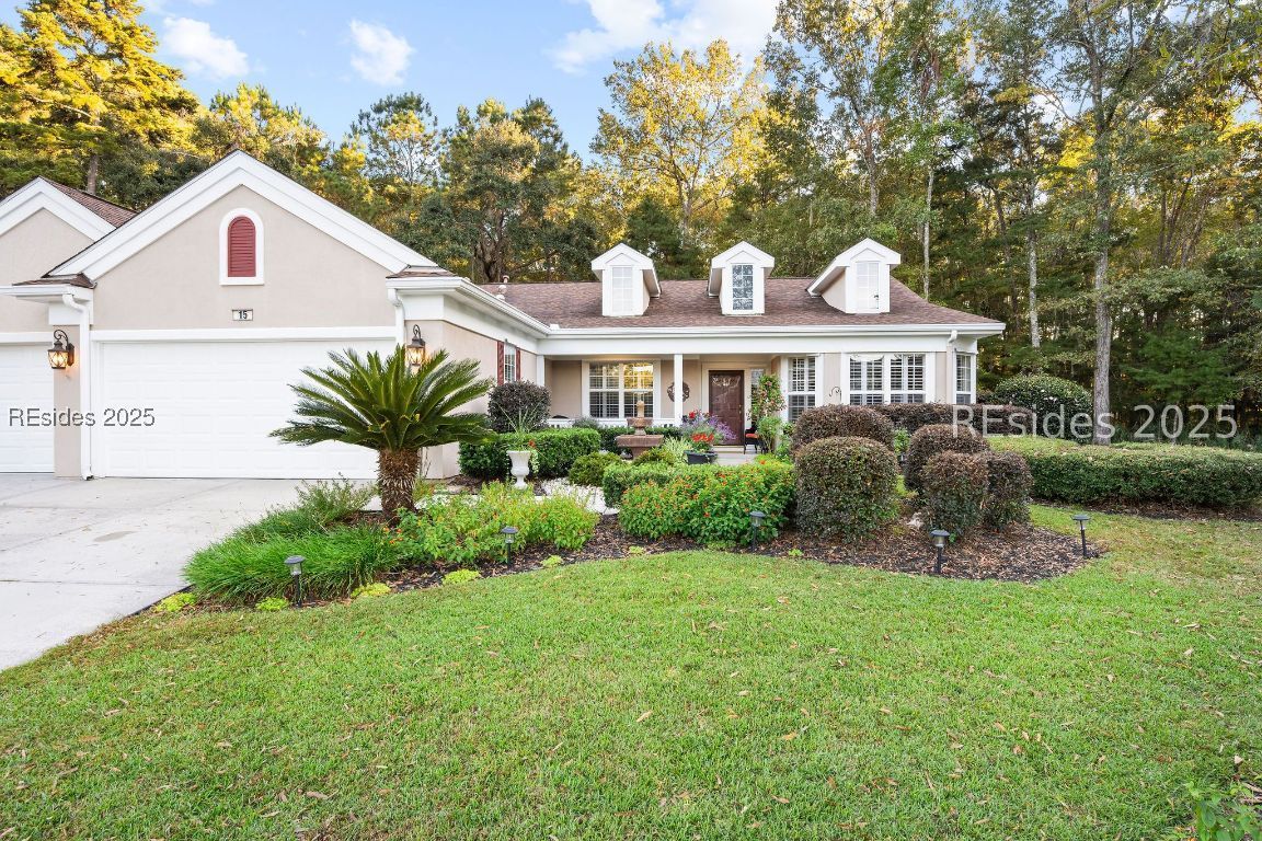 Located on a quiet cul-de-sac in Sun City Hilton Head, this beautifully maintained Lilac model features 2 bedrooms, 2 bathrooms, and a versatile office/den. The warm interior showcases cherry wood flooring and a kitchen appointed with rich cherry cabinetry, creating an inviting Lowcountry elegance throughout. Enjoy a peaceful wooded backdrop, tile accents, and soft carpet in the primary suite for added comfort. Additional highlights include thoughtful landscaping, a tankless water heater, and an oversized 2.5-car garage with ample space for storage or a golf cart. Embrace the vibrant Sun City lifestyle with world-class amenities, from golf and fitness centers to resort-style pools, pickleball, and an endless array of active social clubs and events designed to keep every day engaging.