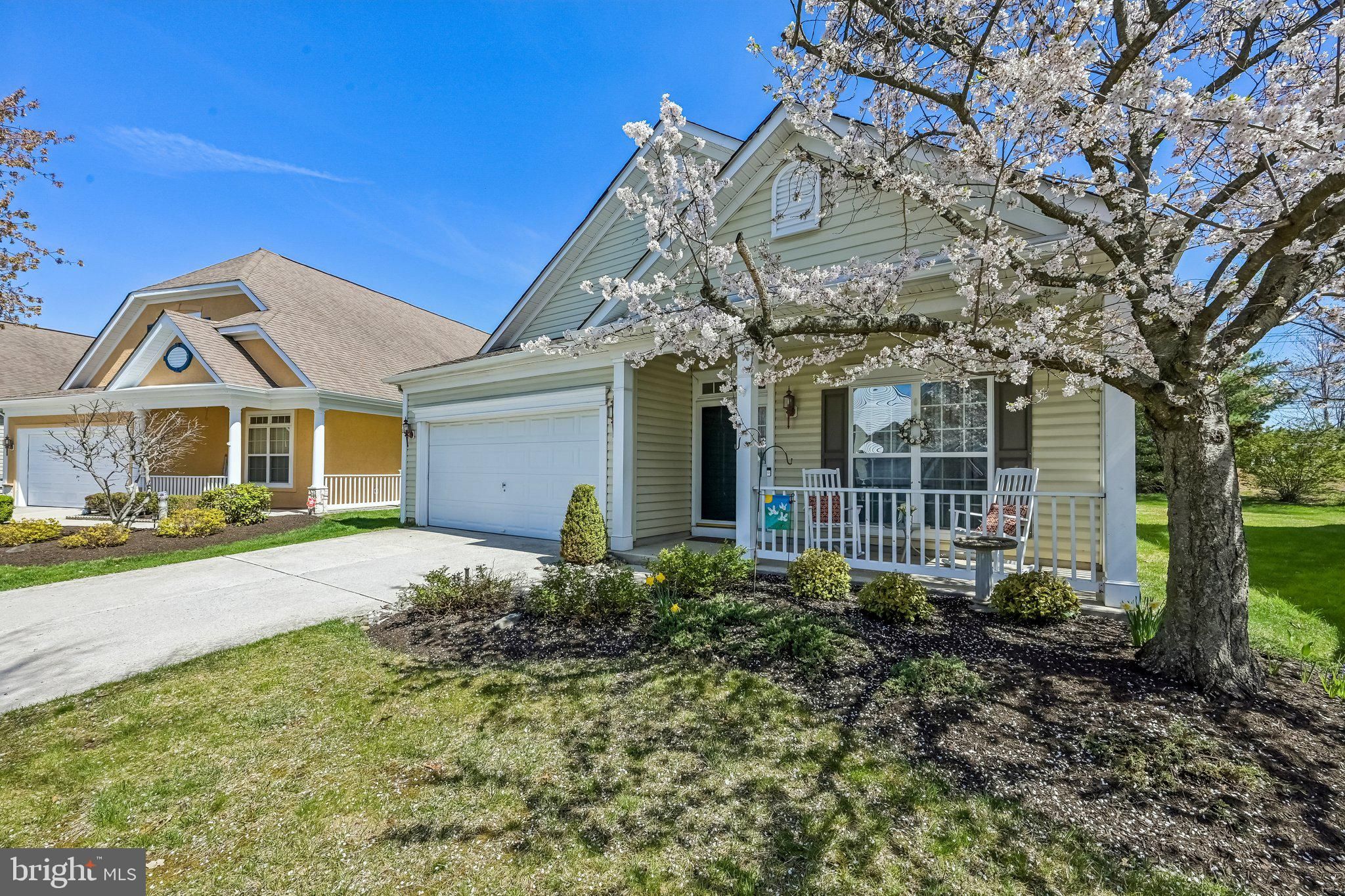 Enjoy single floor living in this fantastic 2 Bedroom, 2 Bath Cape May II model in the highly sought after adult community of Newtons Landing! Charming covered Front Porch leads to an inviting Foyer entry with gleaming hardwood floors plus custom moldings and trim work. Spacious formal Dining Room, perfect for entertaining, leads to the centrally located eat-in Kitchen offering an abundance of cabinetry with pull out drawers, gray tile backsplash, recessed lighting, pantry closet, plantation shutters and full appliance package. Kitchen overlooks the bright and sunny Great Room with cathedral ceiling, wall of windows, gas corner fireplace with mantel and ceiling fan. Sun drenched Florida room with ceiling fan, perfect as a den or home office, leads to the back yard and patio, backing to trees. The generous Primary suite provides a ceiling fan, massive walk-in closet and full bath offering dual vanities, soaking tub, plantation shutters, stall shower, ceramic tile flooring and separate water closet. A very large double door linen closet is conveniently located directly outside the Primary Bedroom. The second Bedroom also offers a large double closet and direct access to a second Full Bath with tub offering comfortable accommodations for guests. A laundry room with shelving and utility sink plus a coat closet, 2 car garage with opener and pull down attic completes the single level. Wonderful expansive floor plan, well maintained by original owner. Additional highlights include 9 foot ceilings, neutral decor, lawn irrigation system plus a one year home warranty for buyer's peace of mind. Fabulous community to support a social and healthy lifestyle with active clubhouse plus outdoor pool, hot tub, tennis/pickleball court, community garden and walking/bike paths, all overlooking the Rancocas Creek. Lawn maintenance and snow removal for carefree living. A wonderful opportunity to make this your dream home!!
