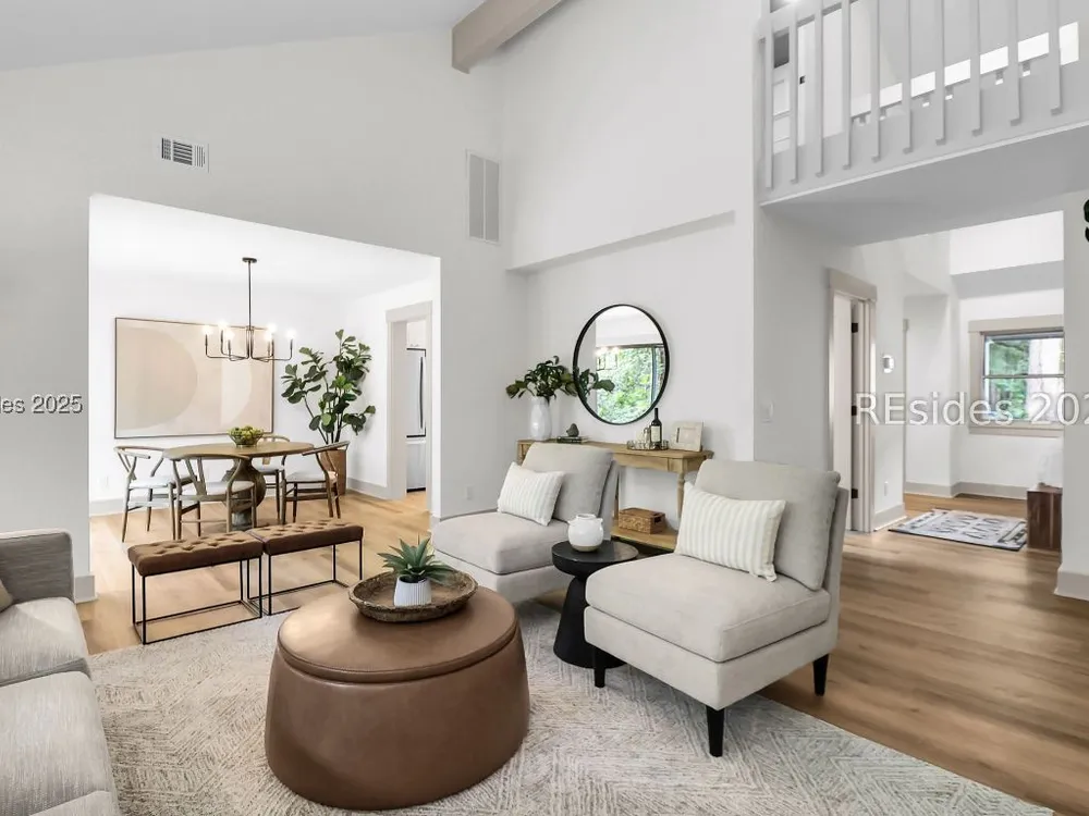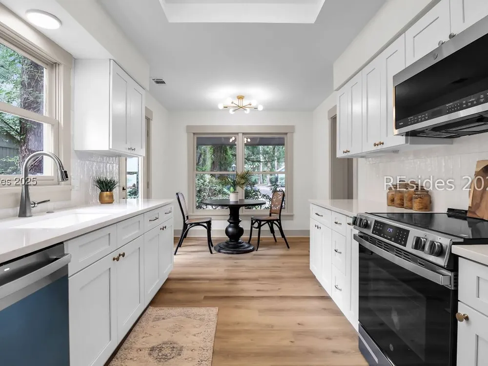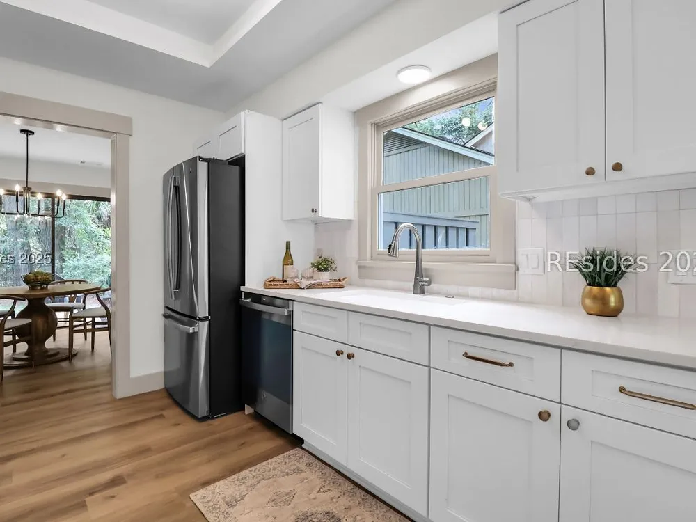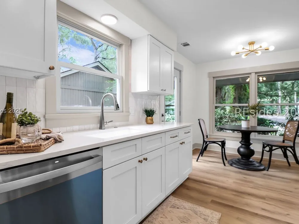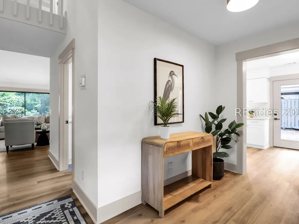Tucked away in the desirable Crooked Pond neighborhood, this beautifully renovated home offers style, comfort, and privacy in one of Hilton Heads most sought after communities. Step inside to a completely redone interior featuring fresh paint, all new LVP flooring, and upgraded doors and trim. The stunning kitchen boasts brand new Matrix cabinetry, Lamataj quartz countertops, an Ivy Hill Kingston White tile backsplash, new appliances, and all new lighting fixtures throughout. The home offers a thoughtful layout with the primary suite and a guest bedroom on the main level. The primary bath is a showstopper, with a new double sink vanity and a walk in tile shower. The guest bath features a new vanity and a tub with a custom tile surround. Upstairs, you will find a spacious third bedroom and a third full bath with a walk in tile shower, perfect for guests or family. Additional highlights include a dedicated laundry room and a location that ensures privacy, with community owned green space on one side and behind the home. Residents enjoy access to the Crooked Pond neighborhood pool and pickleball court, along with the larger Spring Lake Recreation area with its big pool and additional amenities. This move in ready home combines high end finishes with an exceptional Hilton Head Plantation location, just minutes from everything the island has to offer. It would make an ideal primary residence or a wonderful second home getaway.