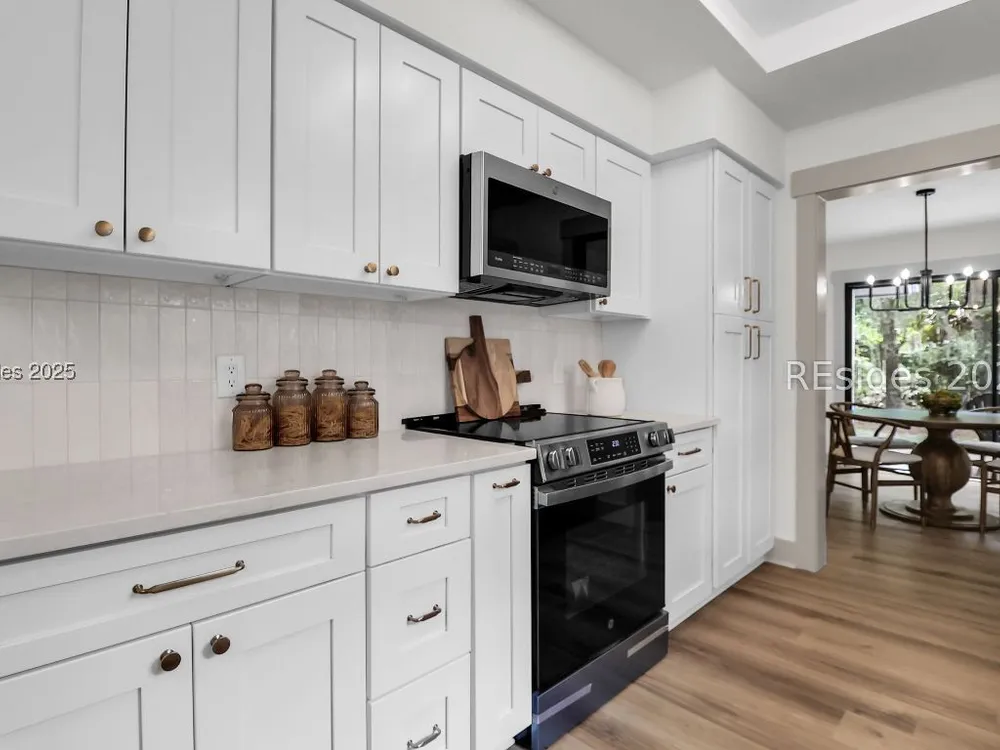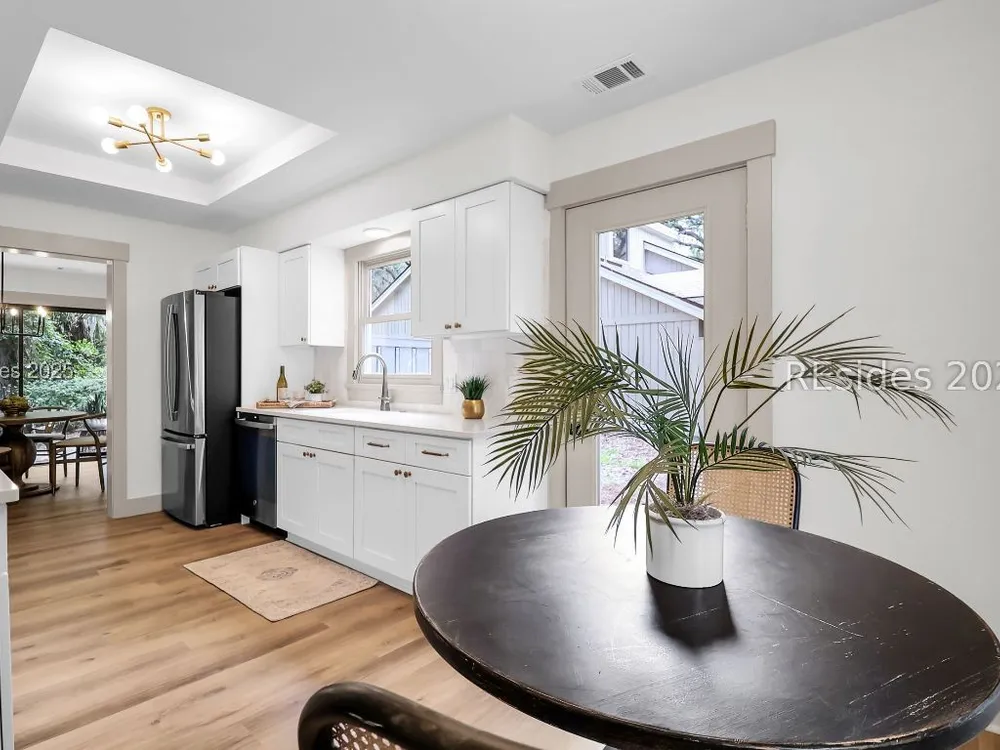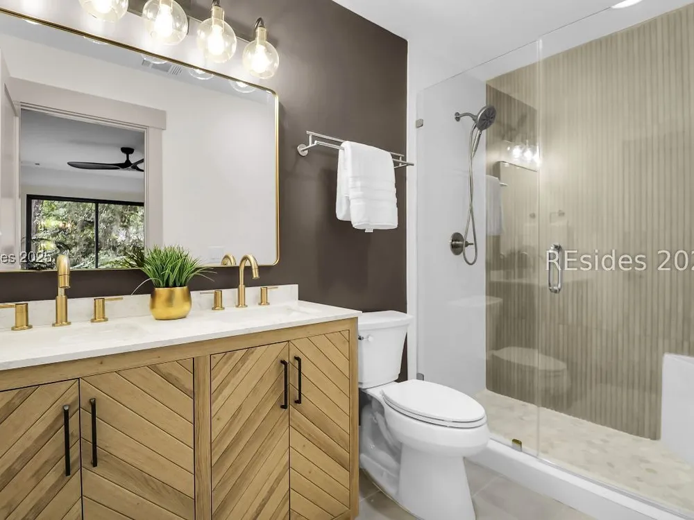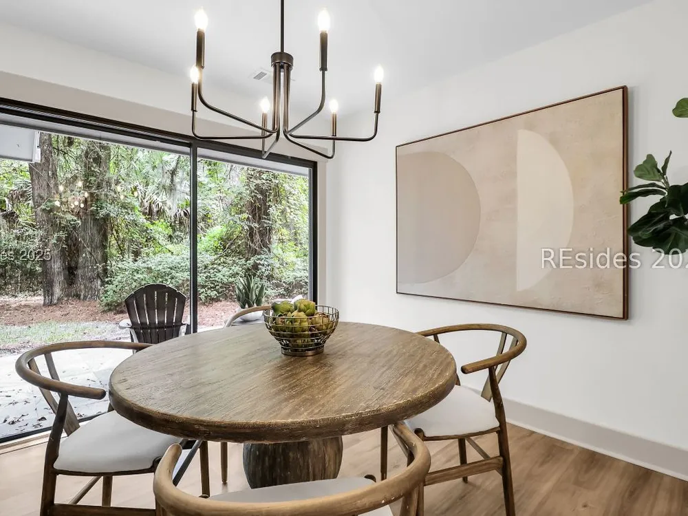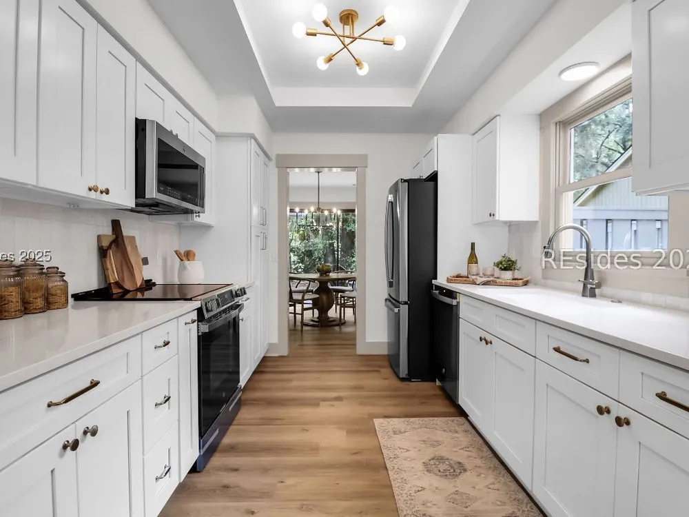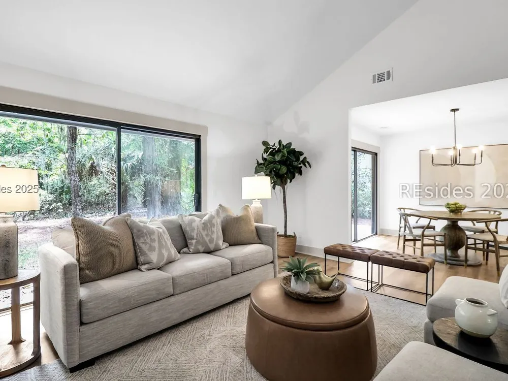 Tucked away in the desirable Crooked Pond neighborhood, this beautifully renovated home offers style, comfort, and privacy in one of Hilton Heads most sought after communities. Step inside to a completely redone interior featuring fresh paint, all new LVP flooring, and upgraded doors and trim. The stunning kitchen boasts brand new Matrix cabinetry, Lamataj quartz countertops, an Ivy Hill Kingston White tile backsplash, new appliances, and all new lighting fixtures throughout. The home offers a thoughtful layout with the primary suite and a guest bedroom on the main level. The primary bath is a showstopper, with a new double sink vanity and a walk in tile shower. The guest bath features a new vanity and a tub with a custom tile surround. Upstairs, you will find a spacious third bedroom and a third full bath with a walk in tile shower, perfect for guests or family. Additional highlights include a dedicated laundry room and a location that ensures privacy, with community owned green space on one side and behind the home. Residents enjoy access to the Crooked Pond neighborhood pool and pickleball court, along with the larger Spring Lake Recreation area with its big pool and additional amenities. This move in ready home combines high end finishes with an exceptional Hilton Head Plantation location, just minutes from everything the island has to offer. It would make an ideal primary residence or a wonderful second home getaway.