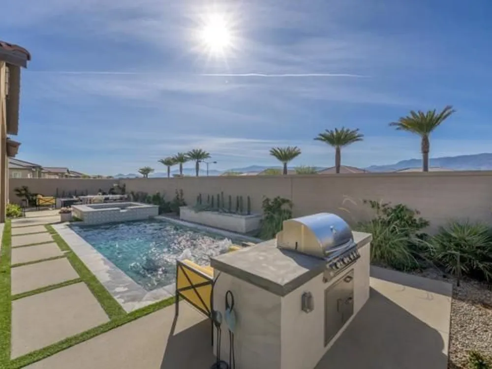 Experience luxury living in this stunning and sought-after Journey model floor plan featuring 2 bedrooms and a den. This nearly-new home combines modern elegance with ultimate comfort. A cascading wall of glass in the living room showcases the expansive mountain views and floods the space with natural light, complimented by 12' ceilings. Designer touches include a gorgeous powder bath, reimagined dining room, custom wallpaper, backsplash, fixtures and lighting, to name but a few! The open concept floor plan seamlessly connects the living and dining rooms and kitchen making it ideal for entertaining or everyday enjoyment. Step outside to your private paradise and be wowed by the phenomenal mountain views, picture perfect sunsets, sparking pool and spa, built-in barbecue and multiple seating areas. Enjoy outdoor living with minimal upkeep, thanks to the home's low maintenance design. Eco-conscious buyers will appreciate the OWNED SOLAR system and tankless water heater that keep energy costs low. Epoxy-coated garage floor, custom built-in primary closet and premium finishes all add to this home's amazing appeal!This residence boasts over $200,000 in upgrades!! Come enjoy the Del Webb active lifestyle that features tennis, pickle ball, swimming, fitness center, putting green and clubhouse which plays host to special events and activities year-round. Schedule your private showing today!!
