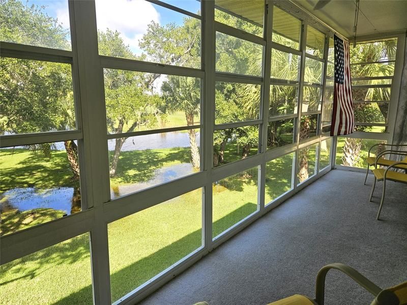 Wonderful, tree lined water & golf views from the glass enclosed lanai. This open and airy 2 bedroom 2 bath 2nd floor "A" plan comes partially furnished. Interior hurricane impact windows. This unit has a "barely lived in feel." Both baths have been updated. Vista Gardens is a very active, well maintained, well run 55+ community. While visiting the neighborhood, take a look at the amenities which include a large pool & spa, tennis, billiards, library, fitness center, craft room and game room and more. Mere minutes to toes in the sand, shopping, dining, cultural arts, healthcare and more. Room sizes are approximate. Buyer must verify.