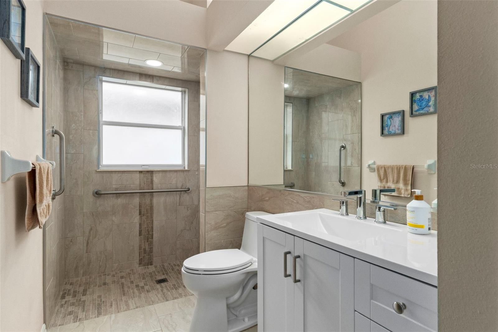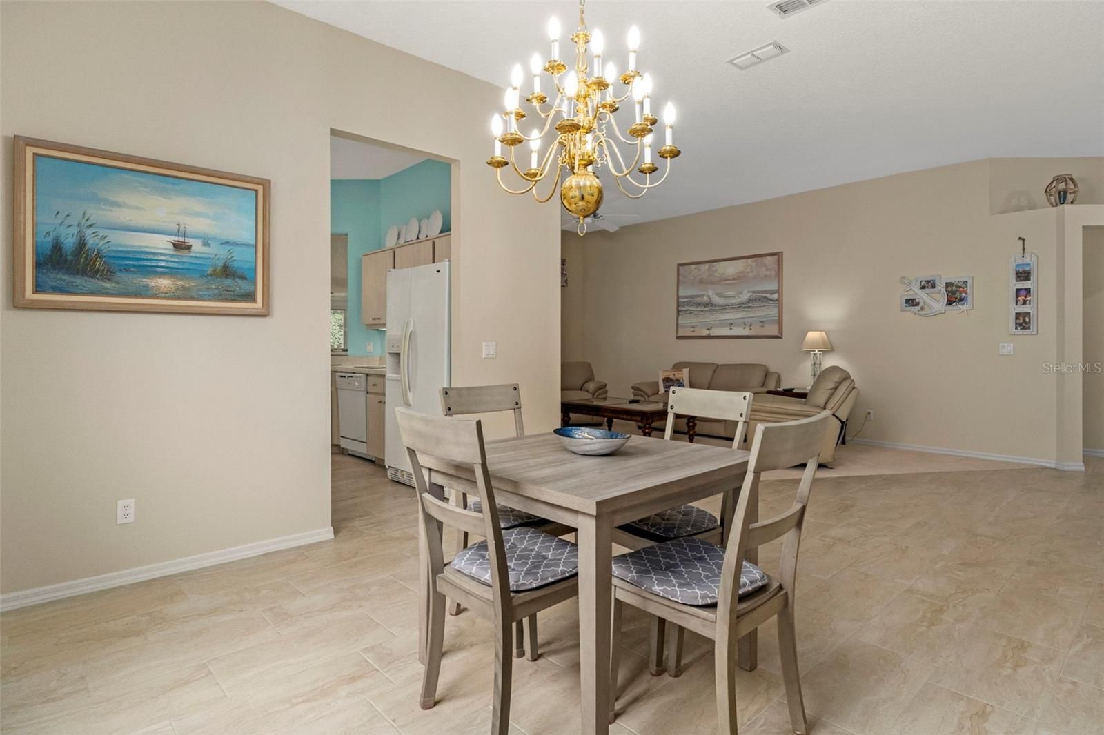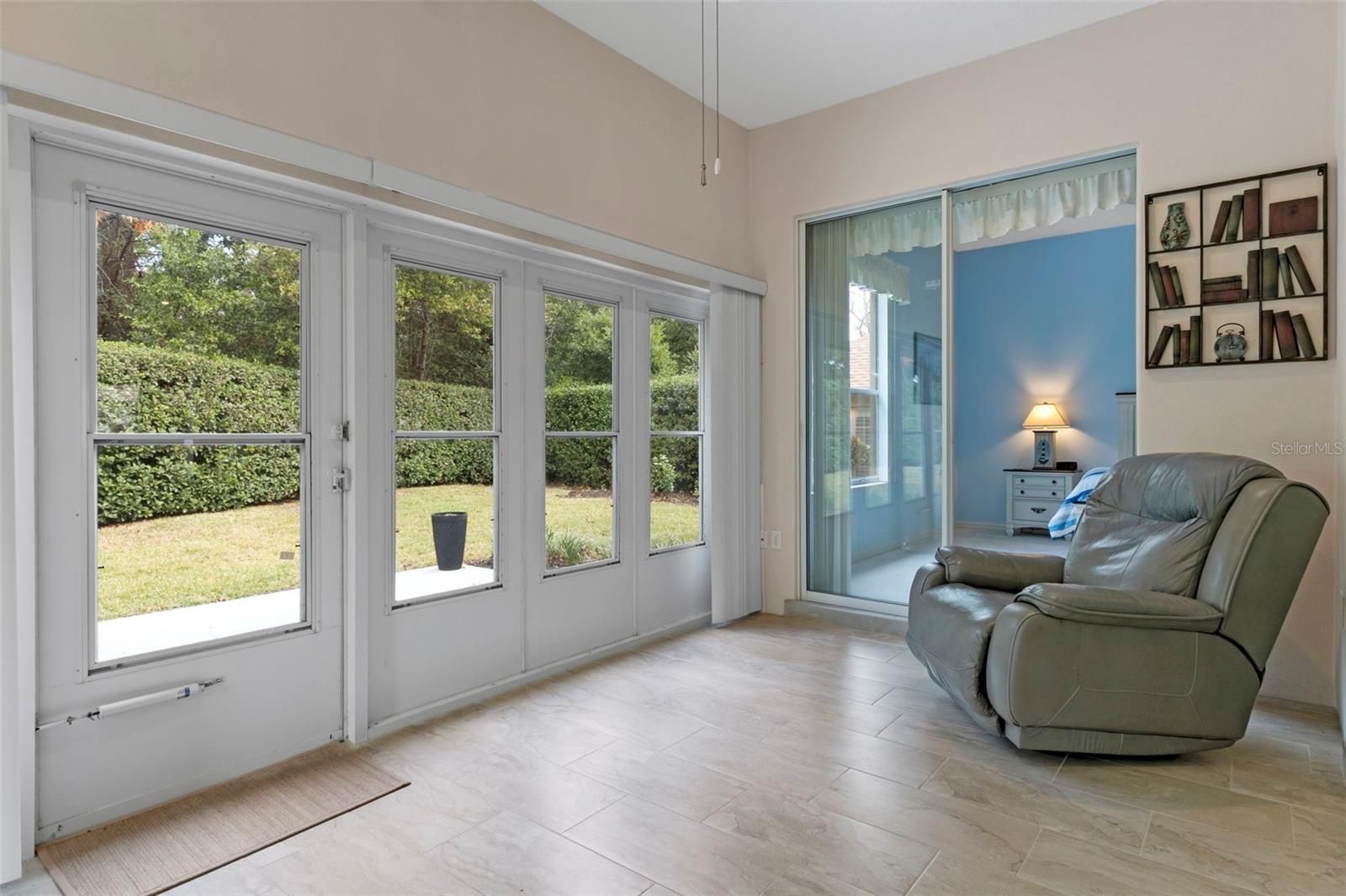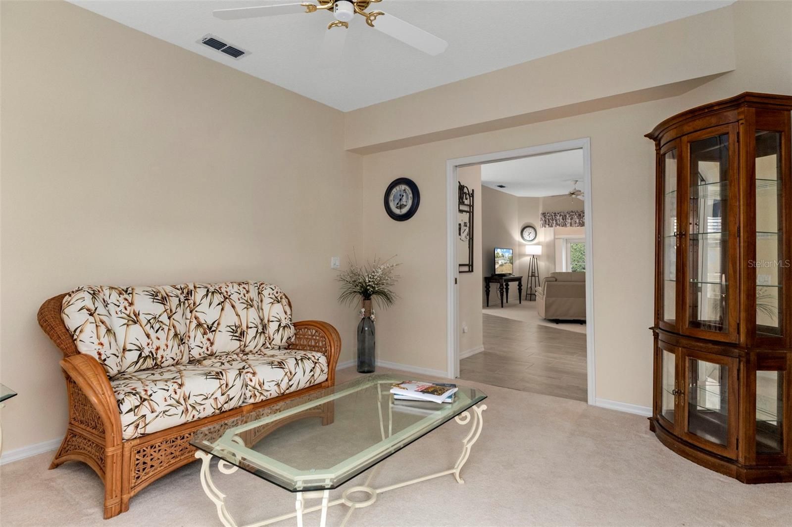 Move-in ready, this 3-bedroom, 2-bath home offers an open floorplan with a blend of tile and carpet throughout. Tile replaced 2025. Vaulted ceilings create a bright, spacious feel, while the glassed-in lanai provides the perfect spot to relax year-round. The primary suite features a walk-in closet and dual sinks, and the second bath includes a handicap-accessible shower, remodeled in 2024, with direct access to the second bedroom. Additional highlights include an inside laundry room with soaking sink and a new roof July2025. The hot water heater was replaced 12/28/21. This beautiful home is located in a desirable 55+ community. The he HOA fee includes heated community pool, cable, WIFI, yard service, irrigation, pest control, trash removal, outdoor lighting, and legal/accounting services. Convenient, low-maintenance living at its best—schedule your showing today!