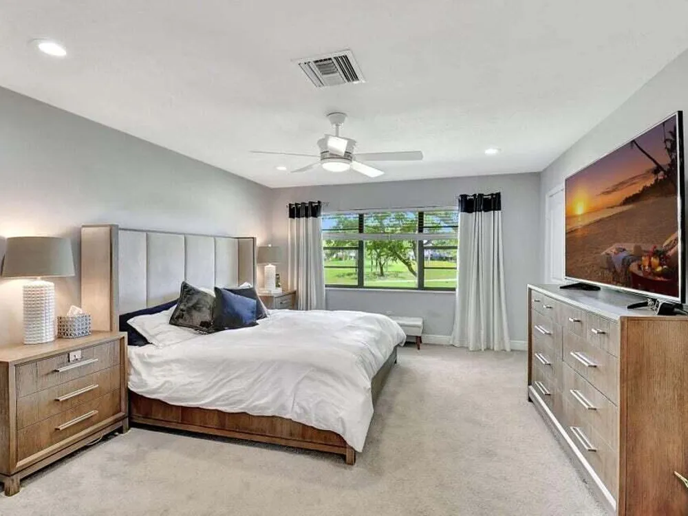 Welcome to Hunters Run Country Club! This spacious 2-bedroom, 2-bath condo offers bright natural light, an open layout, and stunning golf course views. Enjoy a large living area, split bedroom floor plan, and a screened-in balcony perfect for relaxing or entertaining. The primary suite features generous closet space and a private bath. Hunters Run is a premier community with 3 championship golf courses, tennis and pickleball, a resort-style pool, fitness center, spa, and multiple dining options. Conveniently located just minutes from vibrant downtown Delray Beach, shopping, dining, and the beach. Experience the best of country club living in the heart of Boynton Beach!