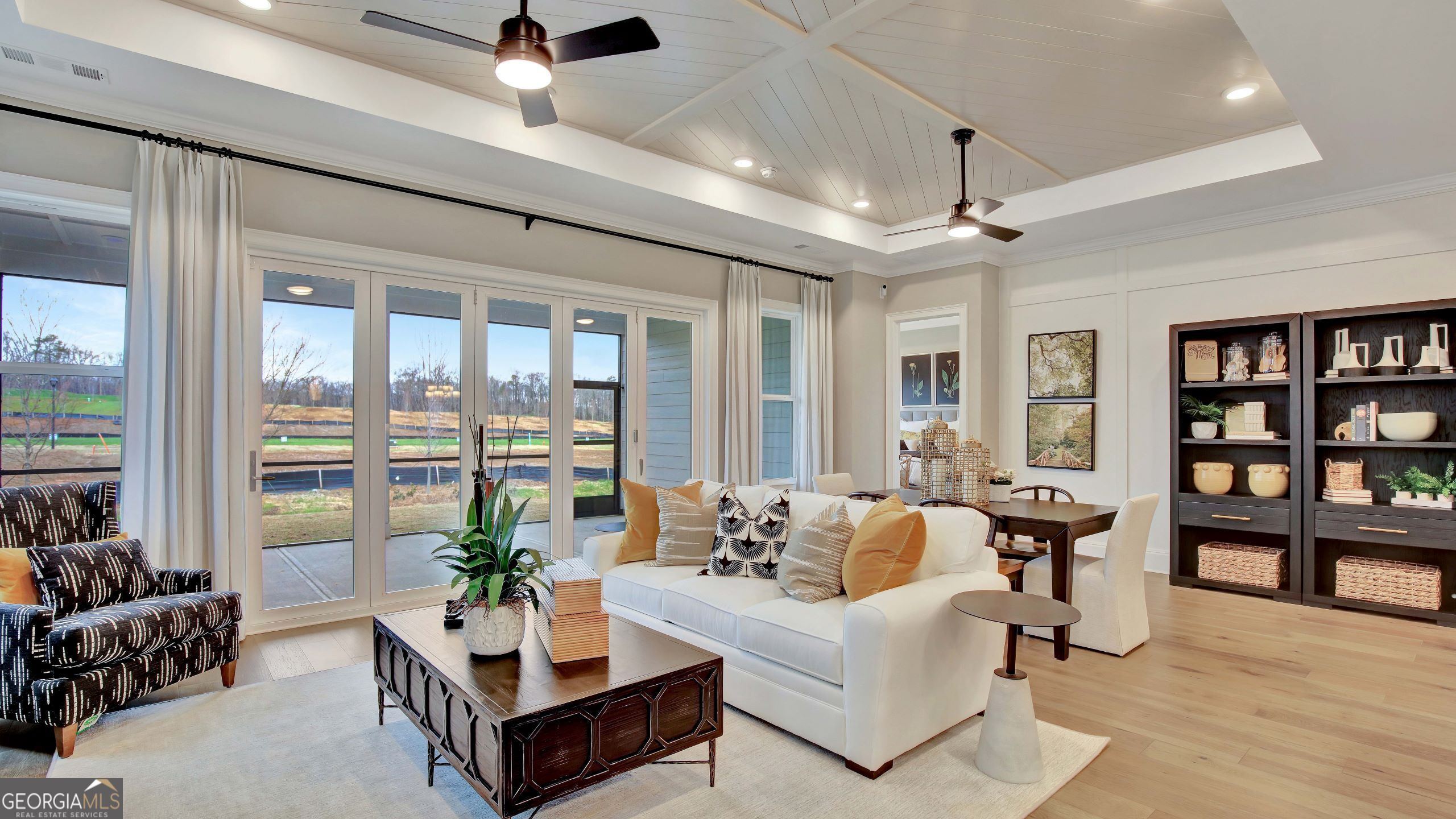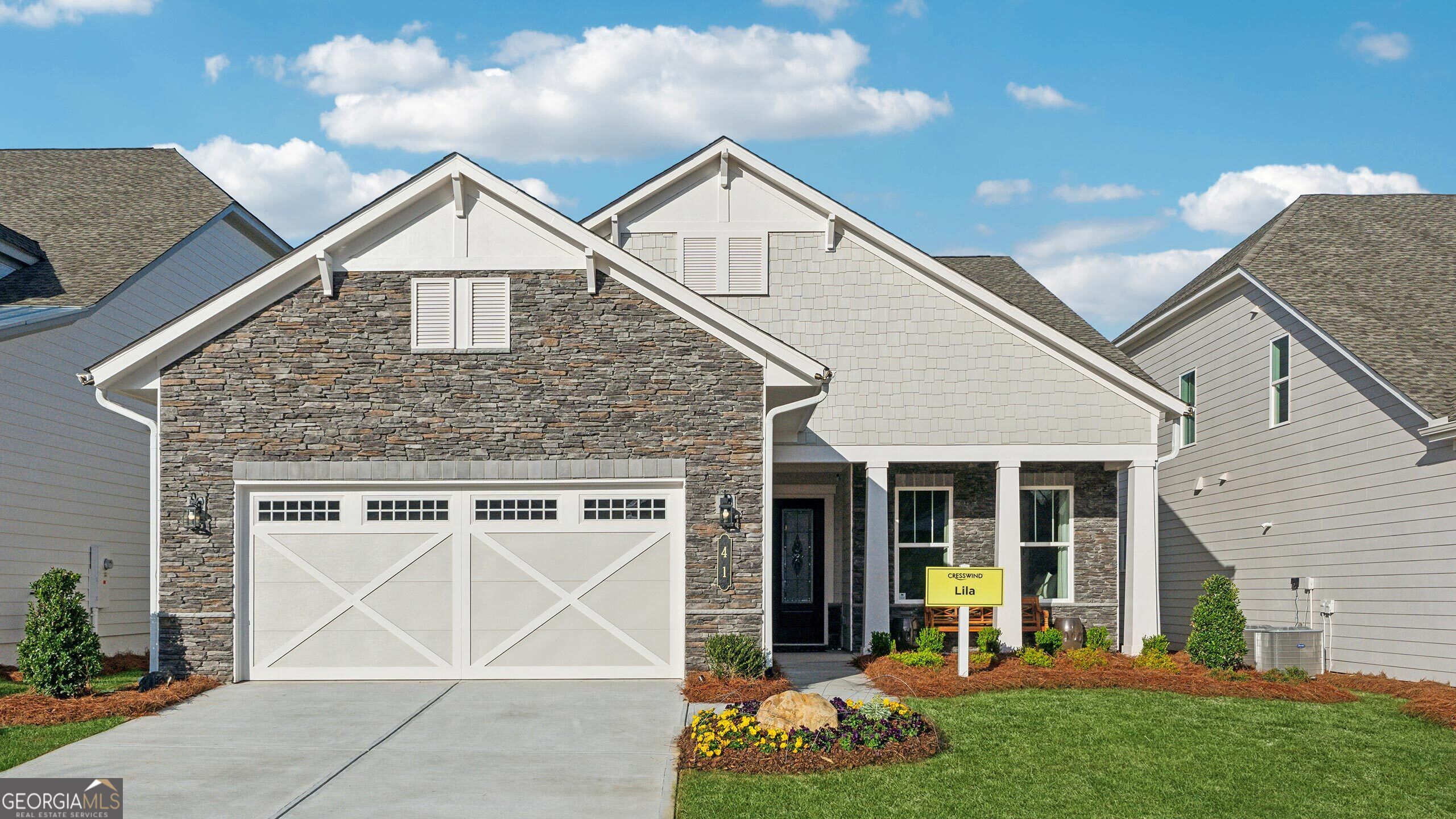 **NEW CONSTRUCTION** MOVE IN READY-12/2025. Model photos used for reference. Cresswind at Spring Haven is one of Newnan's newest 55+ active adult communities. Our brand new, single-story homes are thoughtfully designed for low-maintenance living, with lawn care included. This gated community features a full-time Lifestyle Director who engages residents socially and actively, which is Kolter's Cresswind Signature. Cresswind is located a short drive to the shops and restaurants of downtown Newnan, the outdoor mall of Ashley Park and about 30 minutes to Hartsfield Jackson International Airport. This Lila floorplan offers 3-Bedroom, 3-Bath, Study, and a Courtyard 3-Car Garage. Upon entry, you'll be welcomed by tray ceilings and luxury vinyl plank flooring that flows seamlessly throughout the main living areas, including the foyer, study, laundry room, great room, and owner's suite. The private study, framed by double French glass doors, offers a perfect haven for productivity or quiet reflection. A cozy gas fireplace anchors the great room, providing a touch of comfort and sophistication. The heart of the home is a chef-inspired kitchen, beautifully appointed with 42" Lormand Maple white cabinetry, soft-close drawers, and Marengo Silestone Countertops. A generous island invites gatherings, while GE Profile appliances-featuring a 30-inch cooktop and professional-style canopy hood-enhance both functionality and style. Under-cabinet lighting and pendant fixtures provide a warm, ambient glow. The owner's suite bath has a spa-like sanctuary with a full-height, frameless glass shower tiled to the ceiling, complemented by warm Lormand Maple White cabinetry and gleaming Siberian White Granite countertops. Additional features include a courtyard 3- garage, perfect for added storage or a workshop, and a spacious lanai ideal for outdoor lounging or entertaining.