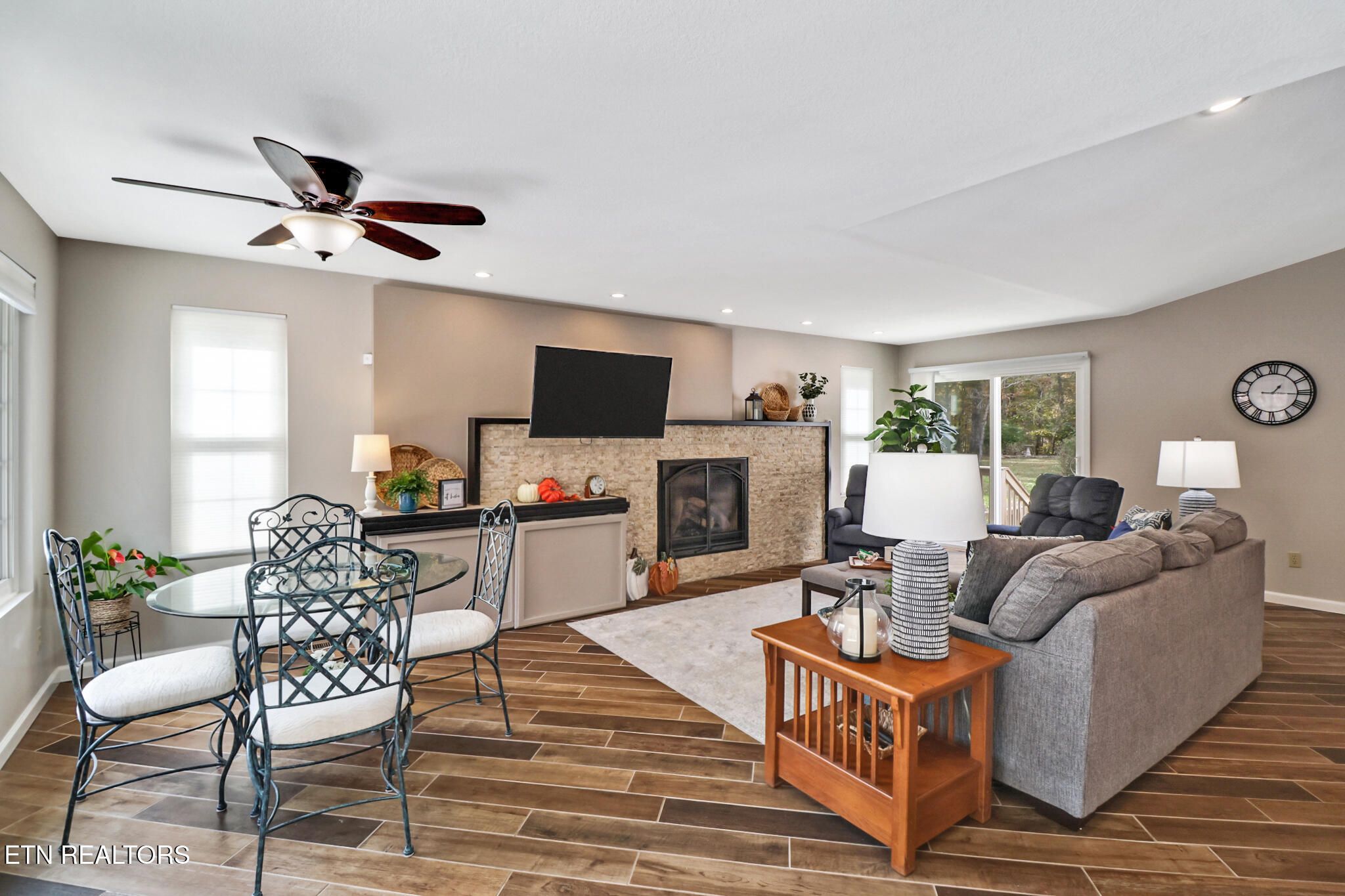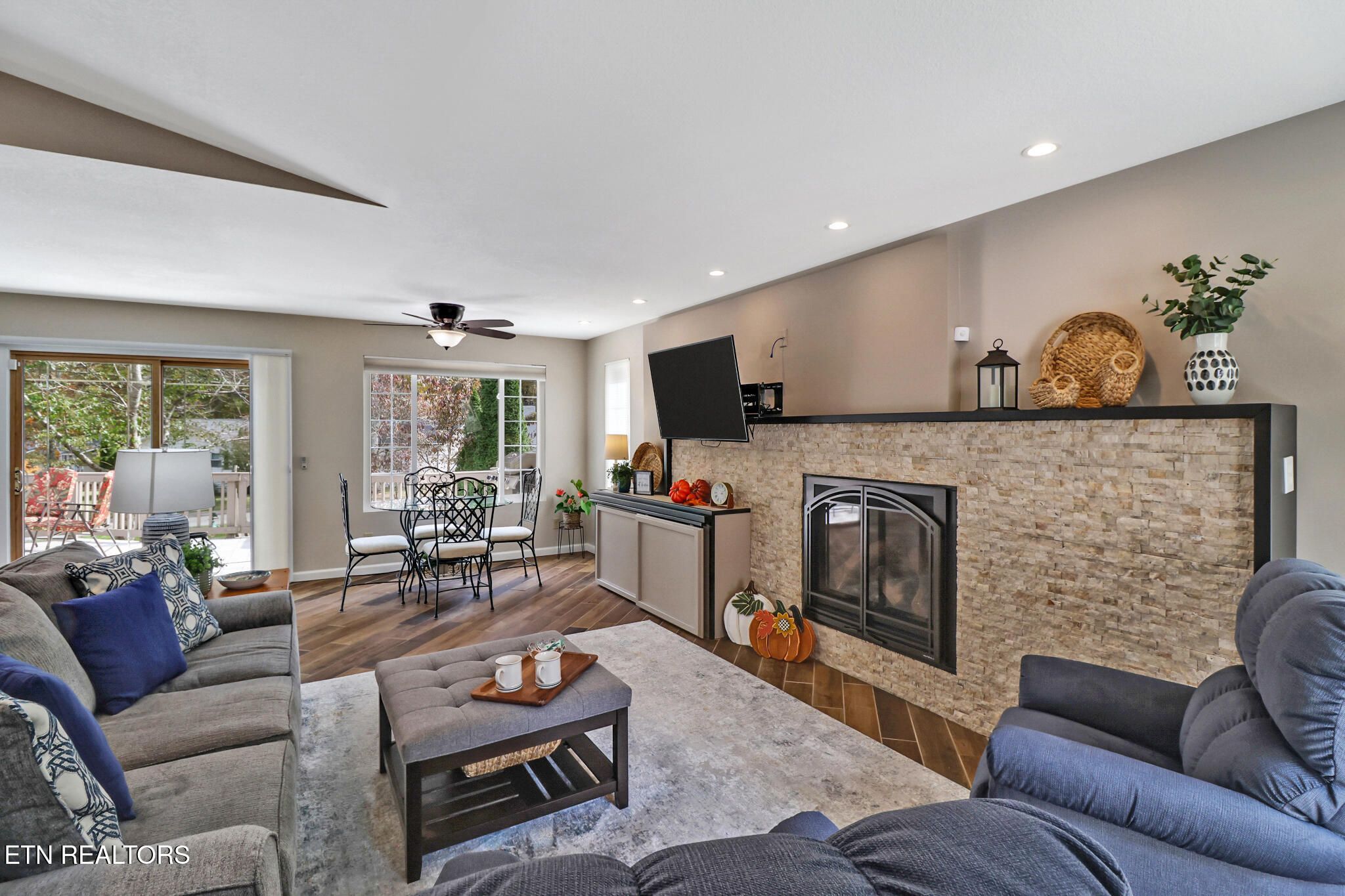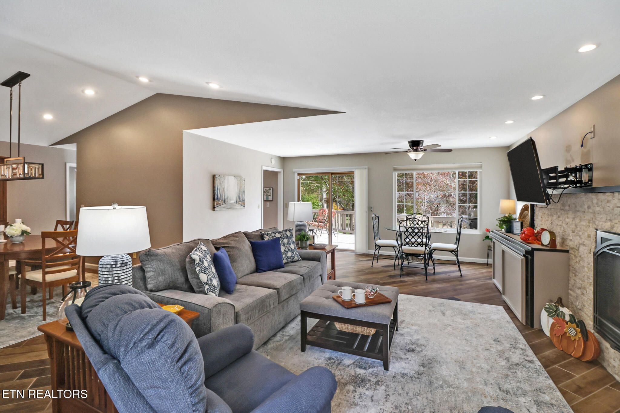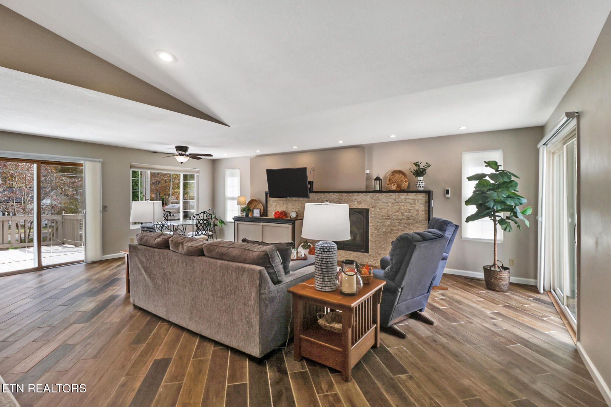 This lovely 3 bed 2 bath home in Fairfield Glade sits on a large corner lot across the street from St. George Lake and has been completely remodeled to a very high standard. The entryway opens into a large living area with vaulted ceilings and expansive views. The custom fireplace wall and beautiful remote-controlled Heat and Glow fireplace insert set the tone for the many upgrades in this home. The master suite features a custom walk-in, tiled shower, lighted mirror, walk-in closet, and plantation shutters. Two guest rooms and large guest bath with custom vanity are located in a separate wing. The beautiful kitchen has custom hardwood cabinets, granite countertops and coordinating backsplash. This beautifully appointed home has decorator lighting and remote controlled ceiling fans throughout. The home is flooded with natural light and features views over the deck into the beautiful side yard and seasonal views of the lake. The large deck includes a propane gas hookup for grilling. Professional landscaping provides beauty and privacy for your outdoor enjoyment and entertaining. Home has encapsulated crawlspace, new under house dehumidifier 2023, leaf guard system, new roof and HVAC in 2022, Simply Safe security system, expanded driveway and many other upgrades. A must see!! Buyer to verify all information before making an informed offer.