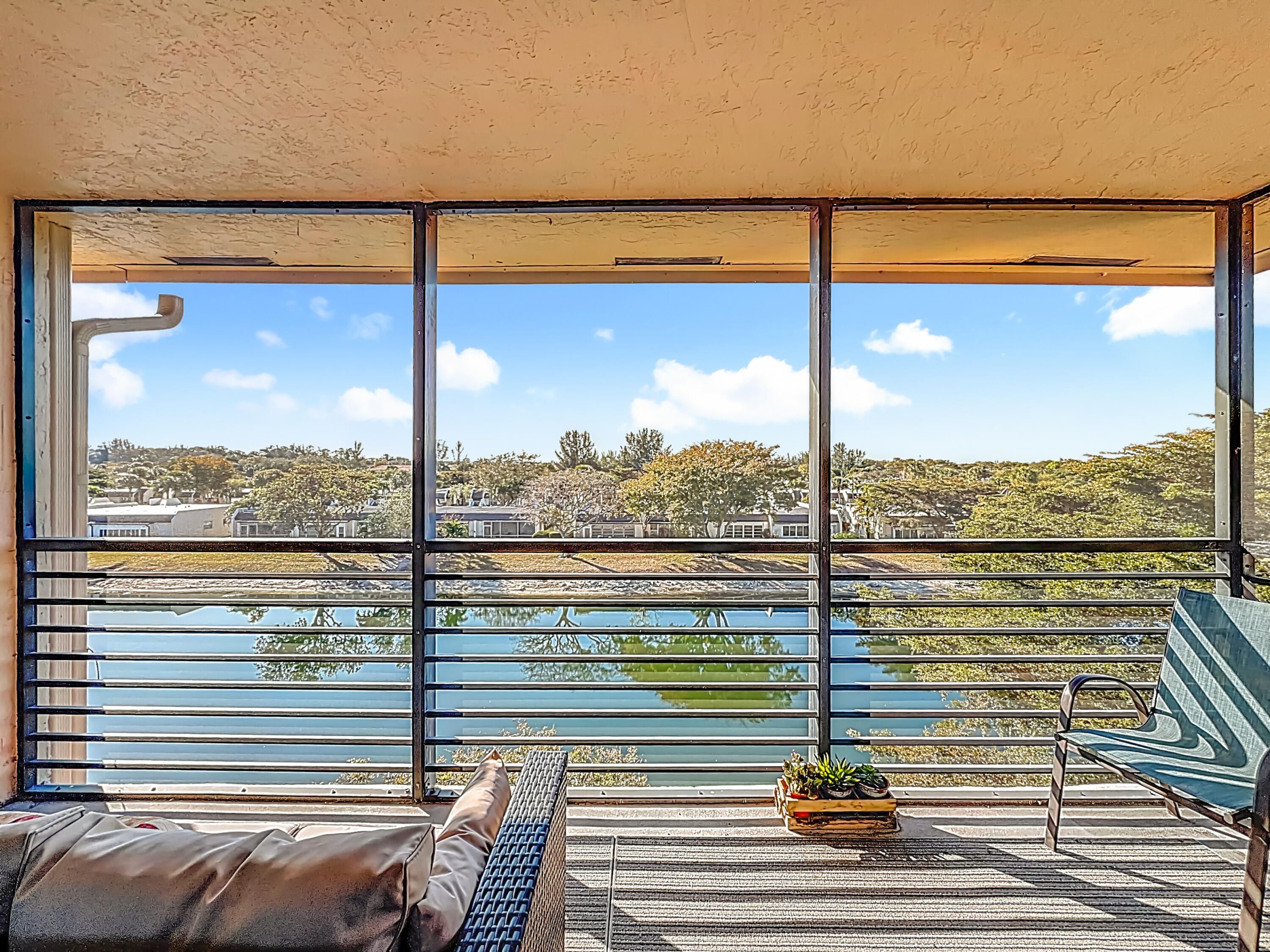 Stunning Fully Furnished 2-Bed, 2-Bath Condo with Breathtaking Water Views in Golden Lakes Village. Welcome to your slice of paradise! This immaculate top-floor, 2-bedroom, 2-bathroom condo is just steps away from the elevator and boasts panoramic water views that will leave you in awe. With a spacious split floor plan and an abundance of natural light, this home is the perfect blend of comfort and elegance. The large, screened-in balcony offers a serene space to enjoy Florida's famous sunsets while taking in the peaceful surroundings. Inside, you'll find a neutral color palette, laminate and tile flooring, and stunning details like hi-hat lighting and crown molding throughout. The master suite is a true retreat with a walk-in closet, a separate vanity area, and a step-in shower for ultimate relaxation. This condo comes fully equipped with a washer/dryer in-unit, accordion shutters for hurricane protection, and extra storage in the building, along with convenient bike storage. Golden Lakes is a vibrant, well-maintained, 55+ community offering resort-style amenities which includes a beautiful clubhouse with an auditorium, café, outdoor tiki bar with grilling area, exercise room, card room, and a heated Olympic size swimming pool with a separate spa, a second satellite pool within walking distance, pickleball & tennis courts, billiard room, WI-FI, and a well-stocked library. Activities, which are supervised by a full-time Lifestyle Director, include live entertainment throughout the year, weekly movies, dinners, water aerobics, Zumba classes, lectures, special interest clubs and more. Manned 24/7 Gate. Located close to the Okeechobee Exit on Florida's Turnpike and within minutes of Palm Beach International Airport, you are minutes away from shopping, restaurants, entertainment, and first-class medical facilities.