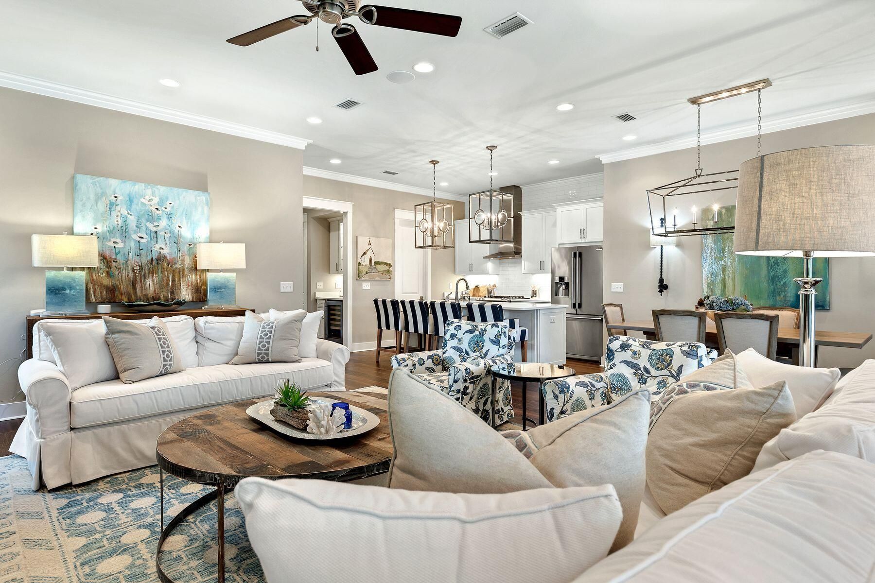 Meticulously Maintained Home in lovely Watersound Origins. Nestled in the sought-after community of Watersound Origins, this charming 4-bedroom, 3 bath home blends elegance and functionality in a beautiful design with a gorgeous fully fenced in backyard and room to add a small pool. The floor plan features 10' ceilings that create an airy and inviting atmosphere. As you step inside, warm hardwood flooring and abundant natural light from expansive windows welcome you into the open-concept living space. The gourmet kitchen is truly the heart of the home, boasting stainless steel appliances, a gas stove, microwave drawer and a custom finished pantry. A spacious island provides the perfect space for meal preparation, casual dining, and entertaining. Additional highlights include quartz...