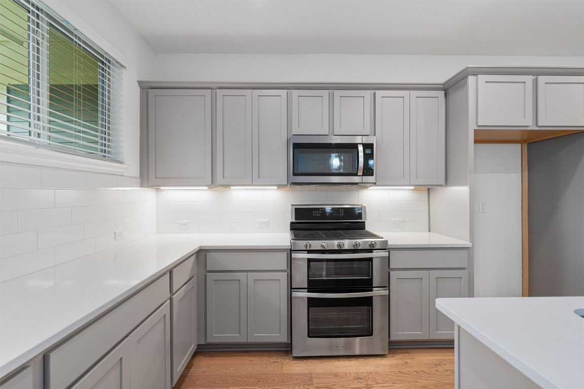- Built-In Gas Range, Dishwasher, ENERGY STAR Qualified Appliances, ENERGY STAR Qualified Dishwasher, ENERGY STAR Qualified Water Heater, Exhaust Fan, Free-Standing Electric Oven, Disposal, Gas Range, Gas Water Heater, Microwave, Range Hood, Water Softener Owned, Self Cleaning Oven, Stainless Steel Appliance(s), Water Heater
