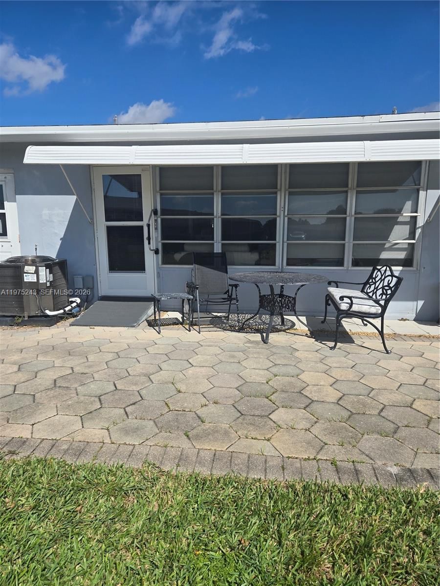 Beautiful updated unit, Ceramic tile flooring throughout, open kitchen concept, luxurious granite countertops, with large kitchen island, premium kitchen cabinets, with built in wine cooler. Mounted 55” TV in Living room, ceiling fans throughout the unit. The spacious bedroom offers a private retreat with two large walk-in closets, French doors to updated master bath, connecting Florida room can be used for an office or a second bedroom. Patio has designer tiles. Unit is close to large pool and active Tiki Bar. Conveniently located near beaches, shopping, dining, scenic walking trails.