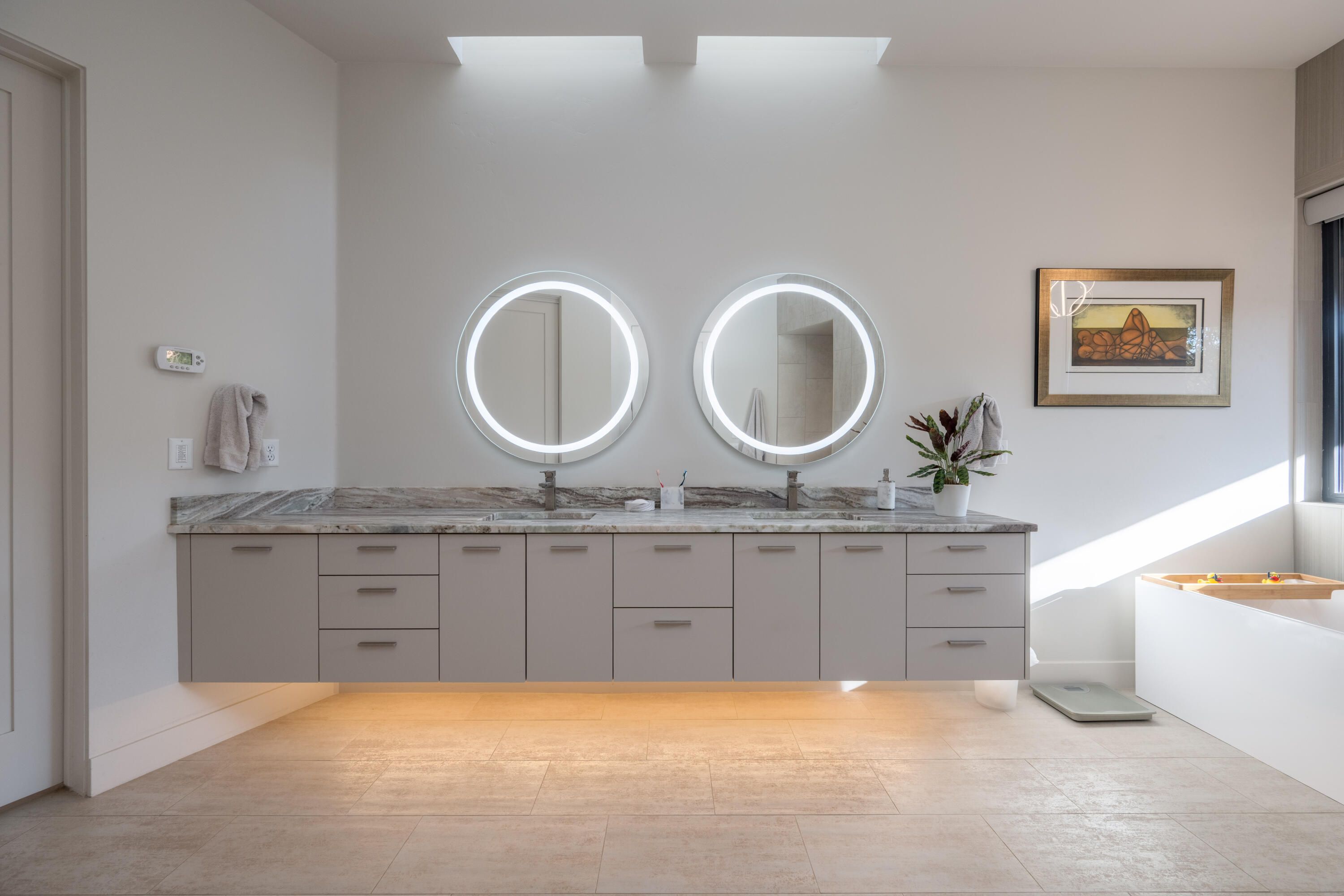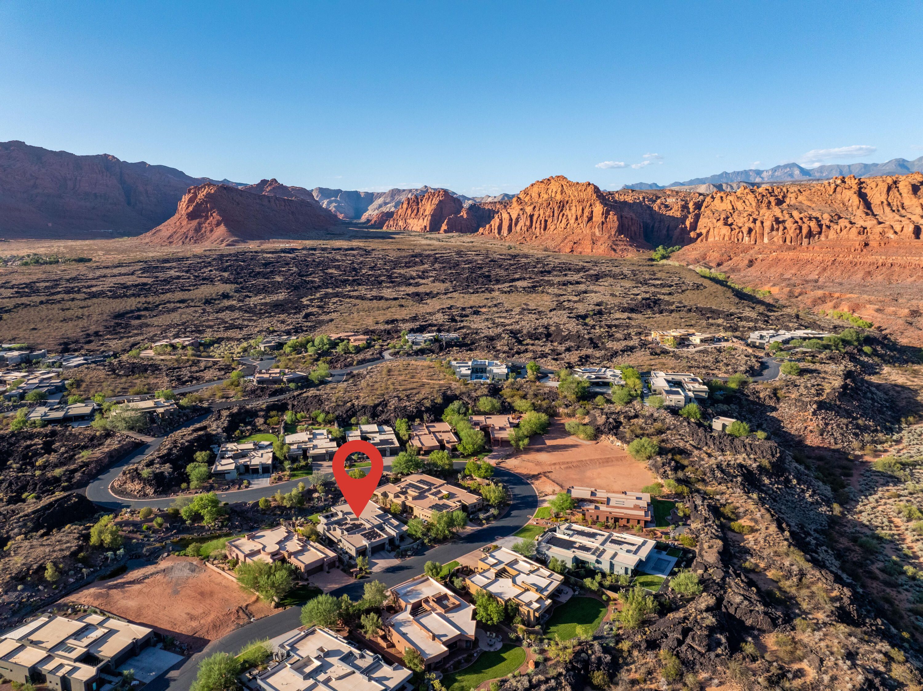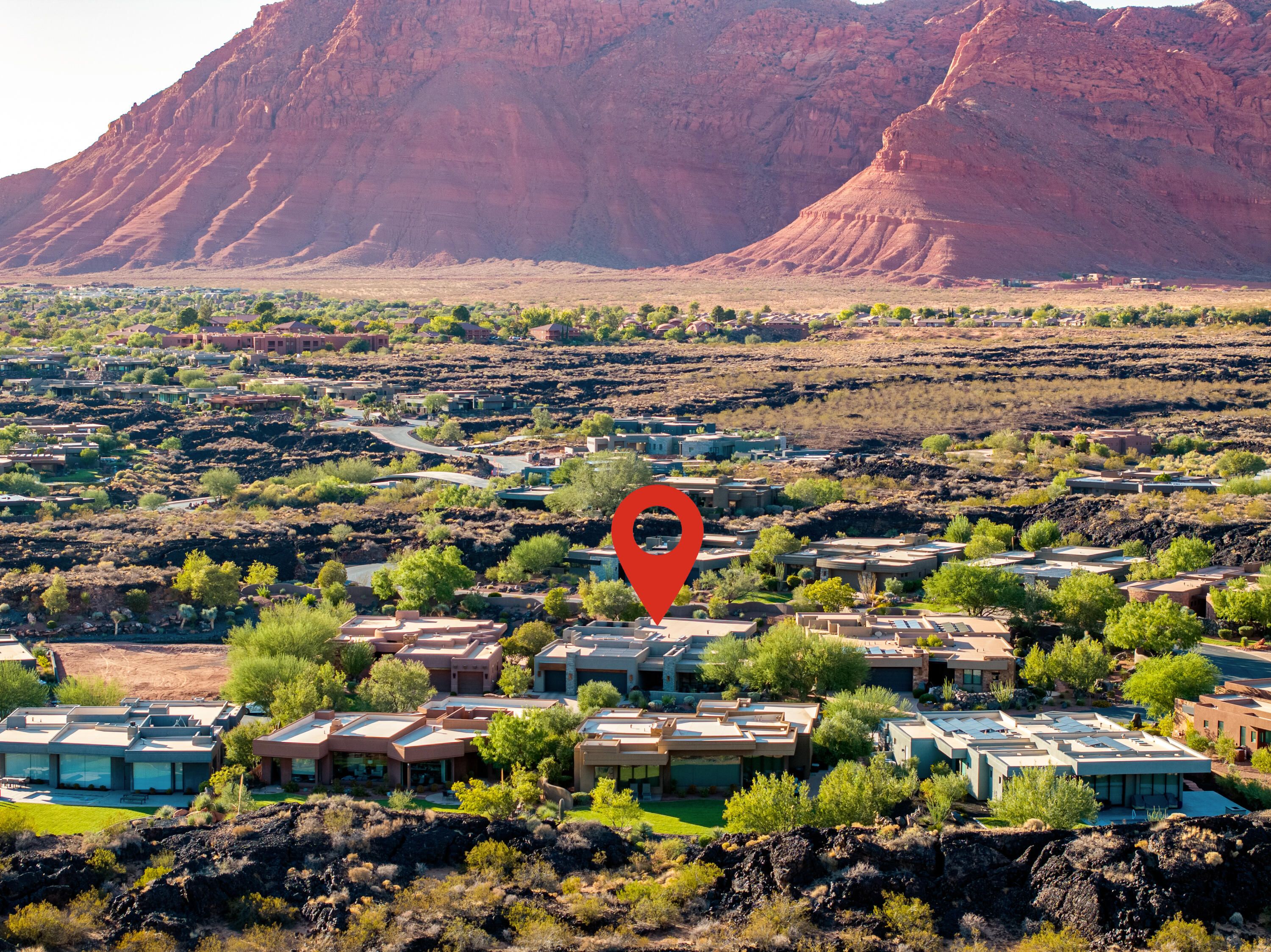 Welcome to an architectural masterpiece in The Reserve at Entrada, where modern luxury meets timeless desert beauty. This 3,000 sq. ft. residence offers 3 bedrooms, 3 bathrooms, and a 3-car garage, thoughtfully designed for both elegance and function. Perched to capture incredible views of Red Mountain and Snow Canyon, the home invites you to relax in complete privacy, surrounded by striking landscapes and a tranquil custom water feature. Expansive glass walls and European windows and doors frame the scenery while enhancing energy efficiency, strength, and comfort. Inside, the home showcases high-end Thermador appliances, a tankless water heater with instant hot water, and a whole-home Lutron electrical system with automated shades. Designed with durability in mind, it features steel studs, steel roof trusses, foam insulation, and geo-tech stabilization under the foundation. Comfort is elevated with 10 heating and cooling zones using mini-splits for ultimate efficiency. Outdoor living is equally spectacular, with multiple patios, a rooftop deck, firepit, fireplace, saltwater hot tub, and solar panels providing a seamless extension of the home. Modern conveniences include a whole-house surge protector, water softener with reverse osmosis, Aqua-Air central vac, Ring security system with cameras, and two EV charging stations. Every detail has been thoughtfully curated, from the open-concept living spaces to the luxurious finishes throughout. Whether entertaining guests or savoring quiet moments, this home captures the beauty and serenity of its surroundings, offering a lifestyle that is both elevated.