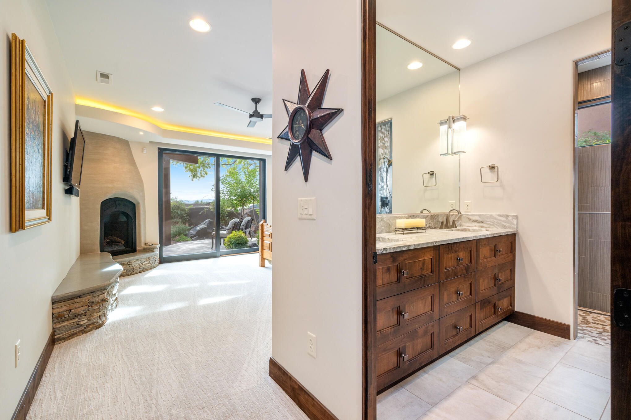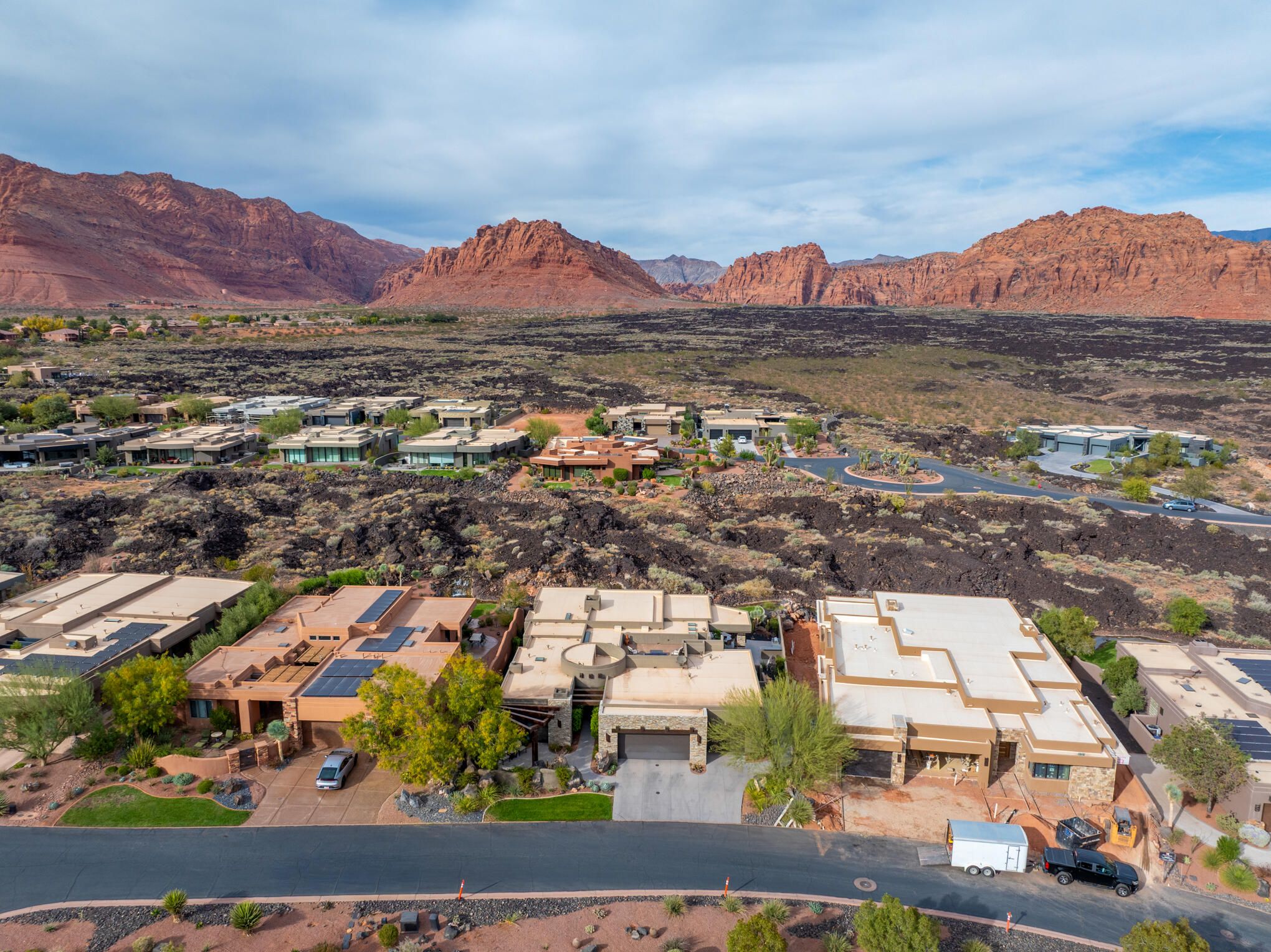 A rare find in The Reserve of Entrada is finally available. This exceptional property, built by SplitRock, offers over 4,700 sqft of luxurious living. This home features 4 spacious bedrooms, 4 bathrooms, a 3-car garage, a dedicated private office and a sophisticated entertaining room complete with a wet bar. The outdoor living experience is impressive, with custom backyard fire pits positioned to highlight The Reserve's exclusive water features. Enjoy the stunning Southern Utah climate from the front, back, and rooftop patios. The views from this property are simply spectacular, encompassing dramatic lava rock formations, vibrant red rock landscapes, the majestic Snow Canyon State Park, and a tease of Pine Valley Mountain. This home is moments away from some of Southern Utah's most desirable attractions, including the Entrada Clubhouse, Black Desert Resort, Snow Canyon, Tuachan, and the Kayenta Art Village.