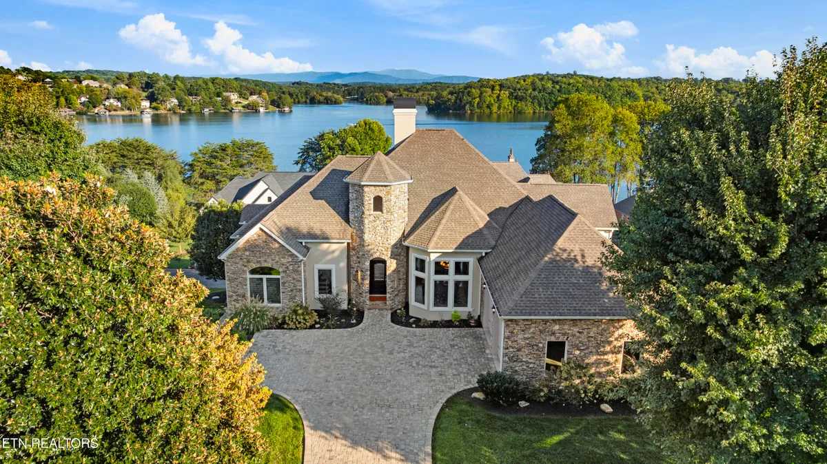 Welcome home to incredible panoramic Lake and Mountain views — enjoyed from nearly every room! This beautiful French Country-style home is located in the highly sought-after gated community of Rarity Bay with 24-hour security. The great room features 24-ft vaulted ceilings, floor-to-ceiling windows, and a striking stone fireplace. The kitchen offers granite counters, imported tile, custom cabinetry, stainless appliances, double ovens, a Viking cooktop, warming drawer, and a spacious butler's pantry. The main level features hardwood floors throughout, including the primary suite with a tile and glass shower with multiple showerheads, dual vanities, and a large walk-in closet. A main-level office/study can also serve as a fifth bedroom. Step outside to a large deck that showcases the home's stunning lake and mountain views — perfect for entertaining or simply relaxing. A screened-in porch off the deck provides a peaceful spot to unwind and enjoy the view year-round. The lower level includes three private ensuites, each with its own bath and walk-in closet, a second living area with gas fireplace, full kitchen, and laundry with sink. Additional features include a home gym/rec room, beautifully landscaped yard, and a separate golf cart garage. A covered boat slip in the neighborhood marina can transfer to the buyer with purchase. Residents enjoy Rarity Bay's clubhouse, bistro, tennis and pickleball courts, and 18-hole championship golf course.