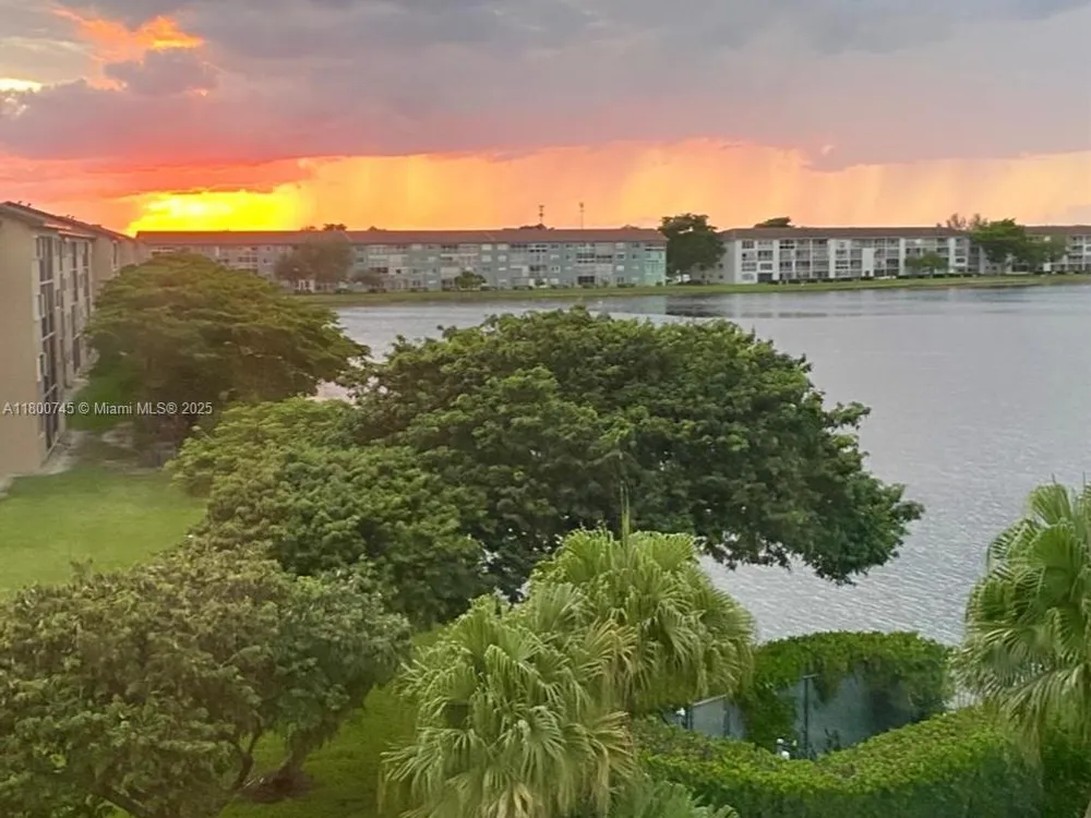 Enjoy stunning LAKE VIEWS from your 4TH FLOOR balcony! This LARGEST CORNER UNIT in Century Village boasts 1,533 sq.ft. of living space. Spacious 2 bedrooms and 2 bathrooms, with ample natural light throughout. Features include WASHER/DRYER, CENTRAL A/C (9 yrs old), water heater (2023), EAT-IN KITCHEN with STAINLESS STEEL appliances, WALK-IN CLOSETS, and ACCORDION SHUTTERS EVERYWHERE.Low Maintenance Fees: $789.74 (CVP: $283.24 + Landmark $506.50), including water, trash, sewer, basic cable, and internet.. Building amenities: resort-style clubhouse, gym, tennis courts, pools, and golf course. Parking space #45 and ample guest parking. Recently replaced roof (2018) and ELEVATOR IN BUILDING. Don't miss this incredible opportunity!!