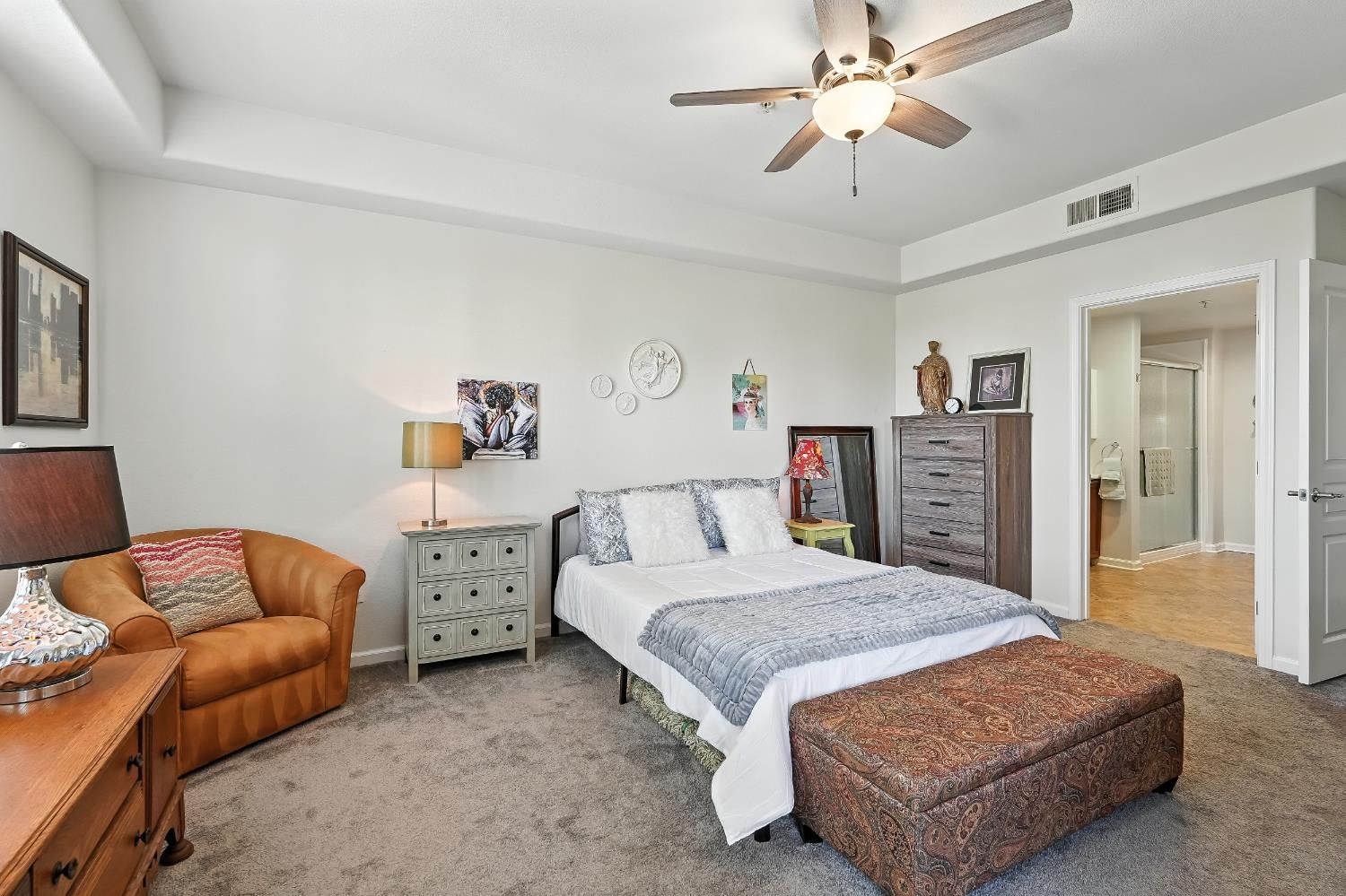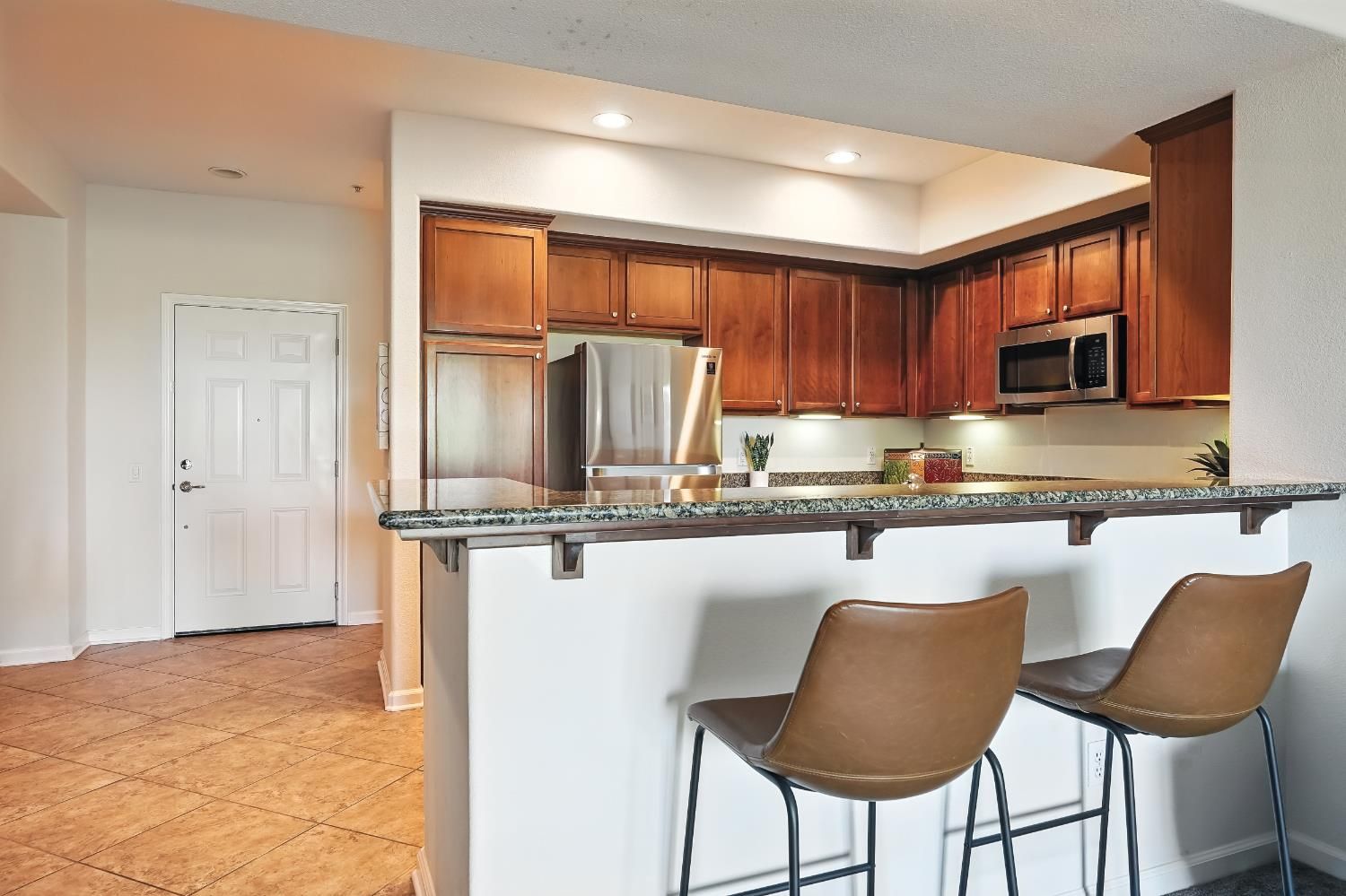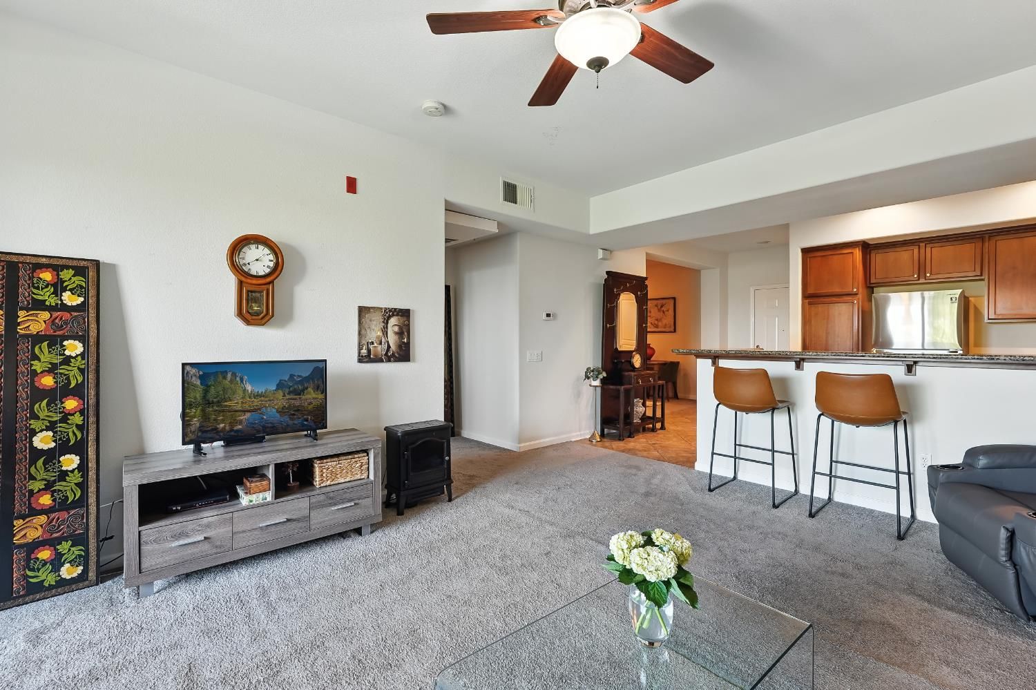 New price! This charming one-bedroom, one-and-a-half-bathroom home offers 1,097 square feet of living space plus a detached single-car garage. This upstairs unit, accessed by elevator or stairs within the building, features an open floor plan with the living area seamlessly flowing into the dining space and kitchen. A flexible room off of the entry is currently used for additional living space. The kitchen is well-appointed with stainless steel appliances and granite countertops. The primary bedroom provides a peaceful retreat with its own door leading to the covered balcony patio. In addition to the primary bathroom with shower and walk-in closet, this home also includes a half-bathroom for added convenience. Enjoy the Sun City 55+ Lincoln Hills lifestyle with just a short drive to the Kilaga Springs Lodge with gym, cafe, spa, indoor pool, and so much more!