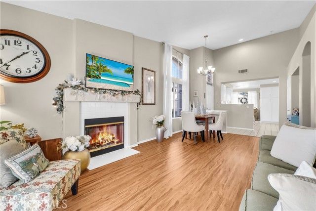 Welcome to the highly sought-after Cypress Point floor plan in the prestigious Sun Lakes Country Club, featuring the rare and valuable two-car garage PLUS a dedicated golf cart garage with its own access door—a true standout in this community. Ideally positioned near the clubhouse and resort amenities, this beautifully maintained home offers the perfect blend of comfort, convenience, and active adult living. Inside, you’re greeted by soaring vaulted ceilings, fresh interior paint, and stylish wood-look flooring that create a bright, open, and inviting atmosphere. The spacious living room is anchored by a cozy fireplace with mounted TV, seamlessly connecting to the formal dining area and kitchen—perfect for entertaining or relaxing in style. The kitchen features crisp white cabinetry, generous counter space, abundant storage, and a sun-filled breakfast nook surrounded by windows. The primary bedroom retreat offers vaulted ceilings, abundant natural light, and direct access to your private backyard patio, while the en-suite bath includes dual sinks and a comfortable, easy-living design. A well-appointed guest bedroom and full guest bath provide ideal flexibility for visitors, hobbies, or a home office. Step outside to your private, low-maintenance backyard with decorative rock landscaping, full vinyl fencing, and a covered patio—perfect for peaceful mornings, evening relaxation, or entertaining guests. Sun Lakes Country Club delivers a true resort-style lifestyle, featuring two 18-hole golf courses—one full championship course and one executive course, along with multiple clubhouses, indoor and outdoor pools, tennis, pickleball, fitness centers, restaurants, lounges, billiards, craft and hobby rooms, and a full calendar of social clubs and activities. Conveniently located near shopping, dining, Morongo Casino, Desert Hills Premium Outlets, and just a short drive to Palm Springs, this home offers both lifestyle and convenience.