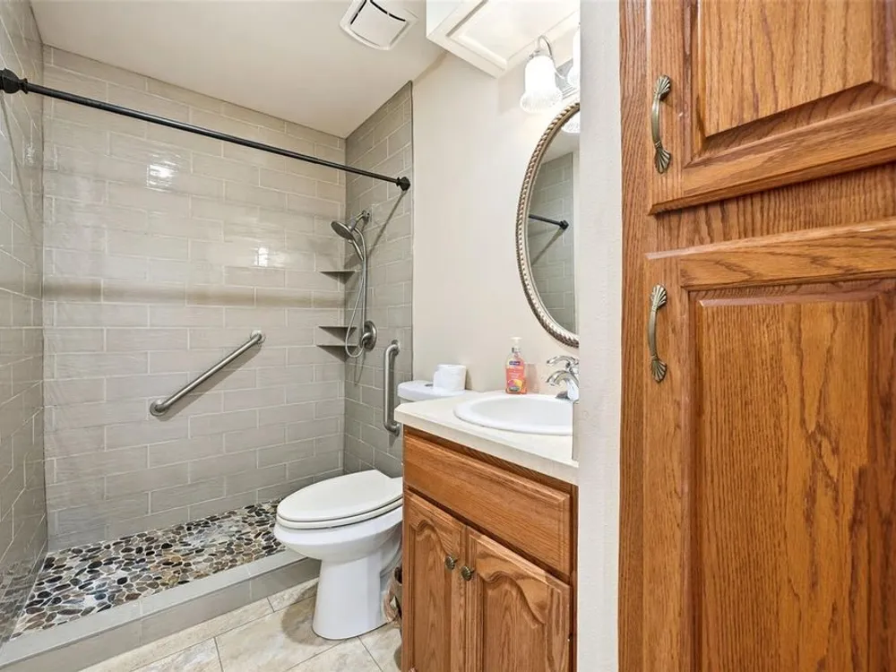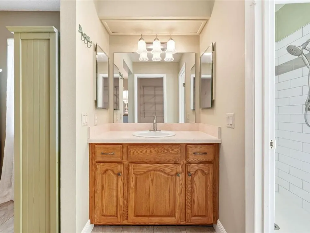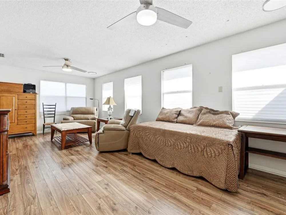- Cathedral Ceiling(s), Ceiling Fan(s), Living/Dining Room, Main Level Primary, Solid Surface Counters, Split Bedrooms, Thermostat, Walk-In Closet(s)