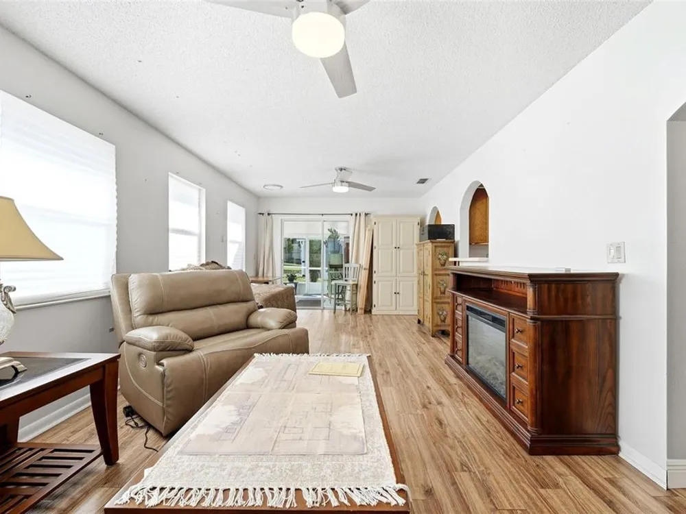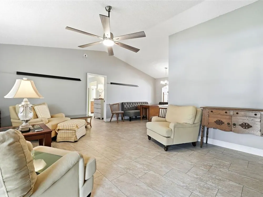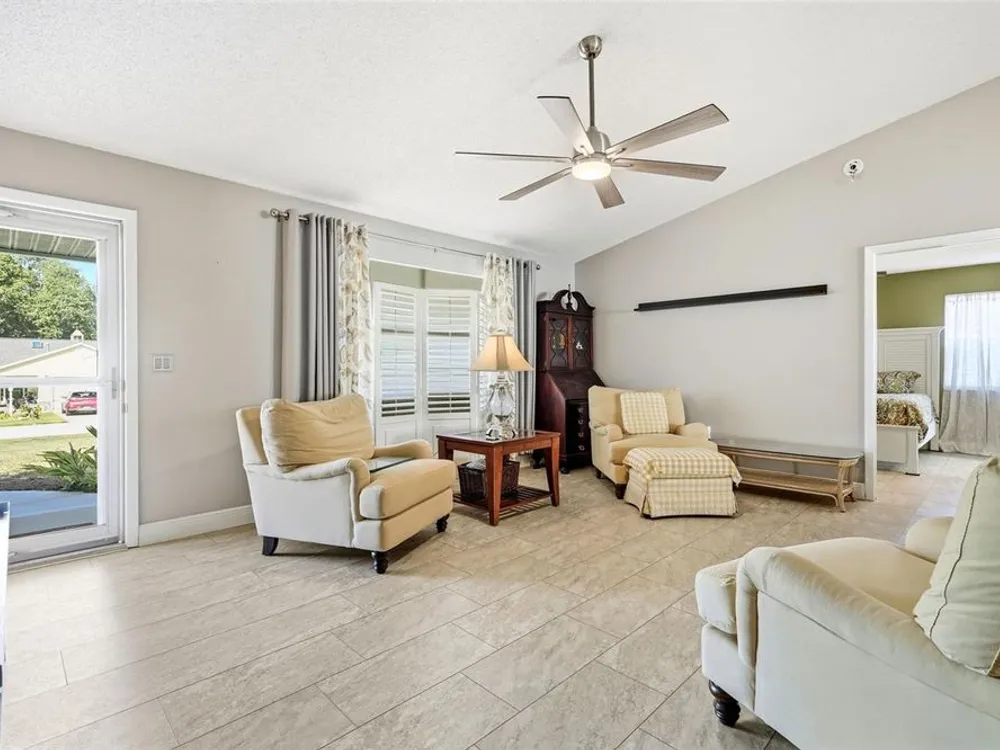 Welcome to Scottish Highlands, one of Leesburg's most sought after 55+ communities!! The charming 2-bedroom, 2-bathroom home sits on a corner lot and offers over 1500 square feet of living space, including a spacious Florida room and a screened in Lanai--perfect for morning coffee or evening breezes. Enjoy evening BBQs on your own back patio and enjoy fresh air and sunsets. Inside enjoy cathedral ceilings in the living/dining room, split bedrooms and a large walk-in closet in the primary suite. The kitchen features solid surface counters and ample cabinet space, while the living and dining areas flow seamlessly for entertaining. Unique to the Highlands a 2-car garage leaves you have ample space for a golf cart to park. You will never be bored with the many clubs and organizations in the Highland's community. The amenities also include 2 pools, one indoor and one outdoor, clubhouse, fitness center and more. The monthly HOA includes cable/internet, sewer and grounds maintenance. Buyer approval required; see HOA for pet and lease guidelines.