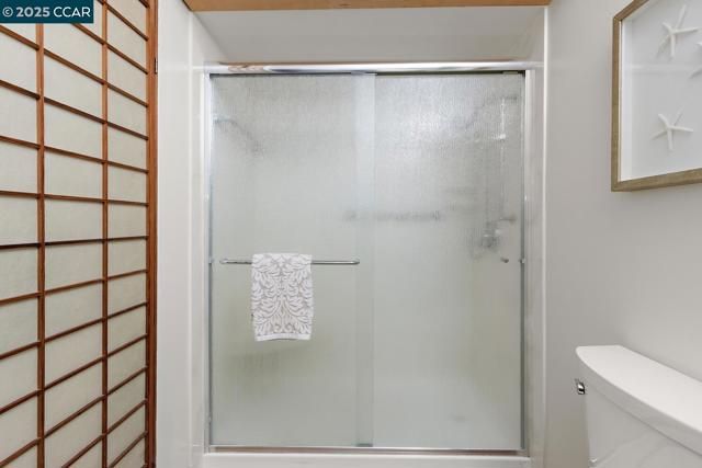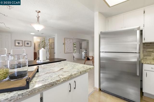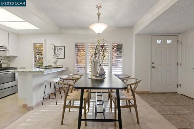 Lovely Del Monte condo nestled in the treetops in the active-adult community of Rossmoor. This upstairs end-unit has a serene setting from almost every window and is located in a small entry with only one other building for ultimate privacy. Inside this charming one bedroom/one bathroom home you'll find a redesigned layout with a dramatic double-door entry to the generously sized bedroom and additional sought-after storage space added to the cozy Living Room. The Kitchen has been updated with a modern glass subway tile backsplash, stone counters, decorator light fixtures, and stainless steel appliances. With both a breakfast bar at the Kitchen island, and a spacious Dining Area, you have multiple options for light meals at home or family gatherings at the dinner table. An updated vanity in the bath matches perfectly with the shoji screen detailing at the large stall shower and laundry closet with a convenient stacked washer/dryer. The property is in pristine move-in condition with new carpet and fresh paint throughout and is ready for you to make it your own. You'll appreciate additional desirable features like the plantation shutters and a mini-split system for instant A/C and heat. Carport with storage just steps away from the home.
