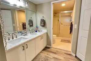 Large 3rd floor corner unit recently remodeled with new kitchen cabinets, quartz counters and stainless steel appliances. This condo features 2 bedrooms with walk-in closets and 2 updated bathrooms. Association fees include water, trash, basic cable, internet and many amenities including clubhouse, gym, tennis courts, pools, and more. Please allow 24 hour notice to show unit.