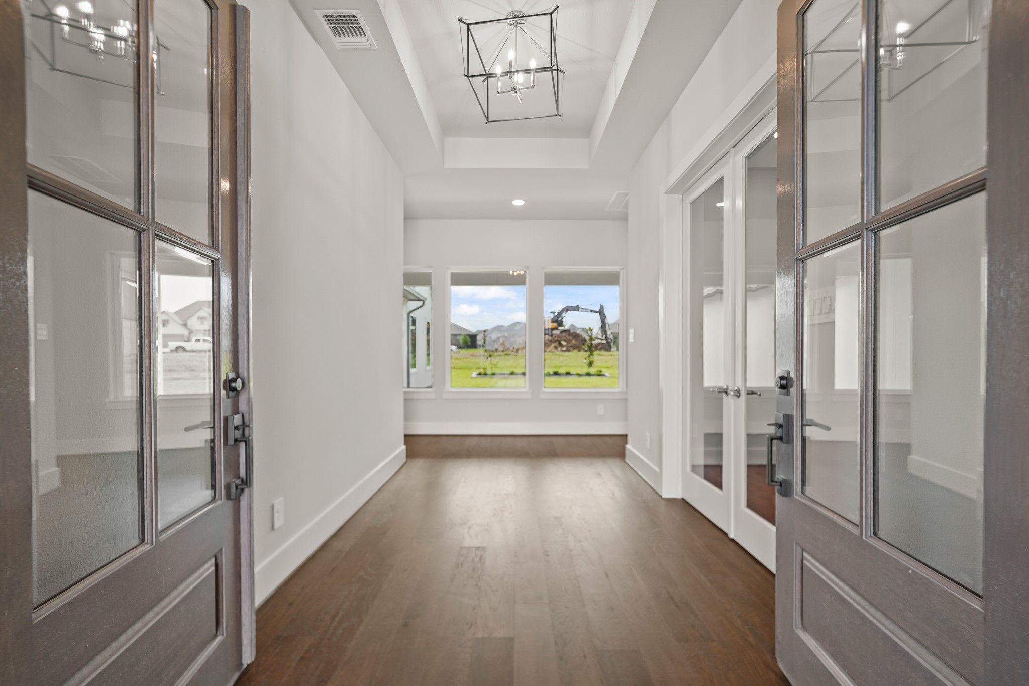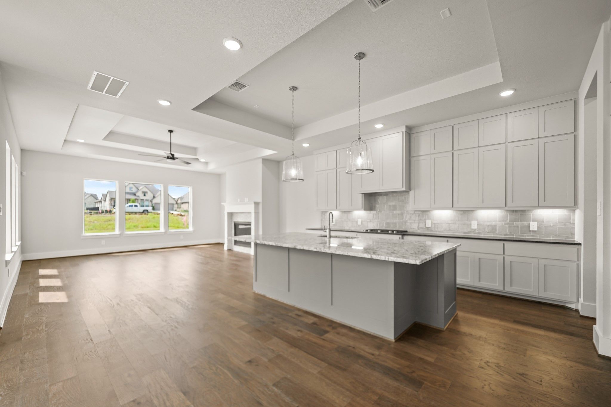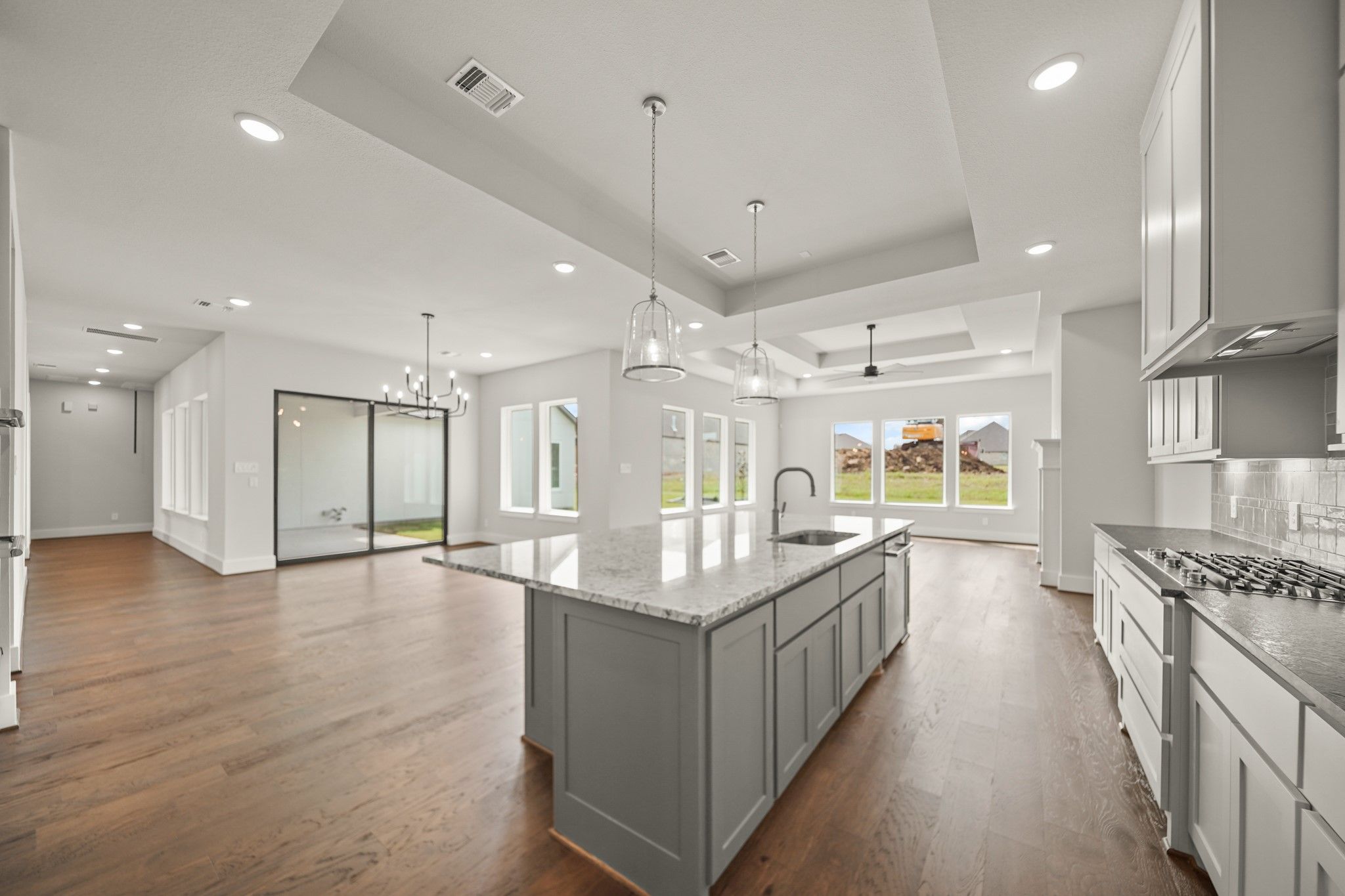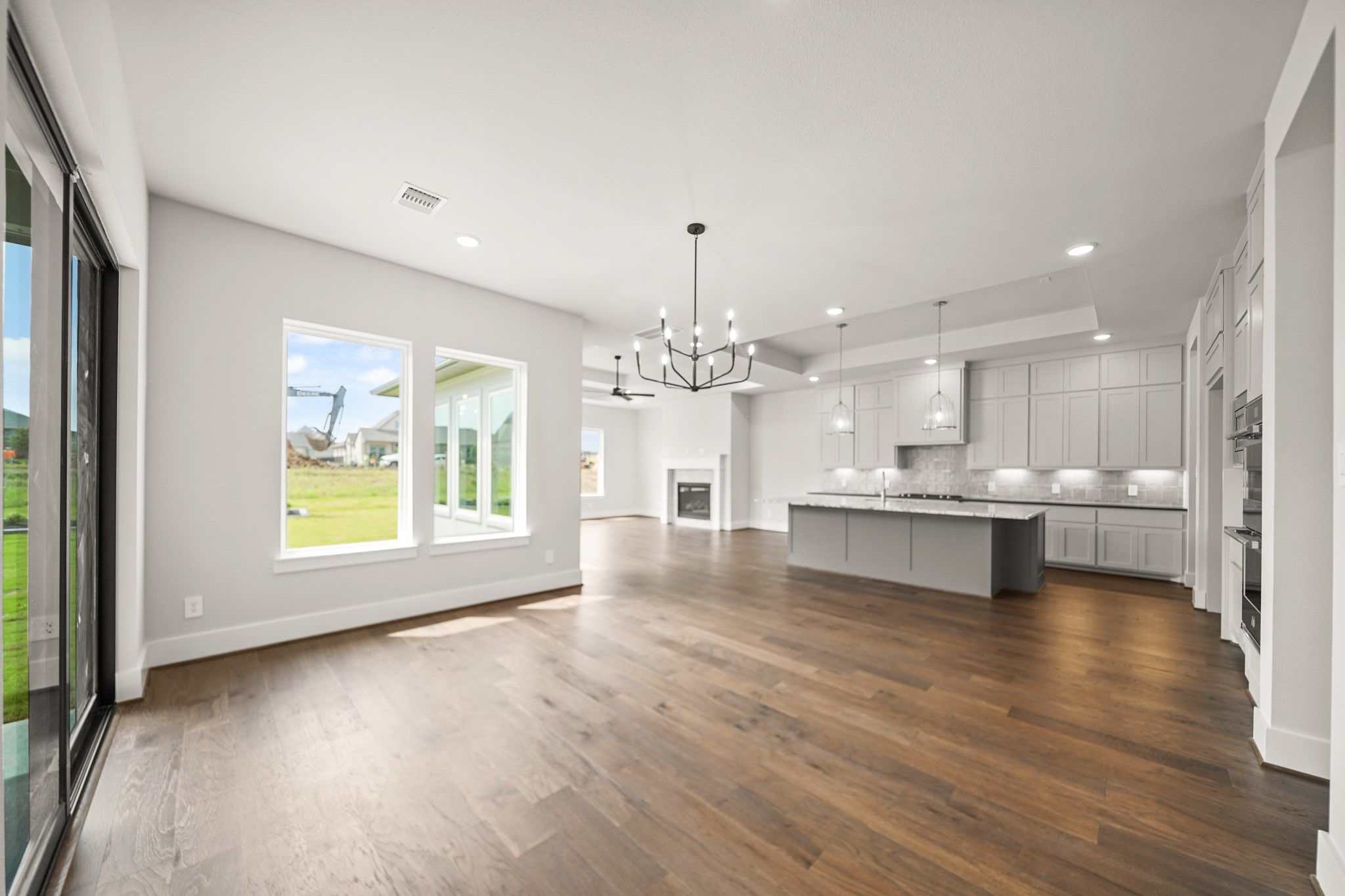 NEW MOVEIN READY HOME-PARTNERS IN BUILDING CUSTOM HOME ON 80' LOT! Tradition, luxury & serenity all in one! Dynamic soaring ceilings, open concept with brilliant natural light & beautiful wood floors throughout. At the entry is an elegant office space. The kitchen exudes sophistication, fully equipped with high-end appliances, cabinets, and countertops, as well as a center eat-on island. Sliding glass door to the outside patio, great for quiet morning coffee or family gatherings. Kitchen and dining area both open to the sunny family room with large windows, for a nice view of your own backyard/oasis. Primary suite features a huge walk-in closet, and luxurious ensuite bath, with dual vanities & separate shower. Two secondary bedrooms have their own ensuite baths. Another highlight of this wonderful home is the retreat area, a great place to steal away with your favorite book or get in some cardio. Golf cart space, and large extra garage storage for holiday decor or an extra workspace.