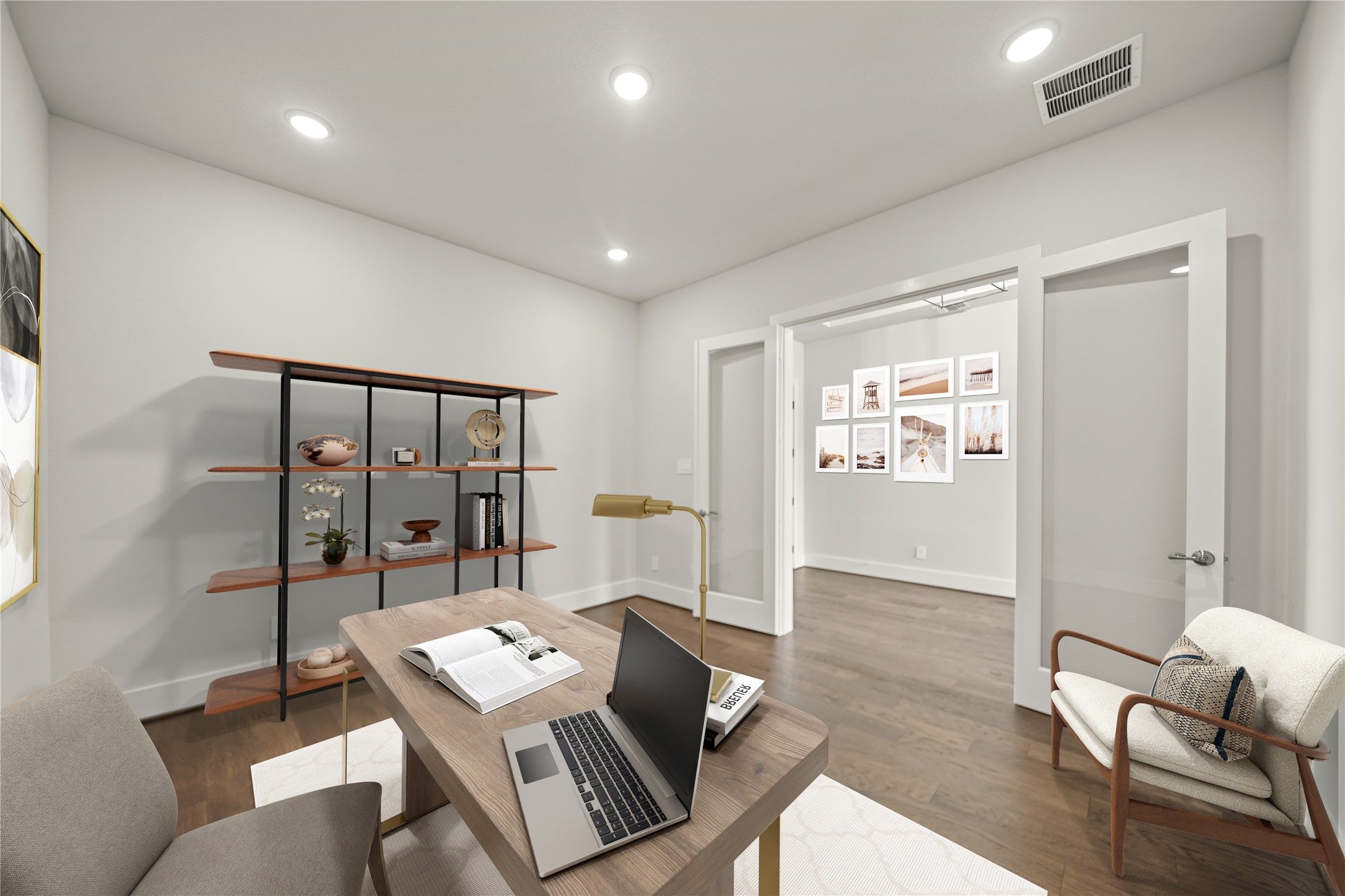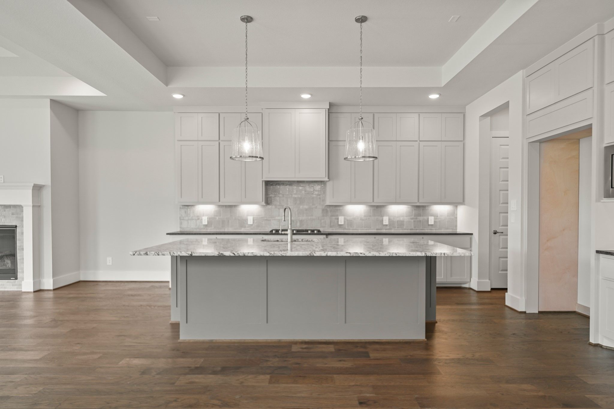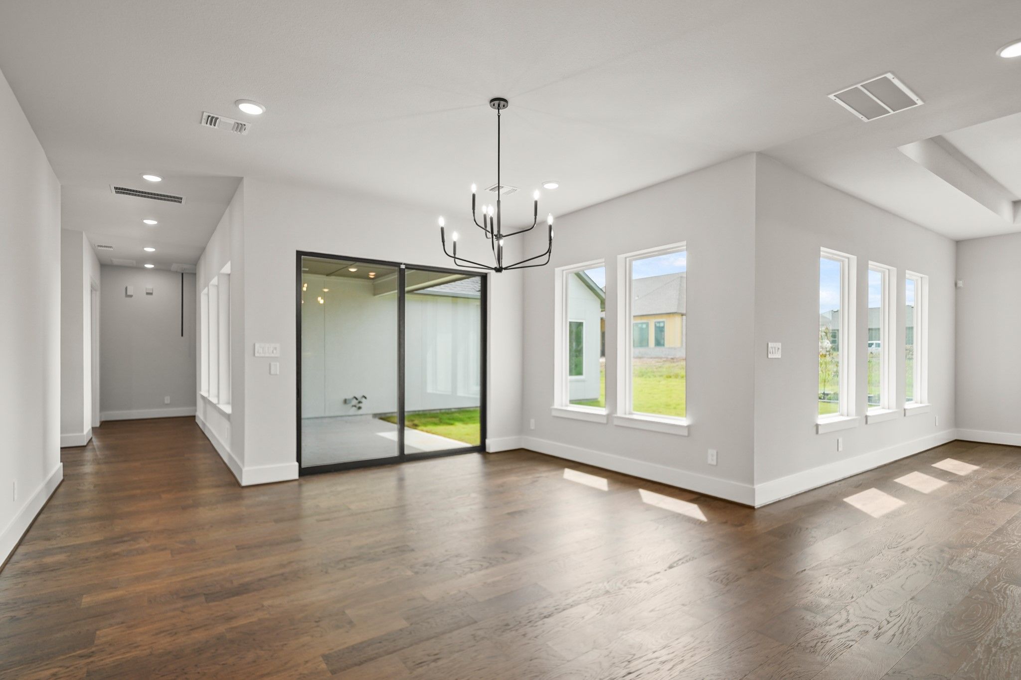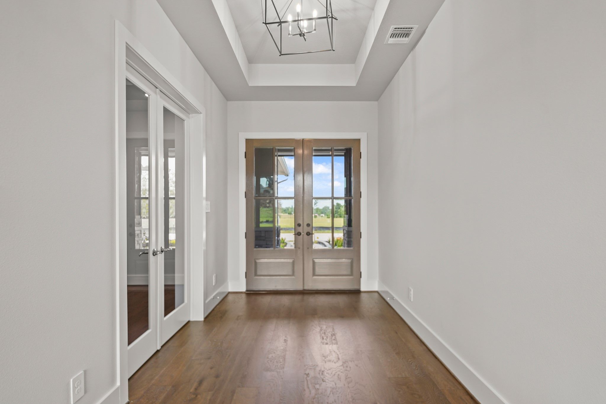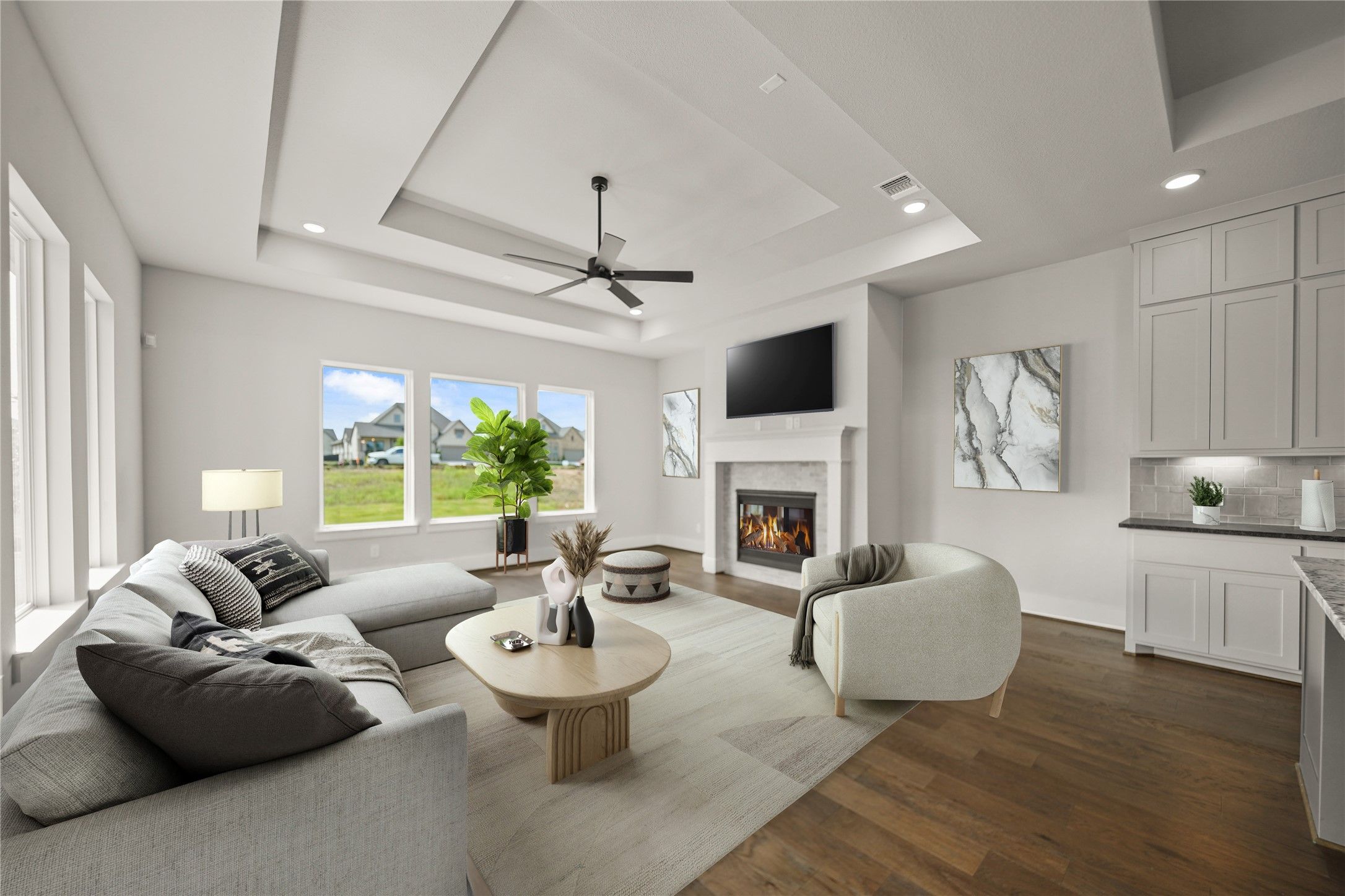 NEW MOVEIN READY HOME-PARTNERS IN BUILDING CUSTOM HOME ON 80' LOT! Tradition, luxury & serenity all in one! Dynamic soaring ceilings, open concept with brilliant natural light & beautiful wood floors throughout. At the entry is an elegant office space. The kitchen exudes sophistication, fully equipped with high-end appliances, cabinets, and countertops, as well as a center eat-on island. Sliding glass door to the outside patio, great for quiet morning coffee or family gatherings. Kitchen and dining area both open to the sunny family room with large windows, for a nice view of your own backyard/oasis. Primary suite features a huge walk-in closet, and luxurious ensuite bath, with dual vanities & separate shower. Two secondary bedrooms have their own ensuite baths. Another highlight of this wonderful home is the retreat area, a great place to steal away with your favorite book or get in some cardio. Golf cart space, and large extra garage storage for holiday decor or an extra workspace.